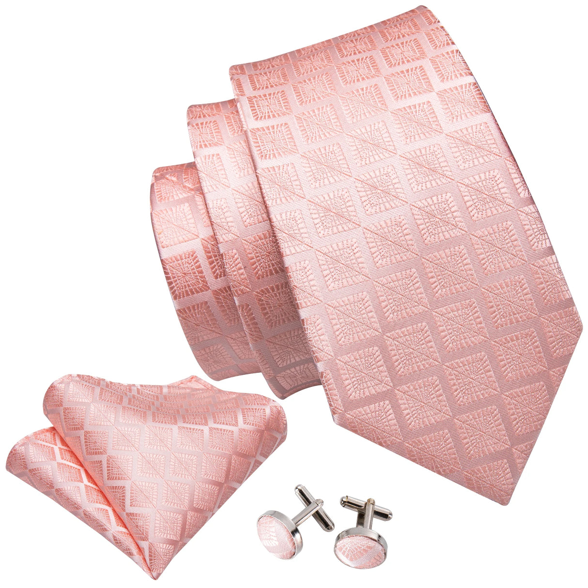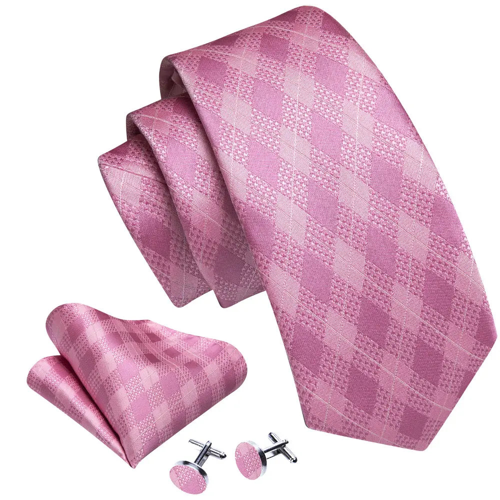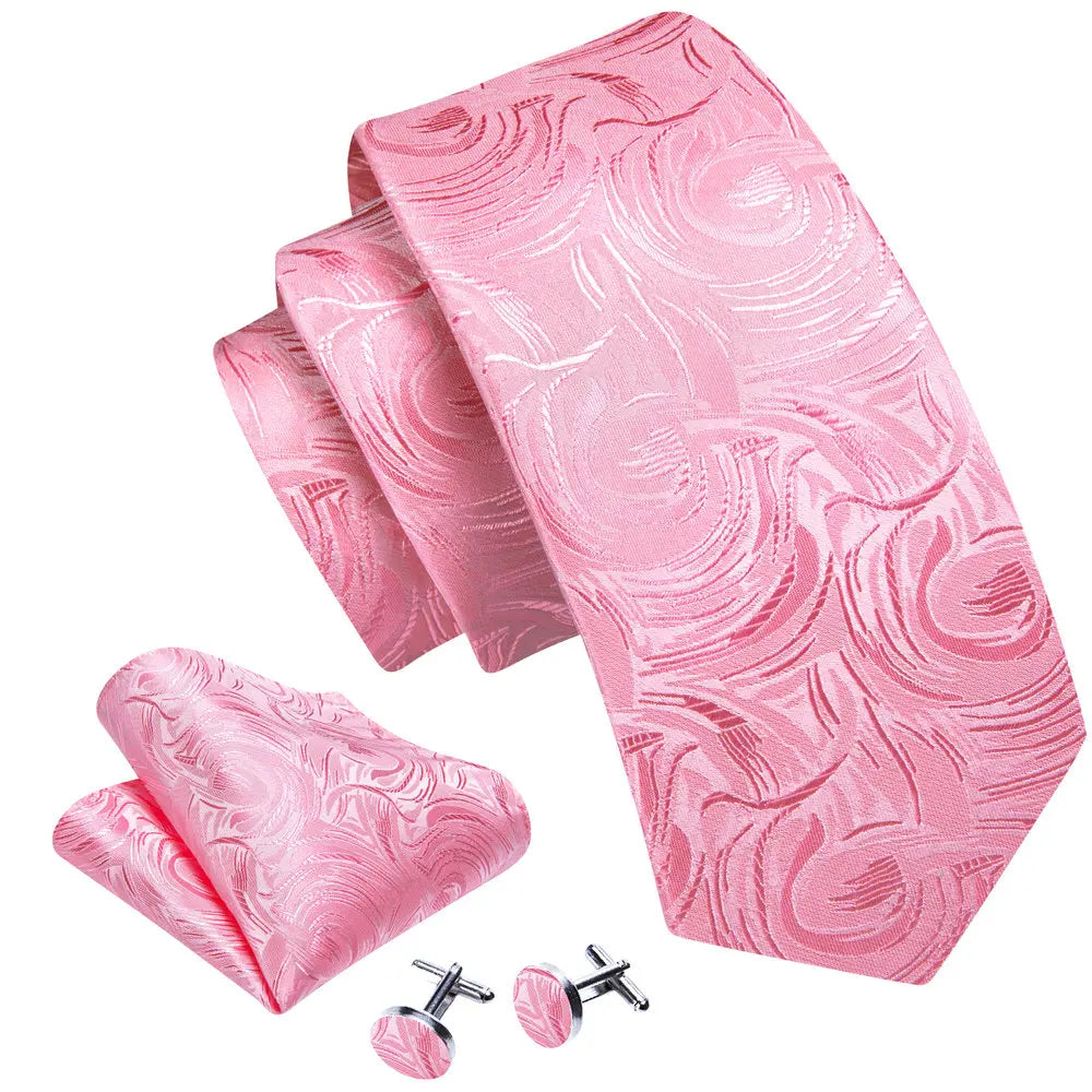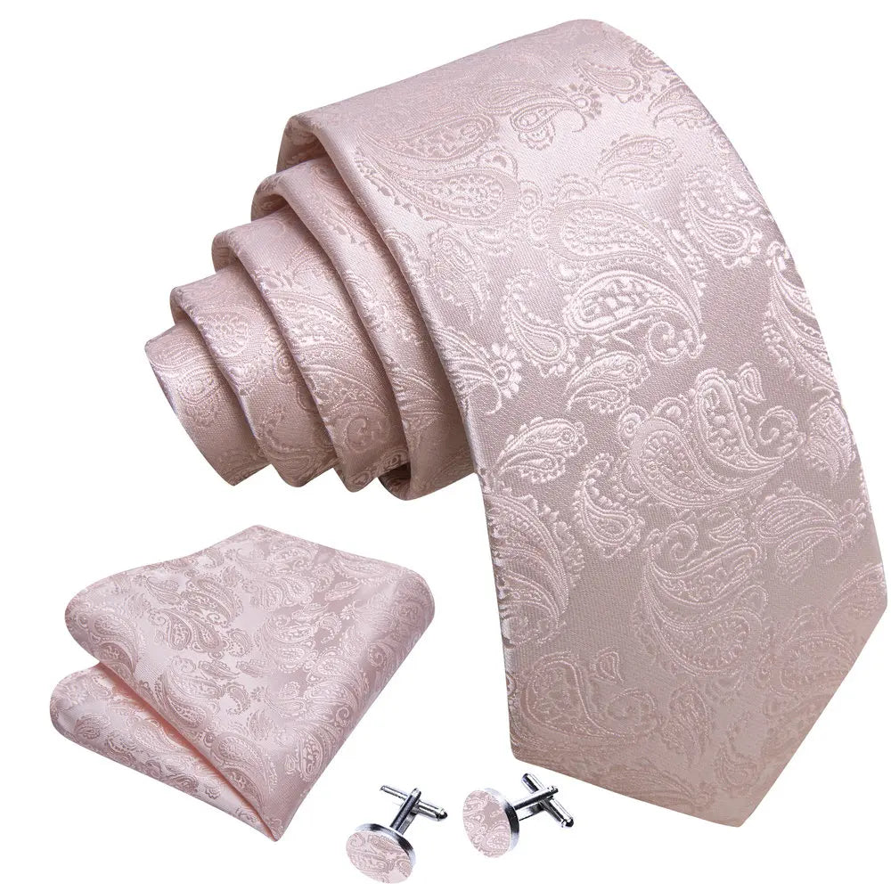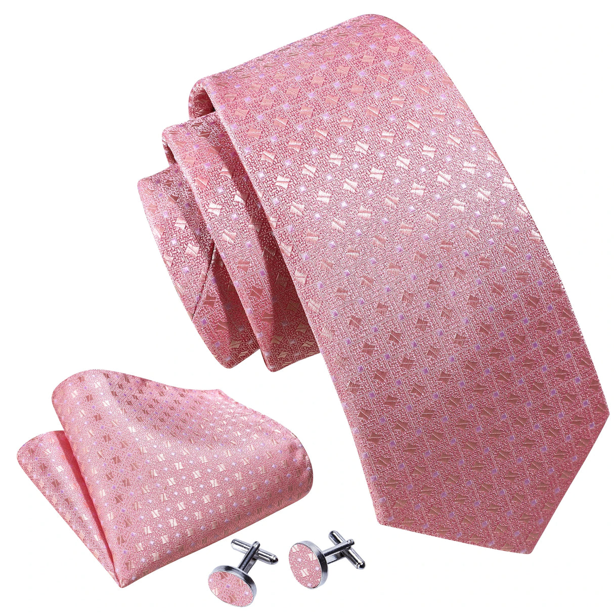 Elegant Pink Ties For Men Luxury Silk Stripe Pocket Square Cufflinks Set Fashion Male Necktie Groom Wedding Gift Barry.Wang 5090