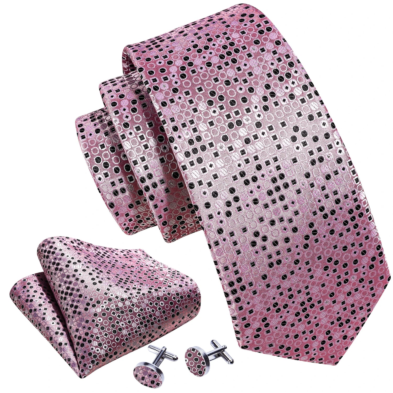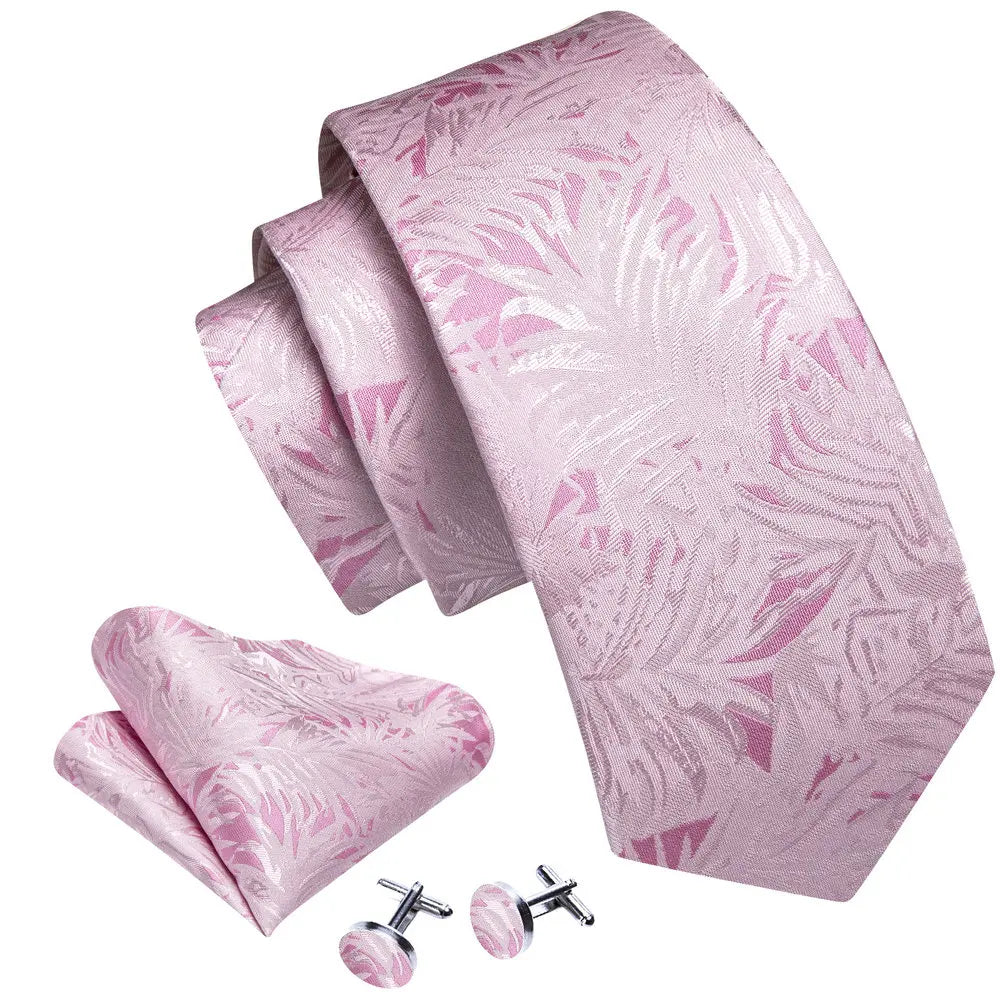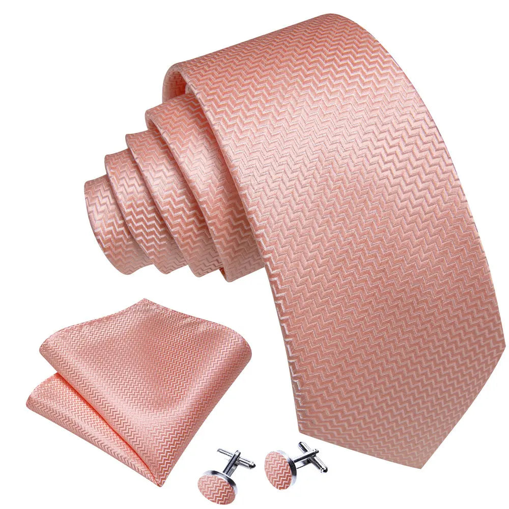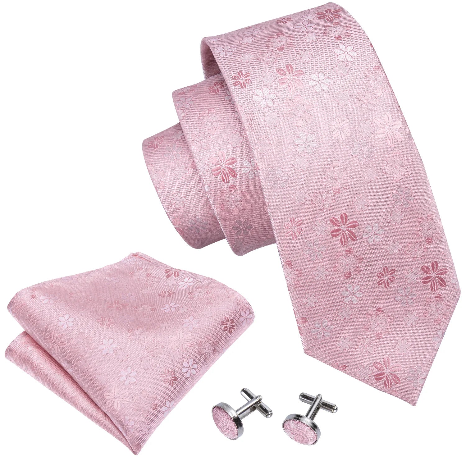 Elegant Pink Ties For Men Luxury Silk Stripe Pocket Square Cufflinks Set Fashion Male Necktie Groom Wedding Gift Barry.Wang 5090
