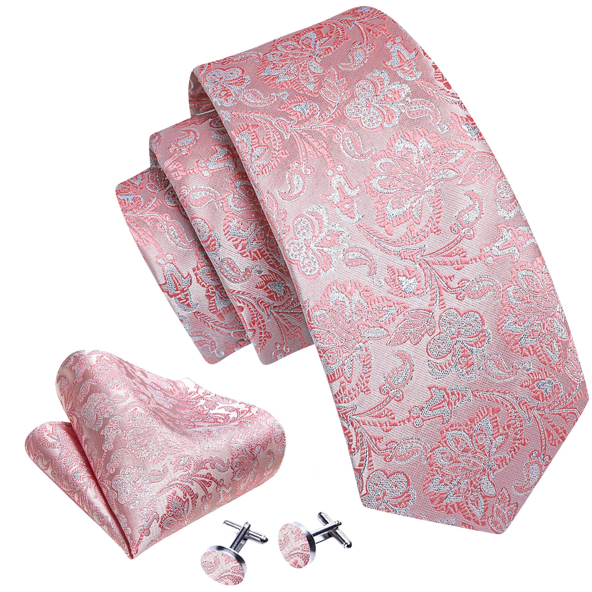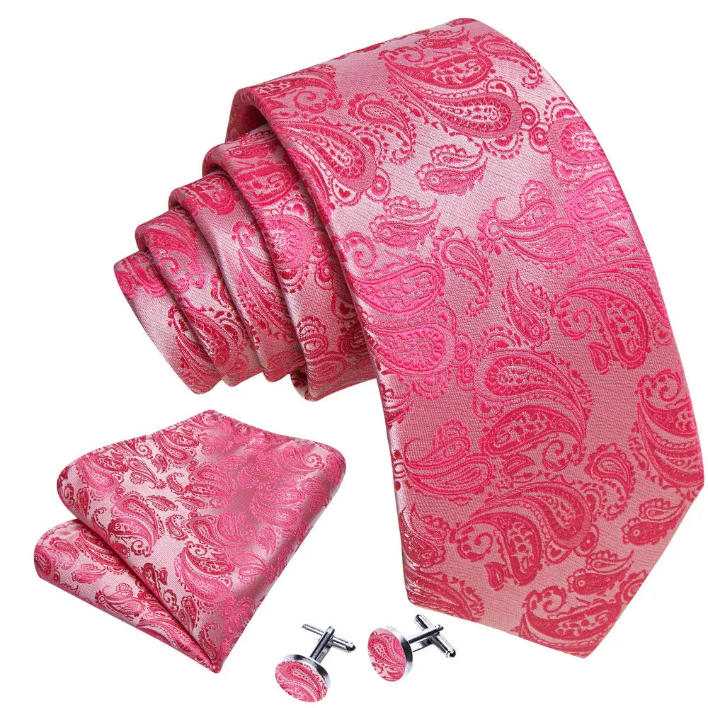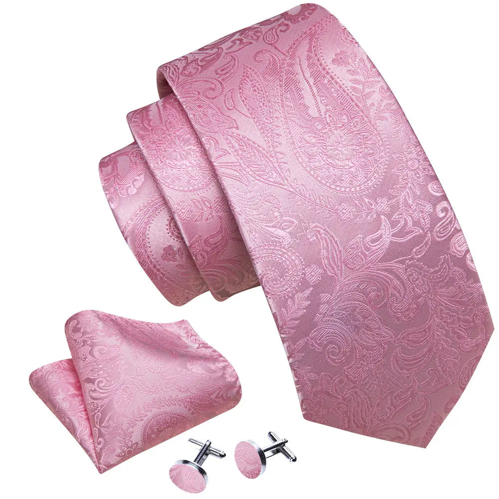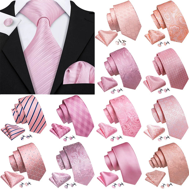 Elegant Pink Ties For Men Luxury Silk Stripe Pocket Square Cufflinks Set Fashion Male Necktie Groom Wedding Gift Barry.Wang 5090 - 5256 is backordered and will ship as soon as it is back in stock.