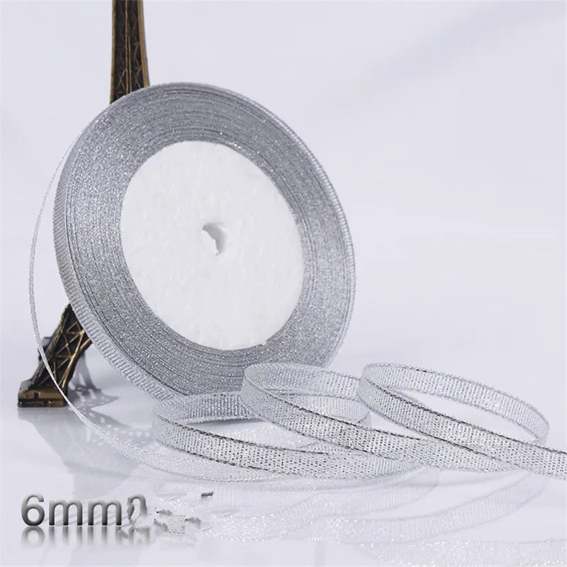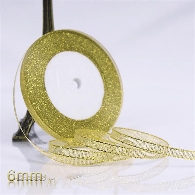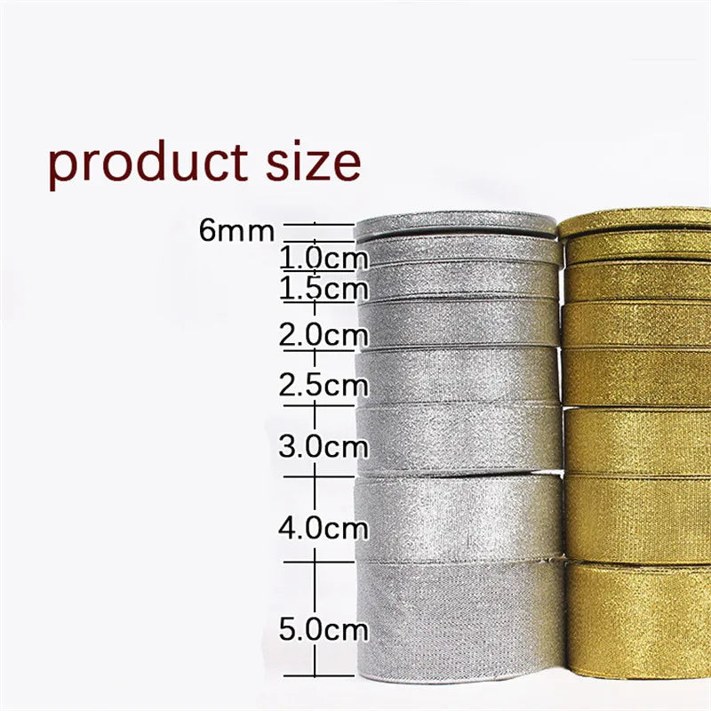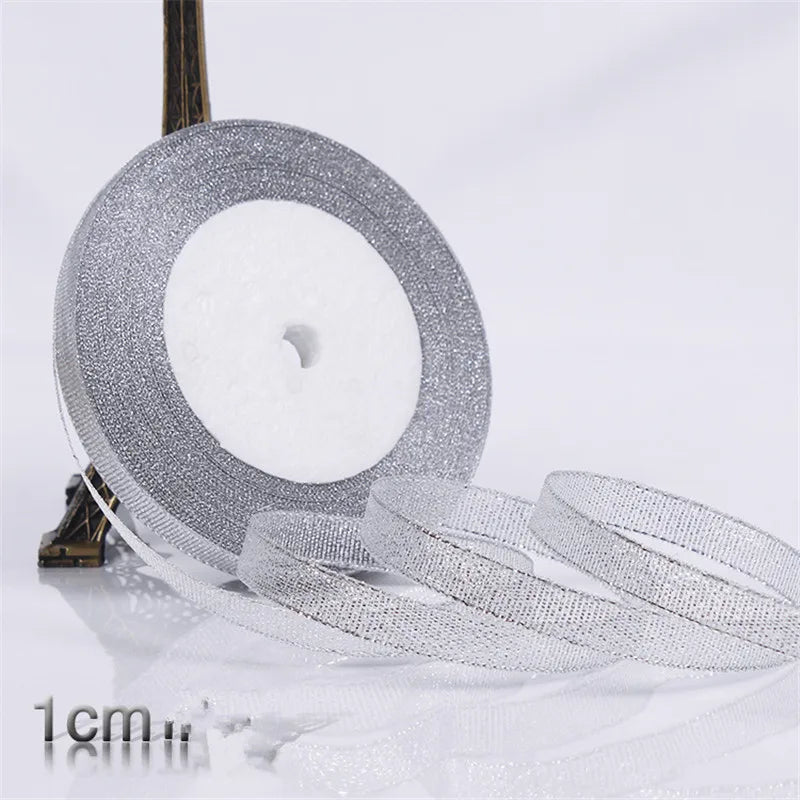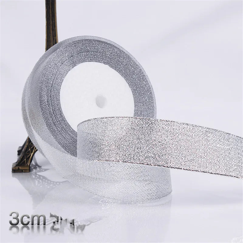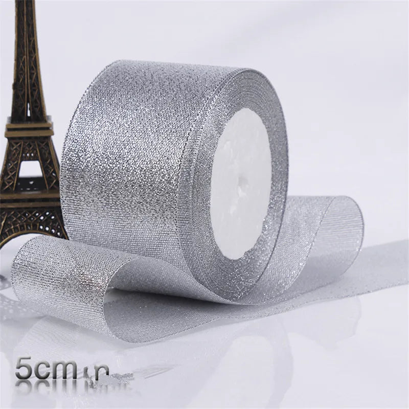 Gold/Silver Silk Satin Organza Ribbon 0.6-5CM Glitter Embroidered Onions Ribbons for Wedding Cake Gift Decoration Craft Supplies