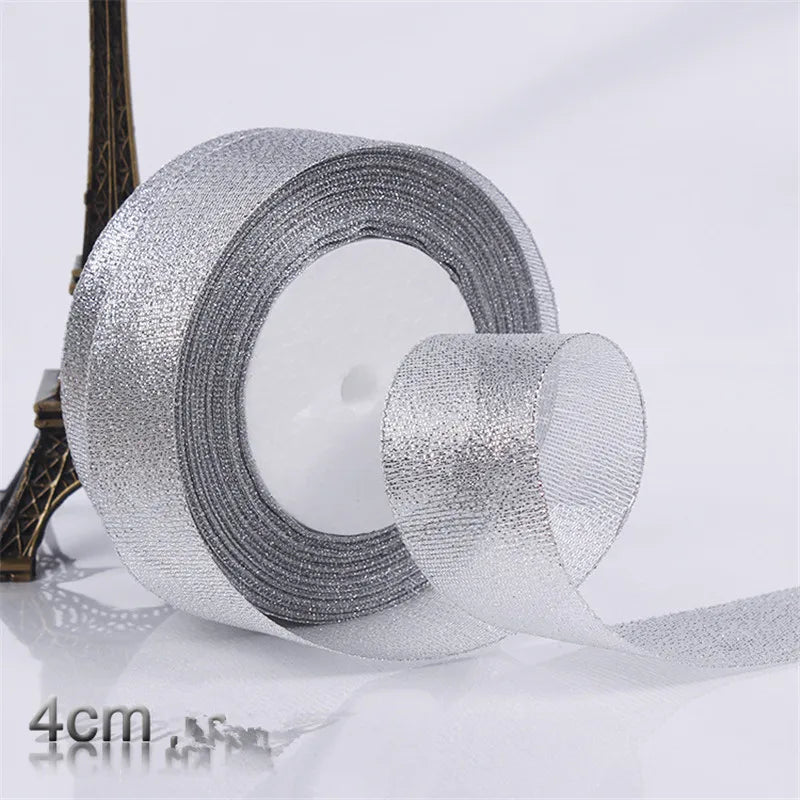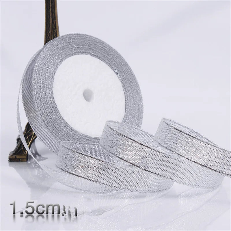 Gold/Silver Silk Satin Organza Ribbon 0.6-5CM Glitter Embroidered Onions Ribbons for Wedding Cake Gift Decoration Craft Supplies - 1.5CM Silver is backordered and will ship as soon as it is back in stock.