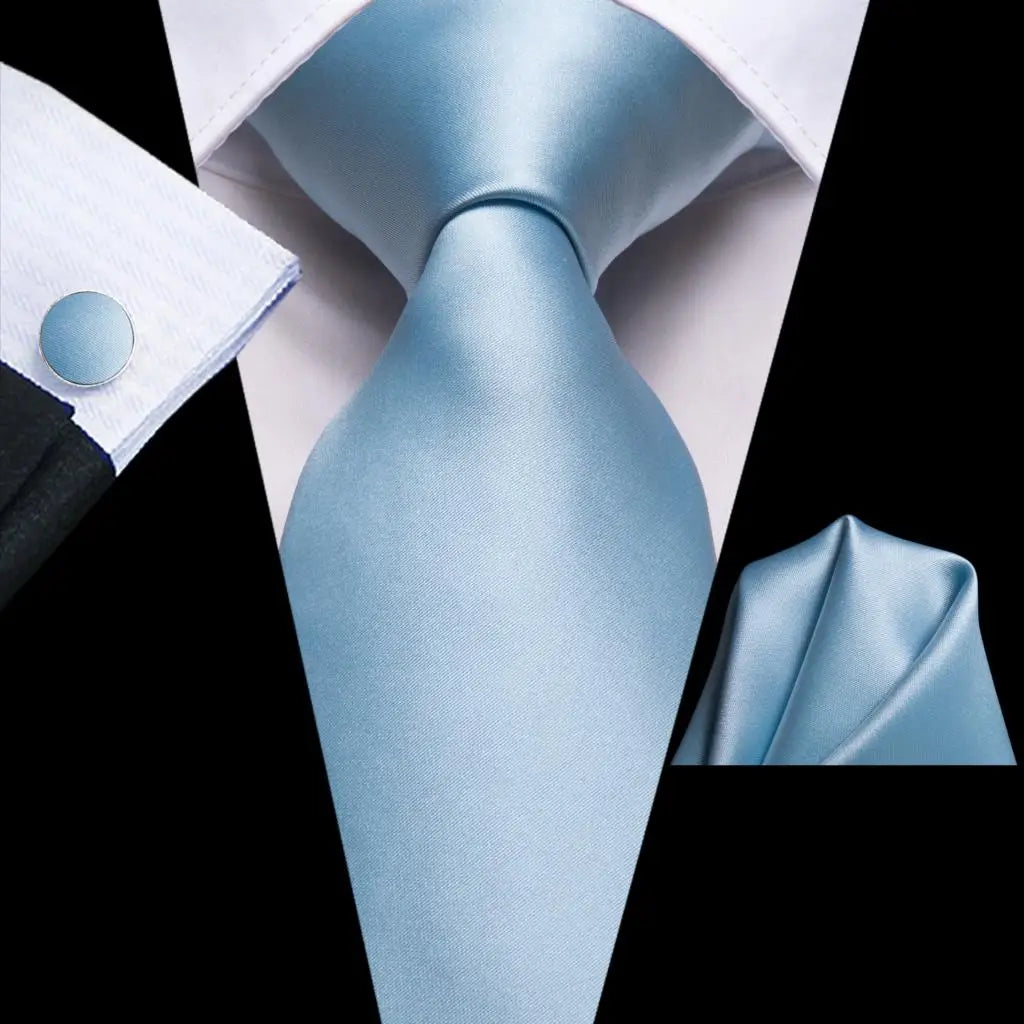 Hi-Tie Light Blue Solid Silk Wedding Tie For Men Fashion Design Handky Cufflink Mens Elegant Necktie Business Party Dropshipping