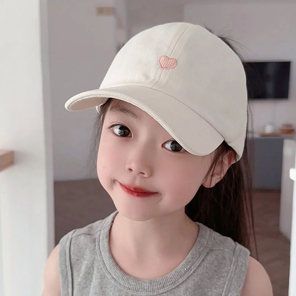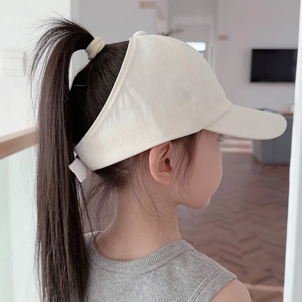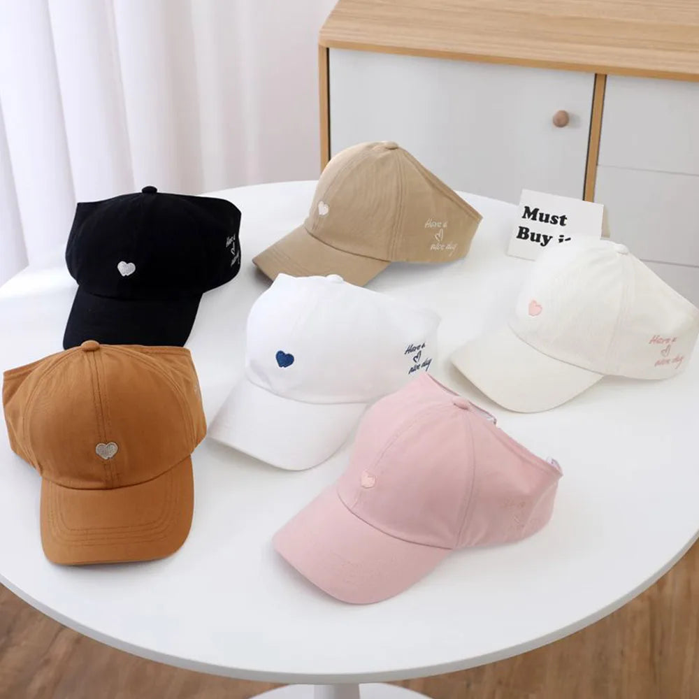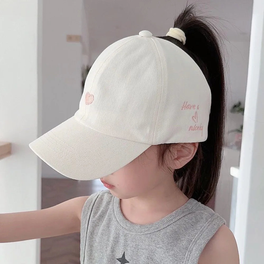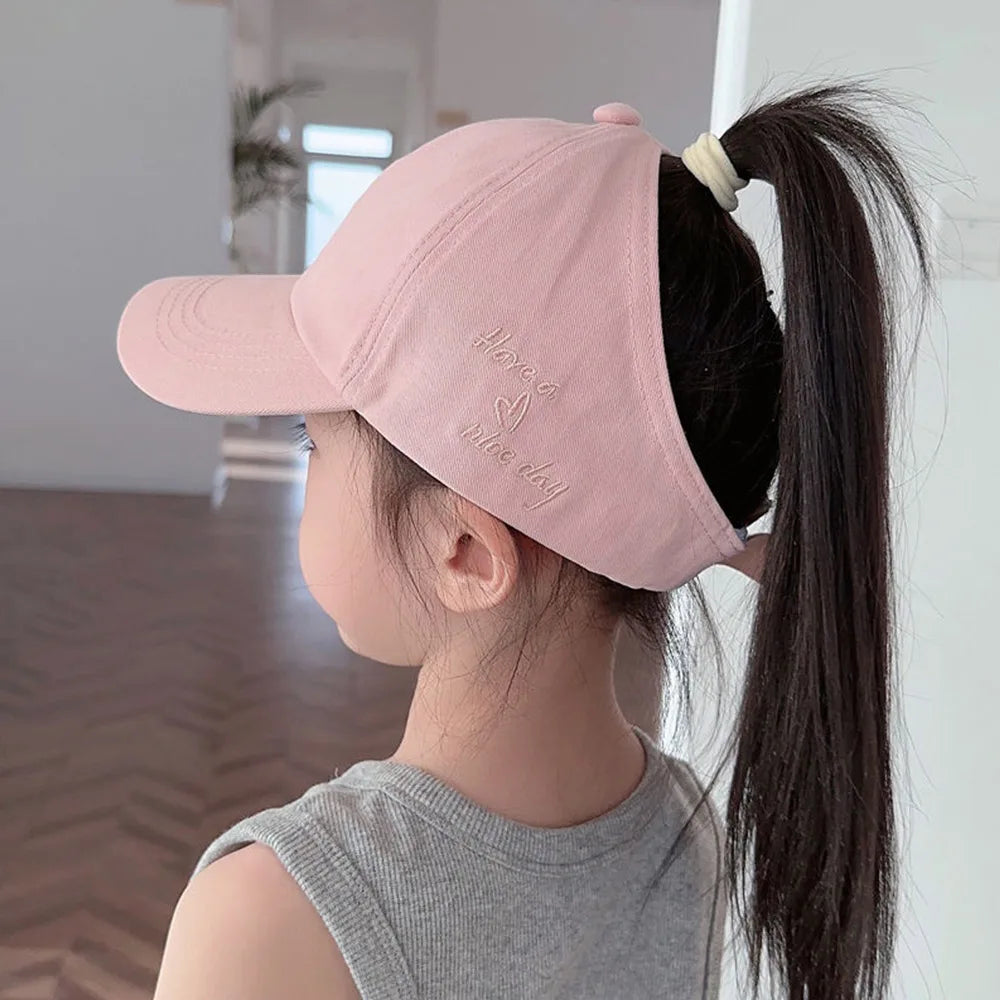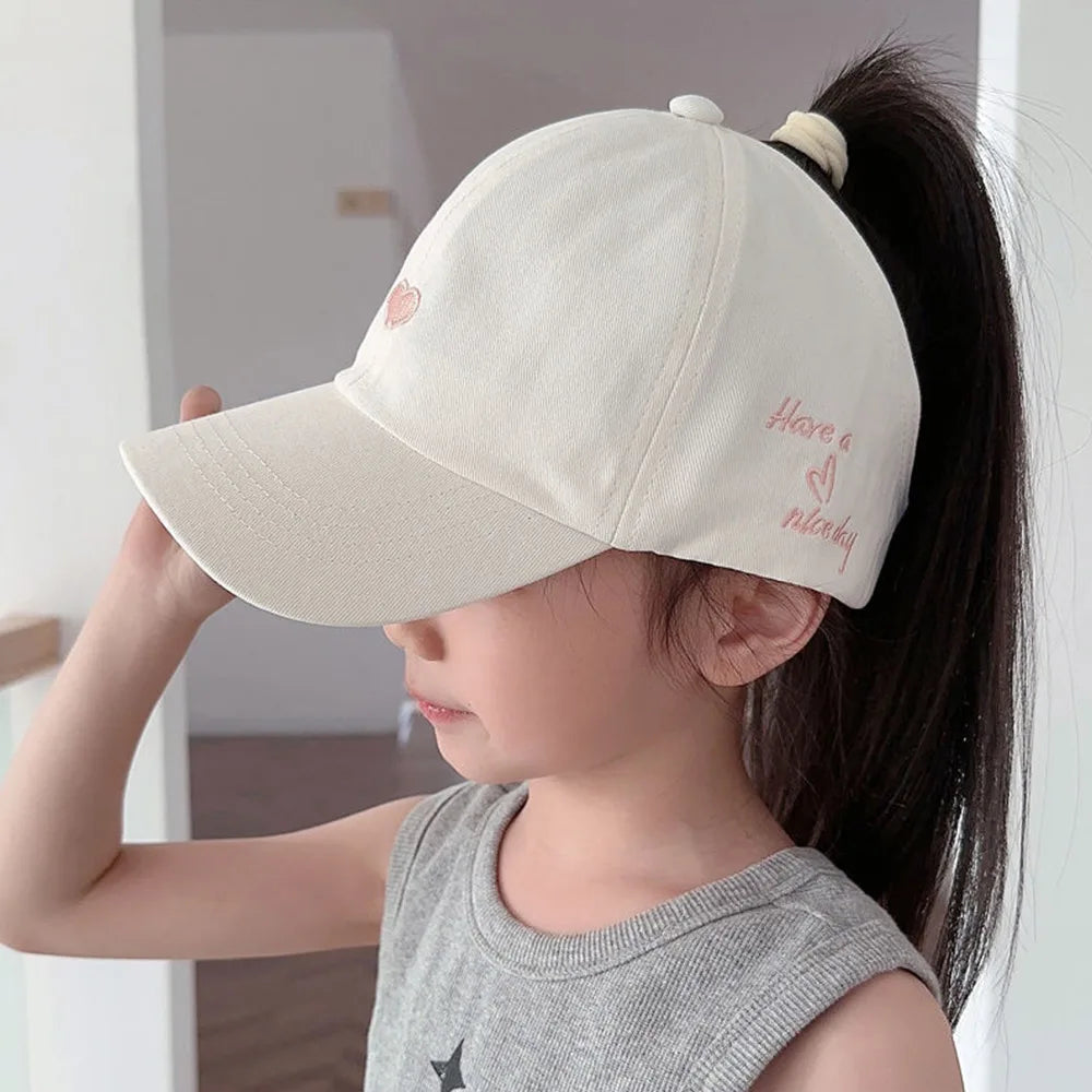 Love Heart Kids Baseball Caps Adjustable Large Brim Sun Hat Solid Color Hollow High Ponytail Caps for Boys Girls