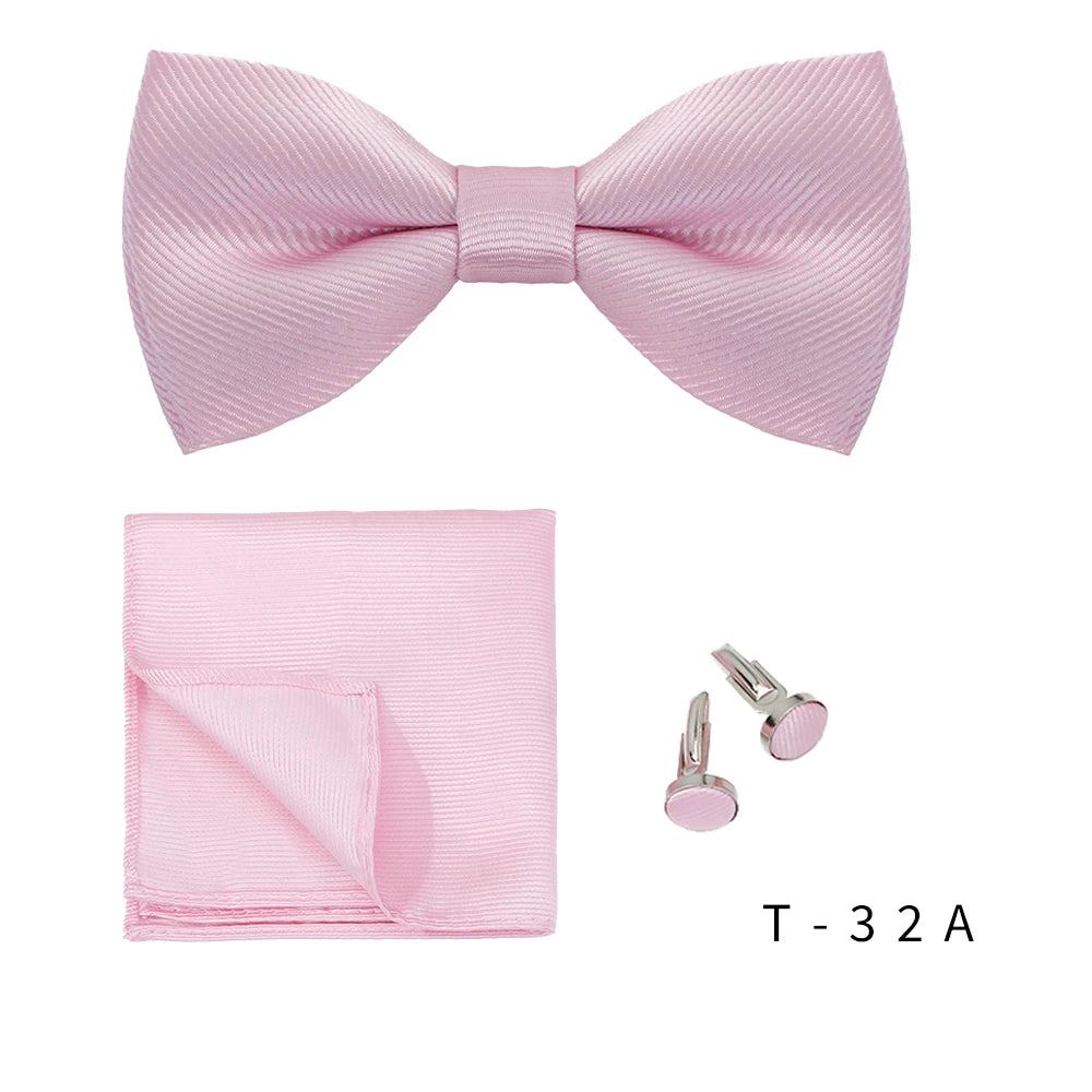 Men Ties Set Solid Color Bowtie Cravat Cufflinks Handkerchief Fashion Butterfly Party Wedding Bow Ties For Men Shirt Accessories