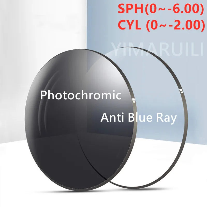 Men's And Women's Finished Myopia Glasses TR90 Frames And Aspherical Anti Blue Ray Photochromic Lenses SPH 0~-6.00 CYL 0~-2.00