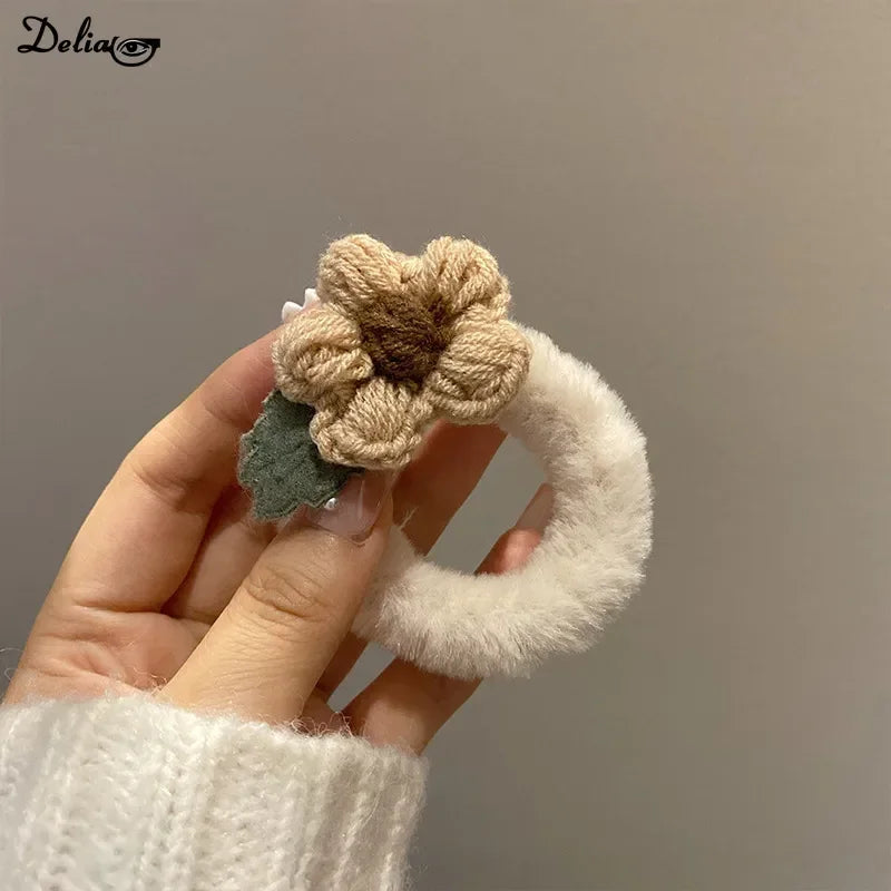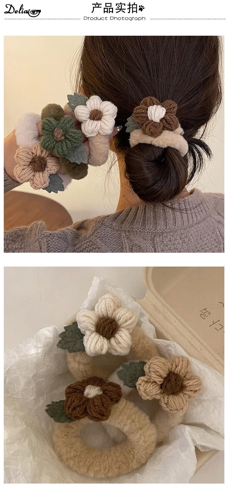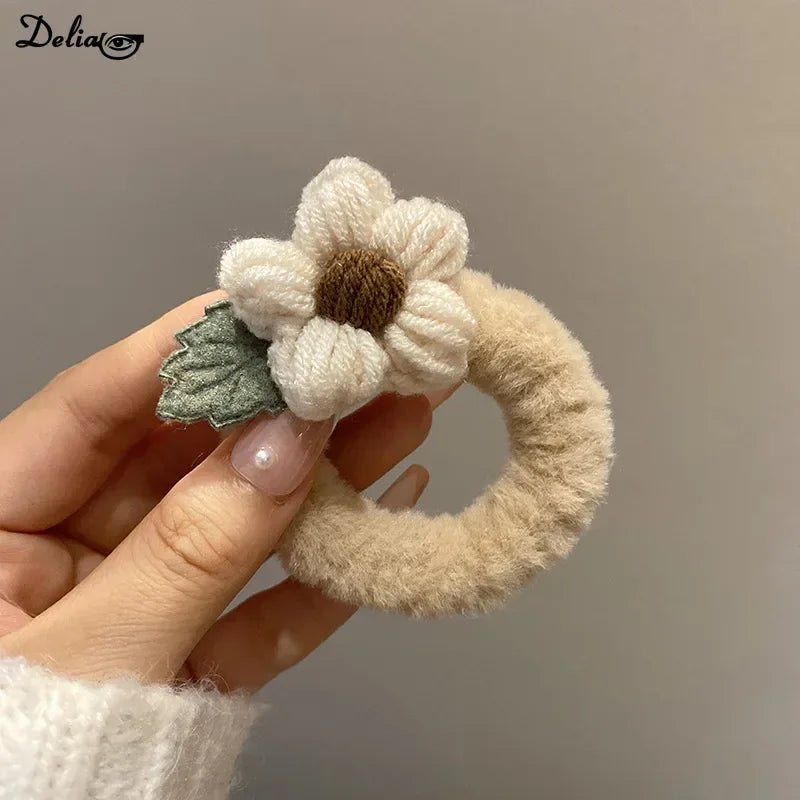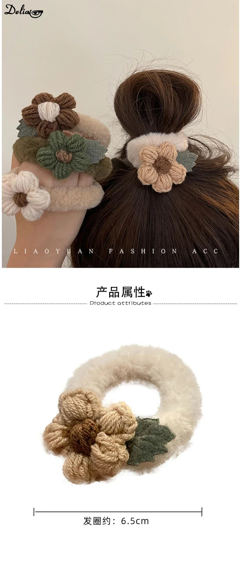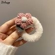 Newest Korean Woman Cute Plush Flower Hairband Elastics Hair Band Scrunchies Hair Ties Ladies Ponytail Hold Hair Accessories