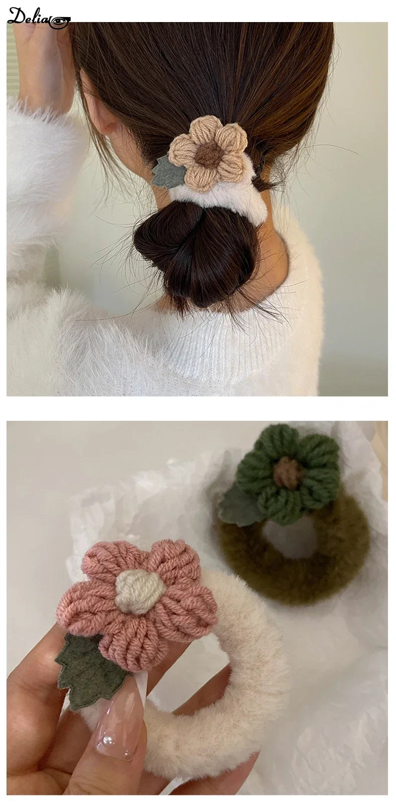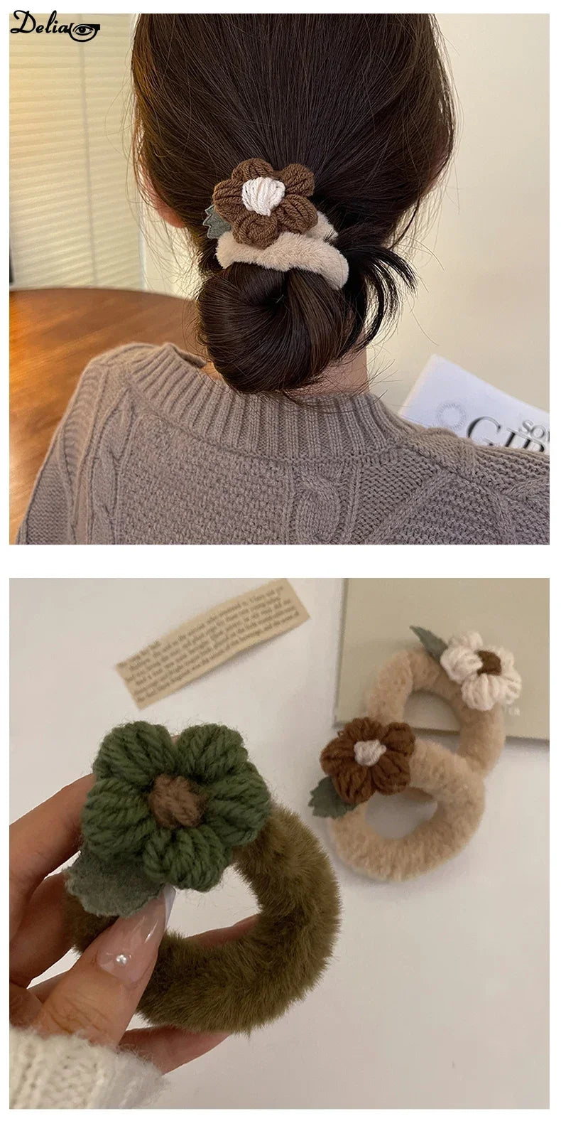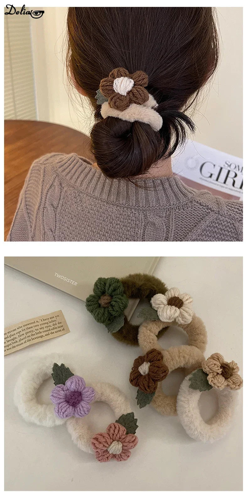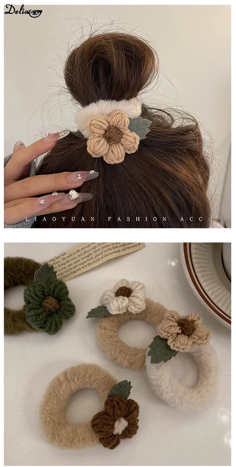 Newest Korean Woman Cute Plush Flower Hairband Elastics Hair Band Scrunchies Hair Ties Ladies Ponytail Hold Hair Accessories