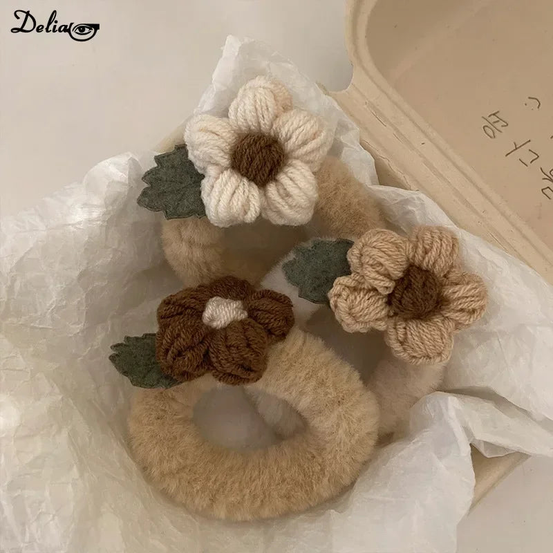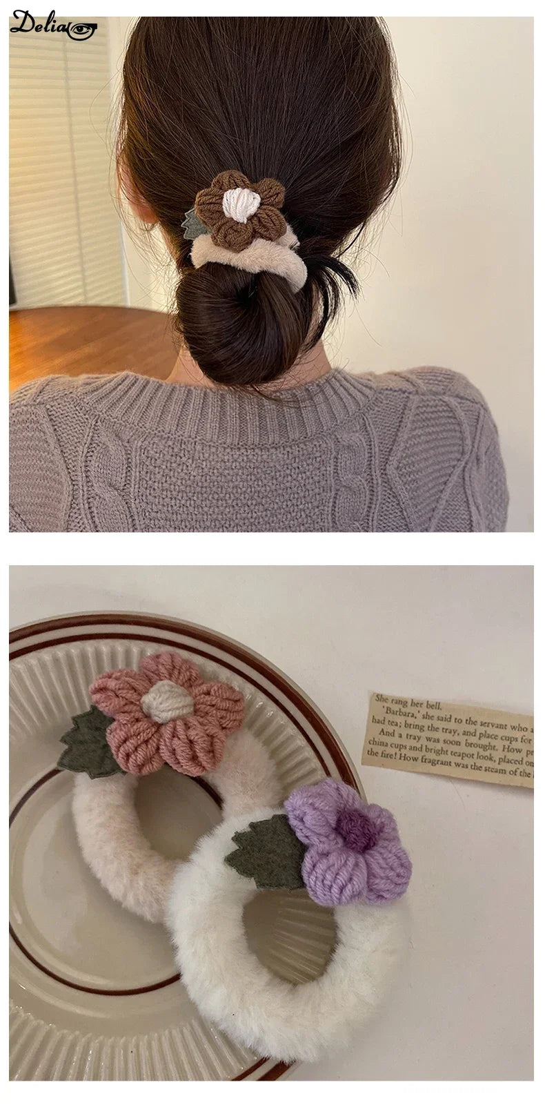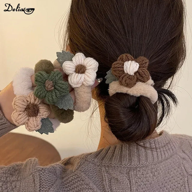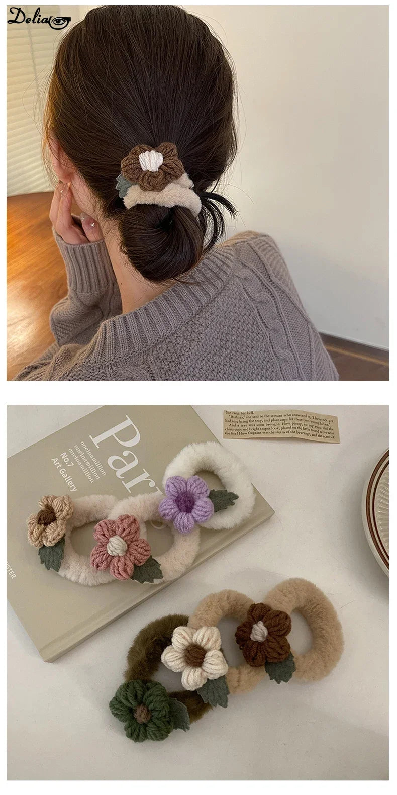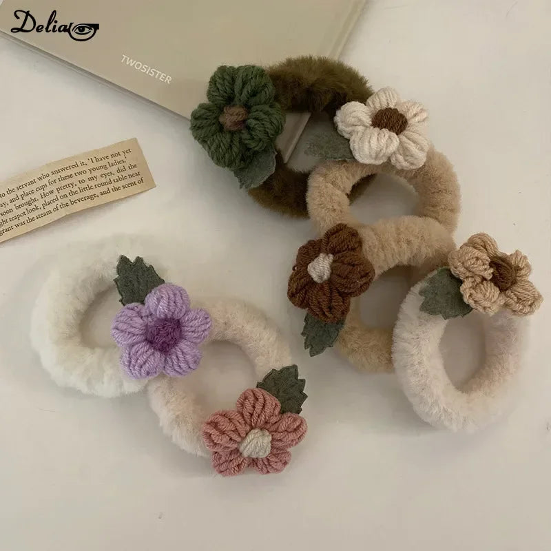 Newest Korean Woman Cute Plush Flower Hairband Elastics Hair Band Scrunchies Hair Ties Ladies Ponytail Hold Hair Accessories