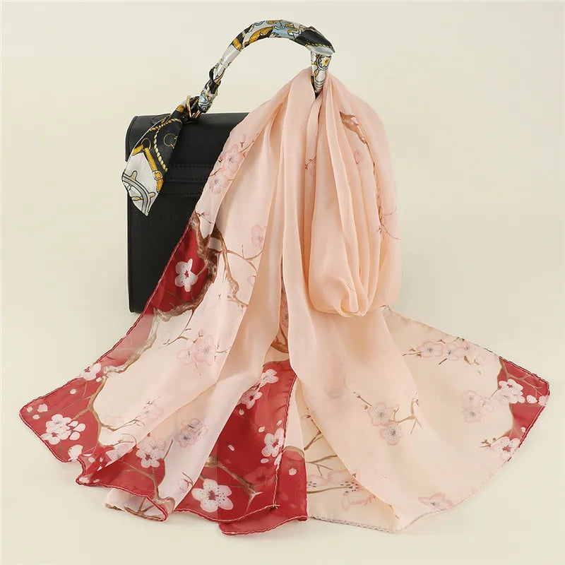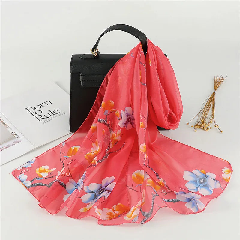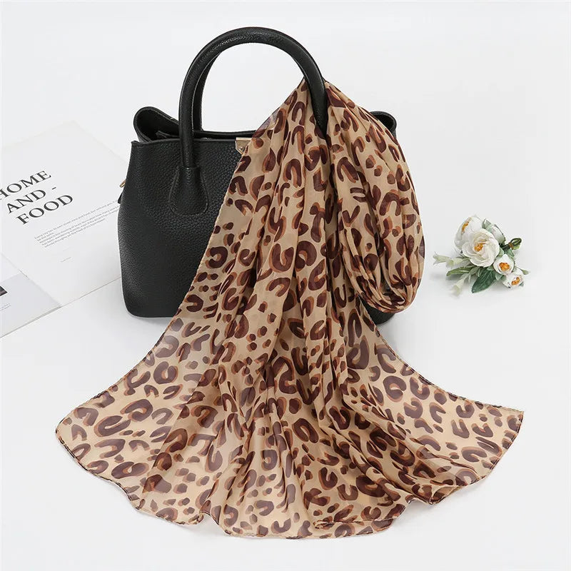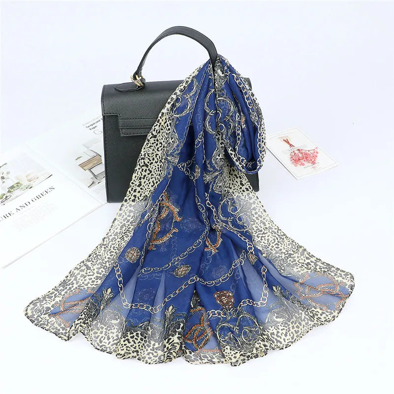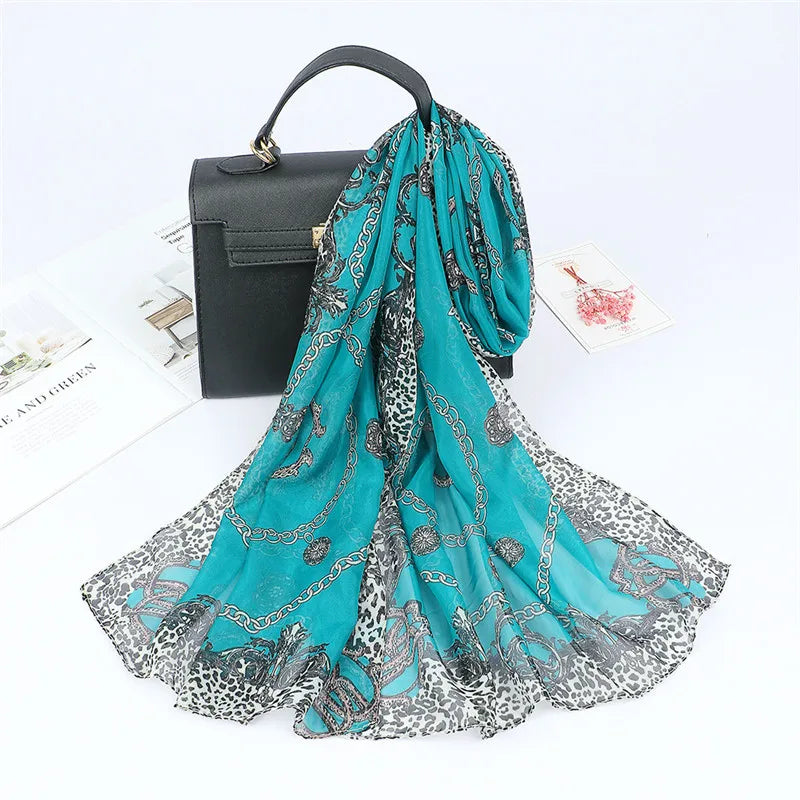 Spain Fashion Sexy Leopard Floral Patchwork Chiffon Silk Scarf Shawl Lady High Quality Wrap Beach Cover-ups Hijab Snood 150*50Cm