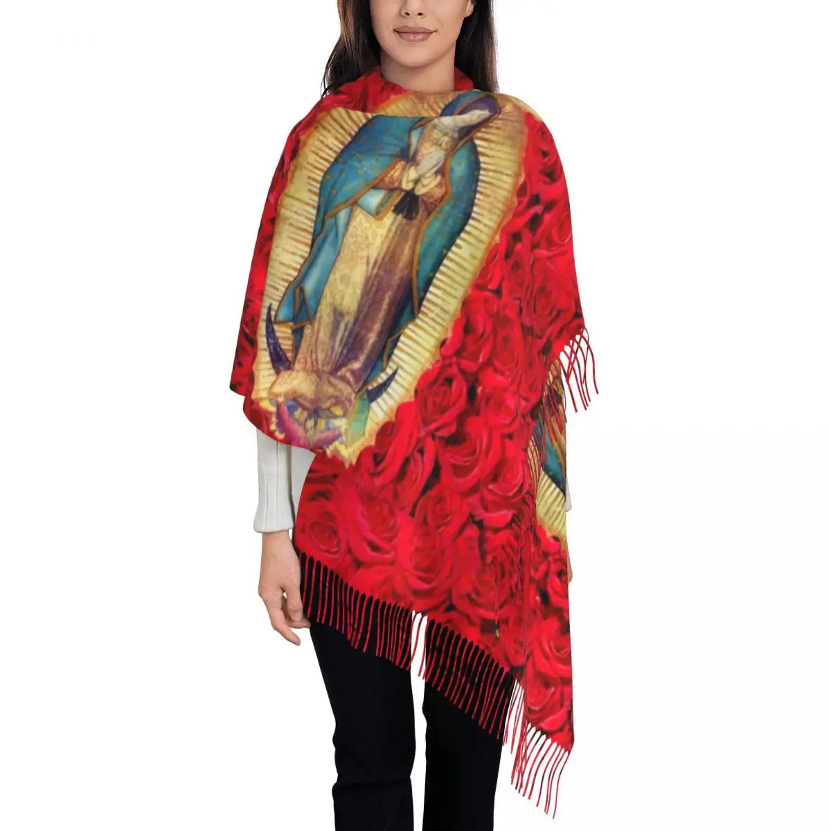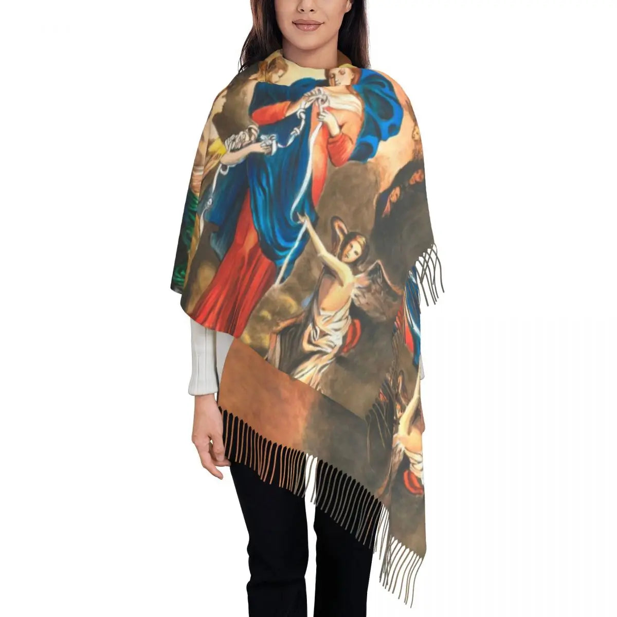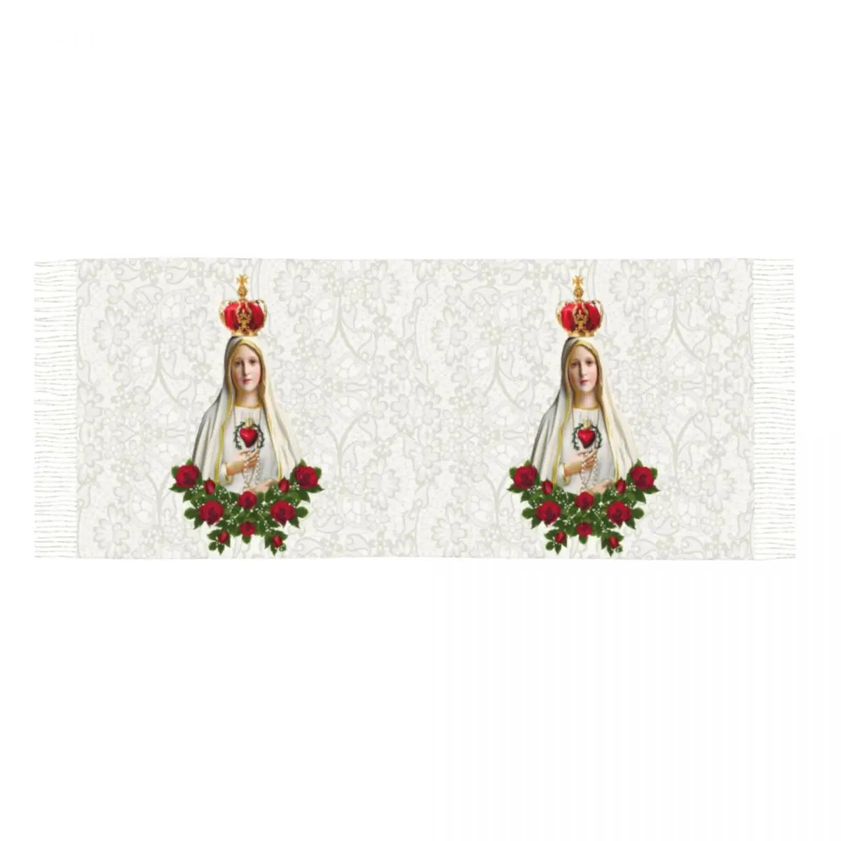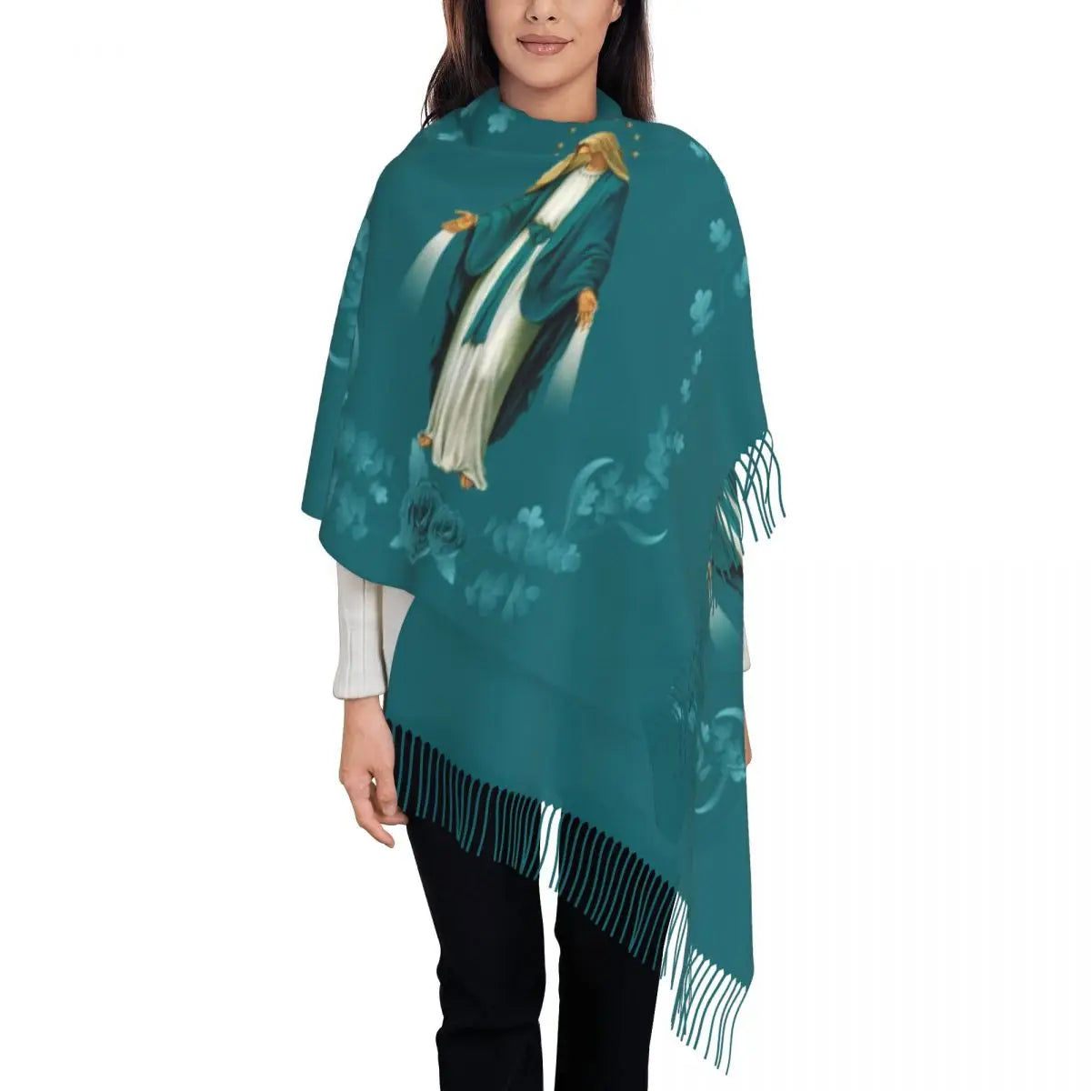 Stylish Our Lady Of Fatima Virgin Mary Tassel Scarf Women Winter Warm Shawl Wrap Ladies Portugal Rosary Catholic Scarves