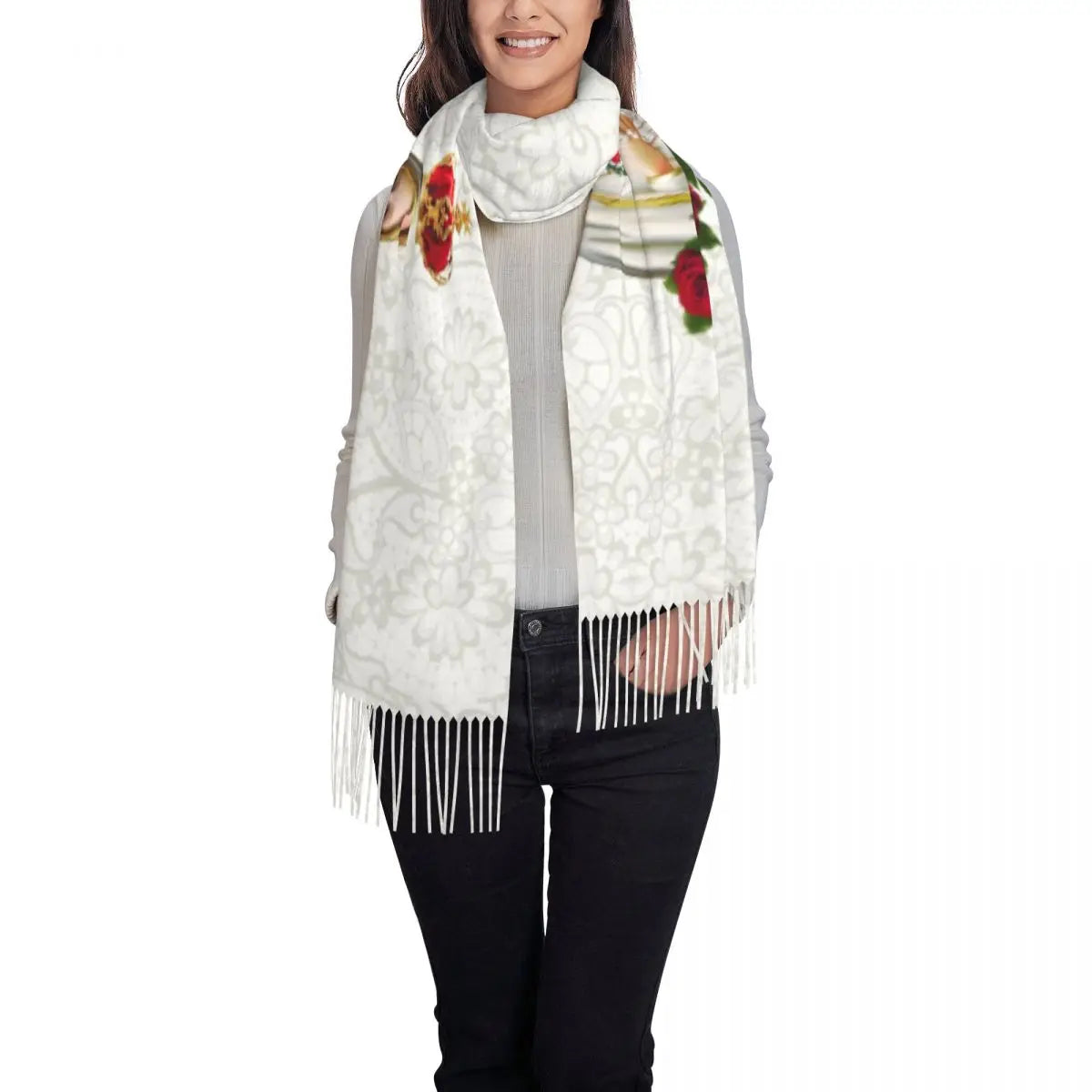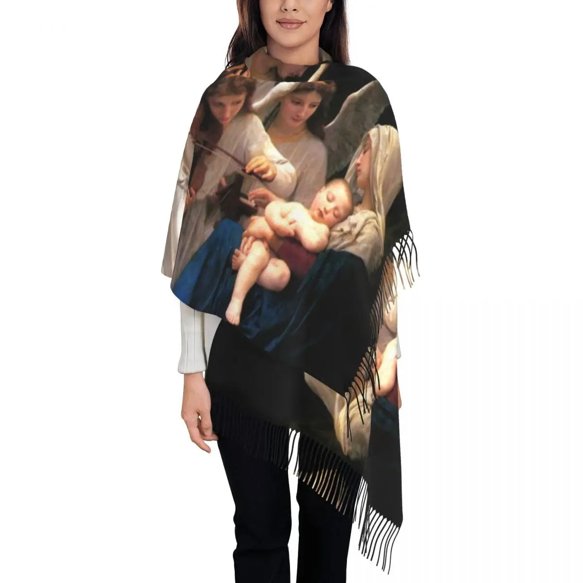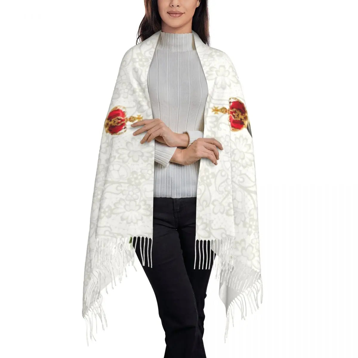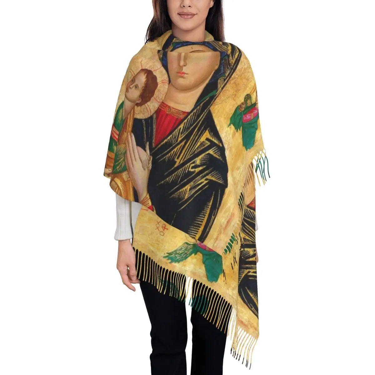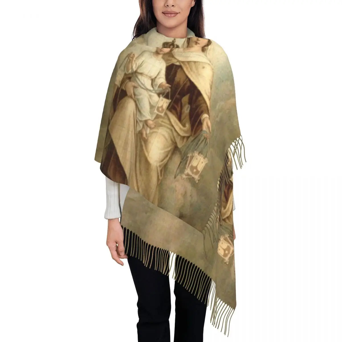 Stylish Our Lady Of Fatima Virgin Mary Tassel Scarf Women Winter Warm Shawl Wrap Ladies Portugal Rosary Catholic Scarves