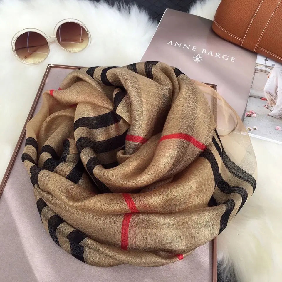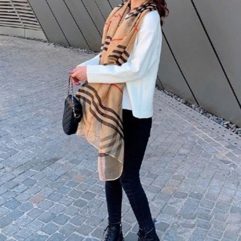 Wholesale of high-end scarves made of genuine silk and wool blended with new checkered scarves for women in autumn and winter, K