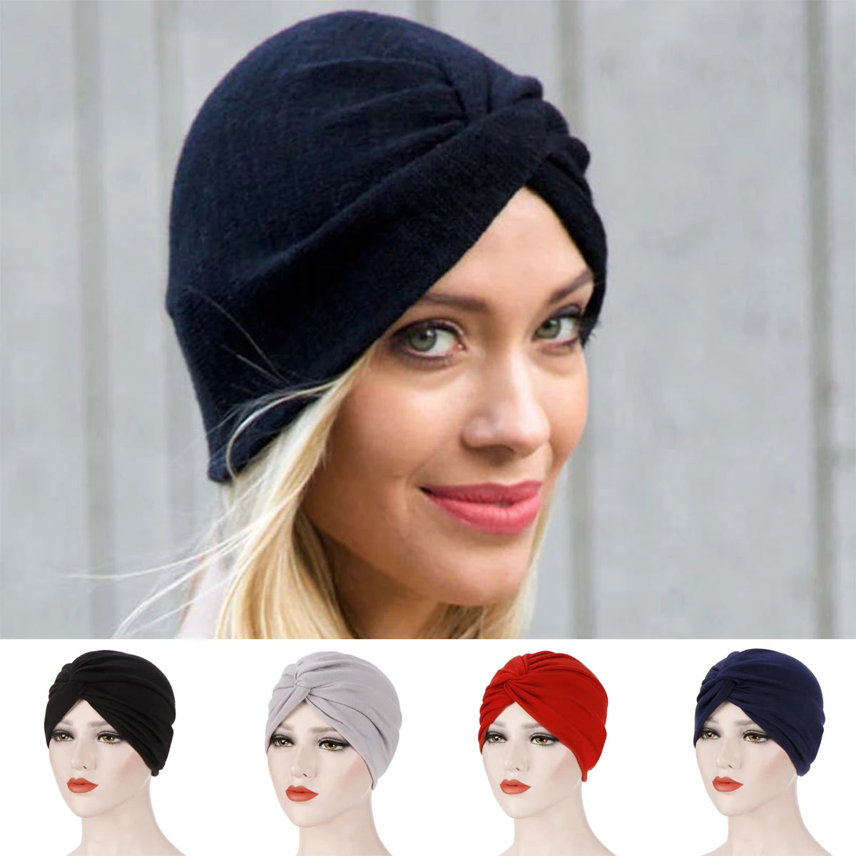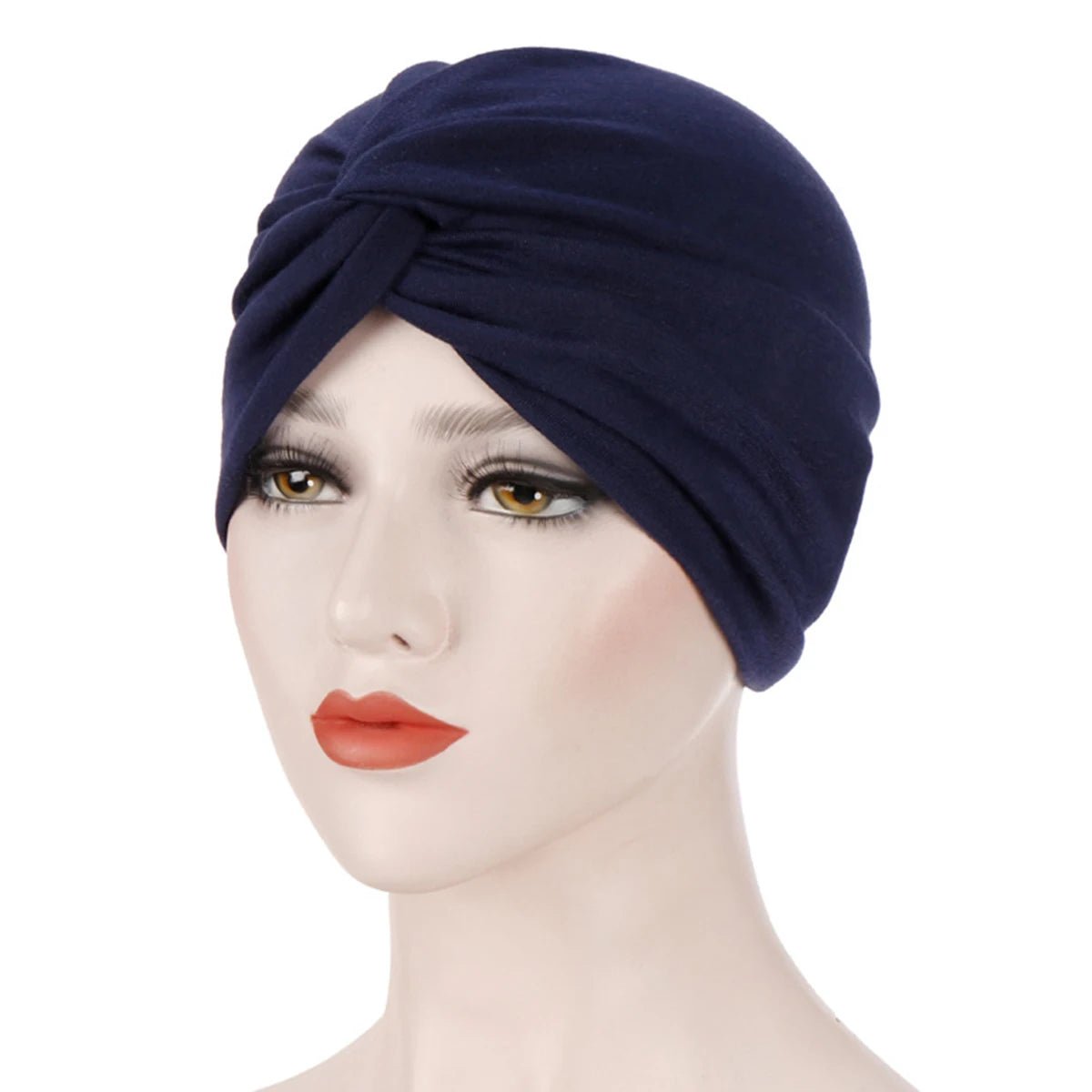 Women's Solid Colour Poplin Forehead Cross Candy Colour Bottomed Hindu Hat Hijab Hat Muslim Hair Loss Scarf Hijab Hat