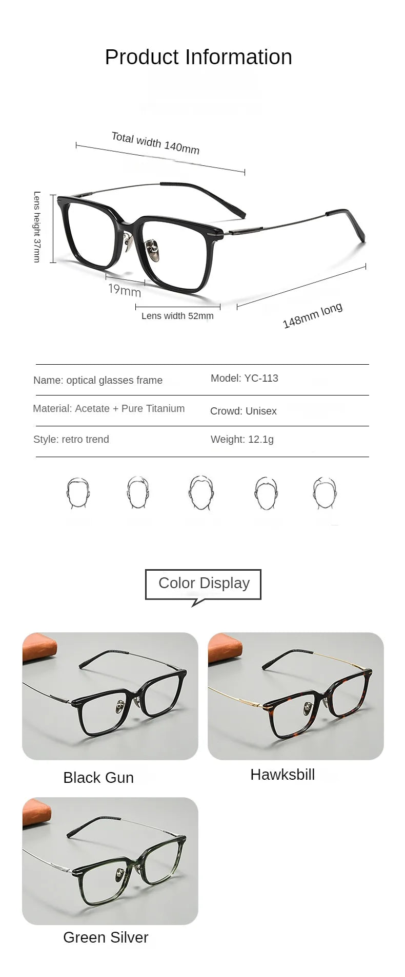 High Quality Luxury Glasses Ultra Light Pure Titanium Men's Eyeglass Frames High-Quality Acetate Prescription Eyeglass Frames