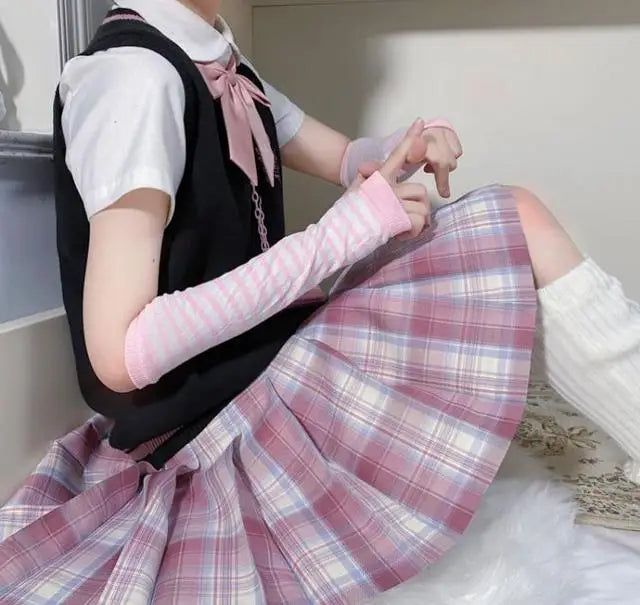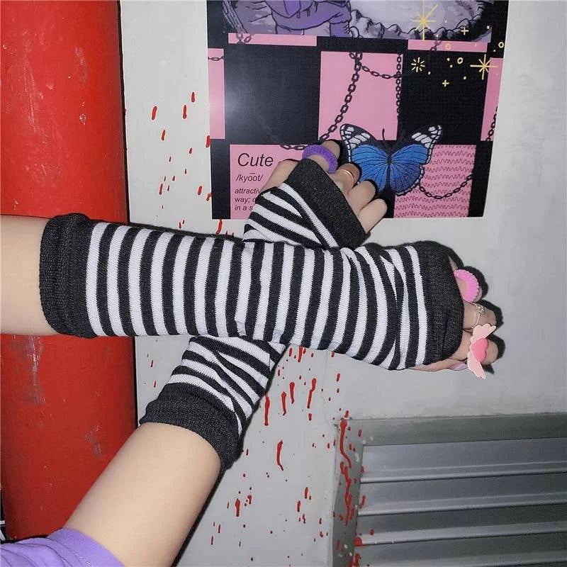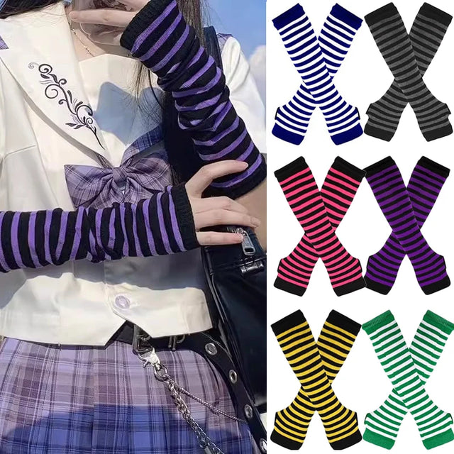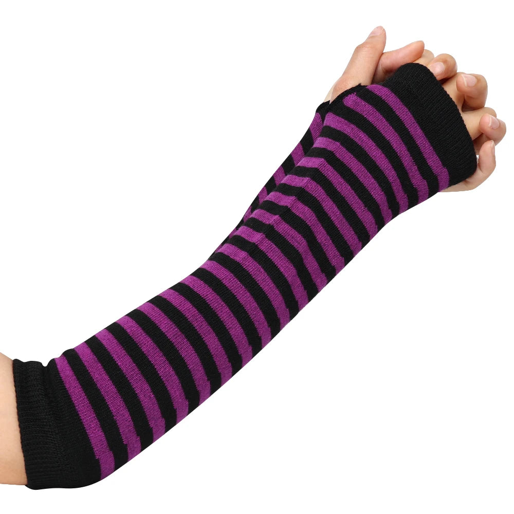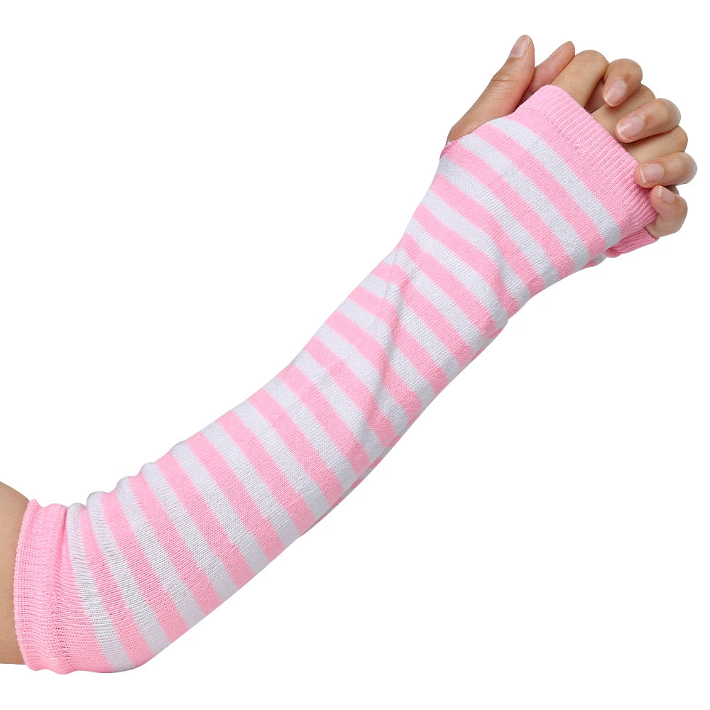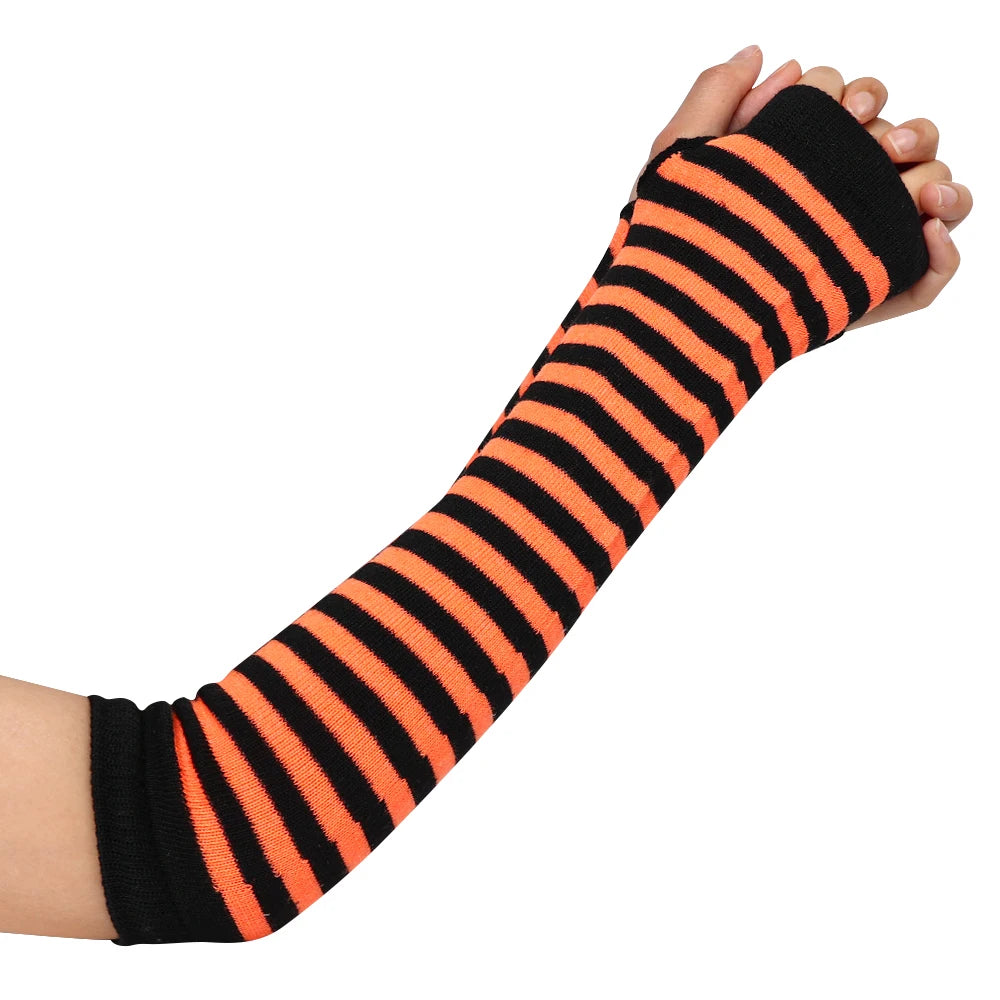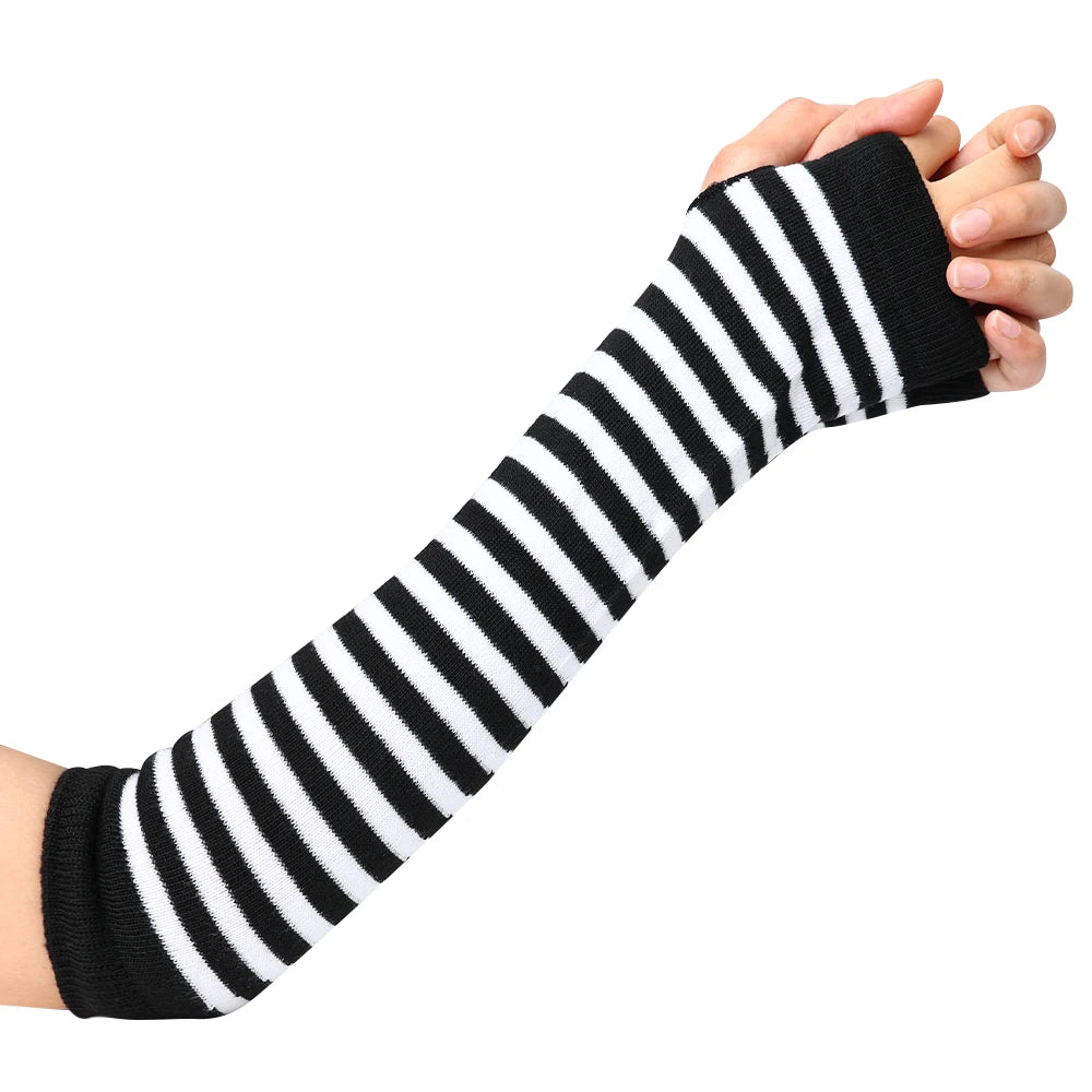Anime Women Girls Hand Arm Warmer Fingerless Gothic Long Glove Wristband Arm Cover Long Sleeve Soft Striped Elbow Knitted Gloves