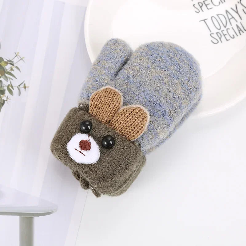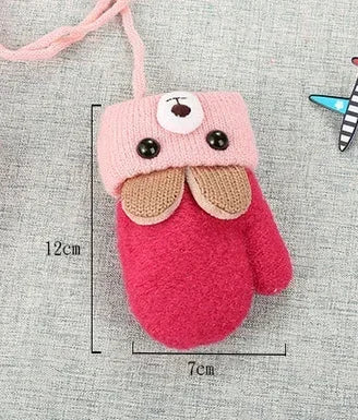 Cute Cartoon Bear Baby Gloves Winter Knitted Wool Infants Mittens Thicke Warm Full Rope Gloves For Boys Girls Toddlers 0-3 Y