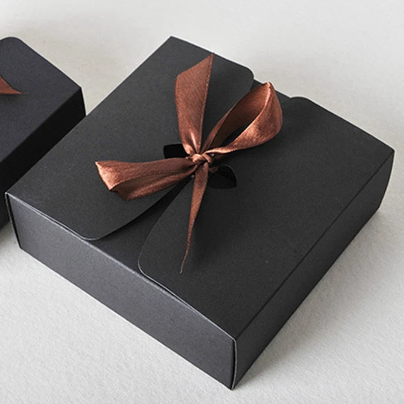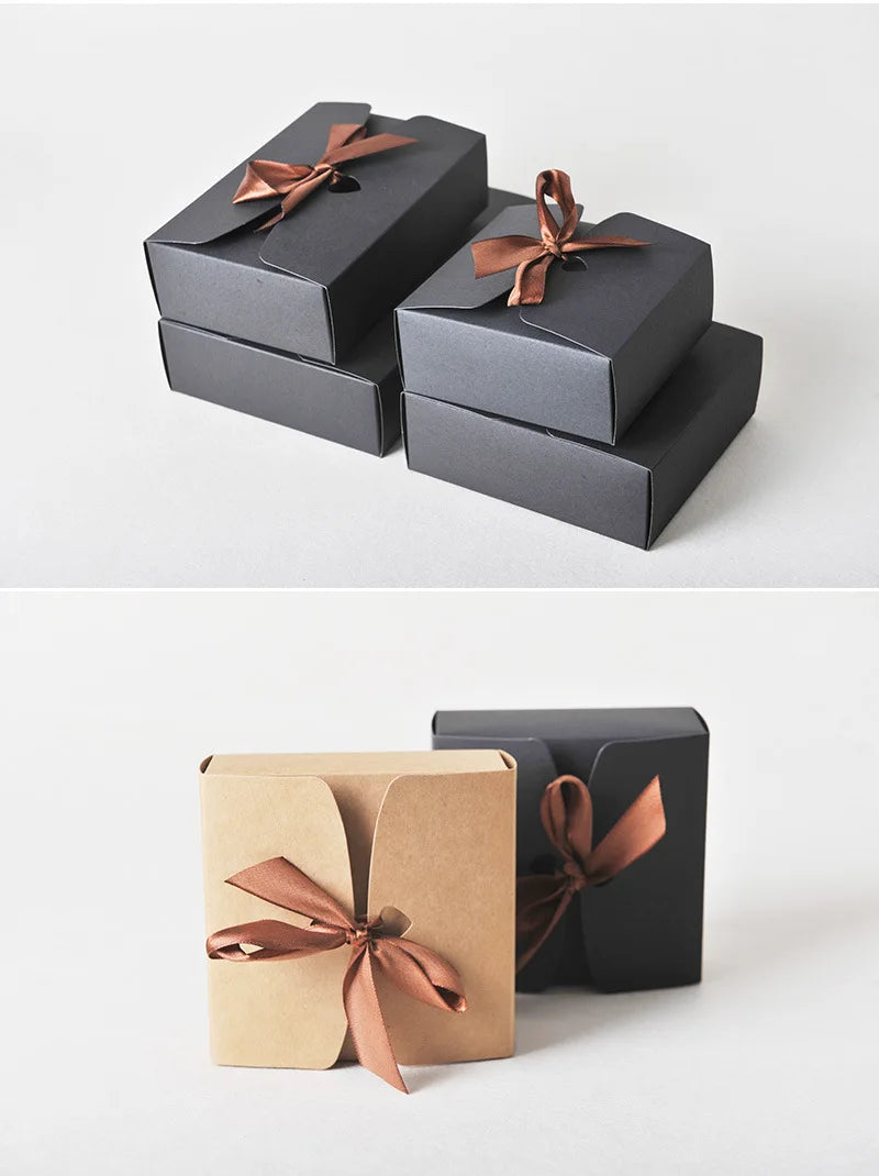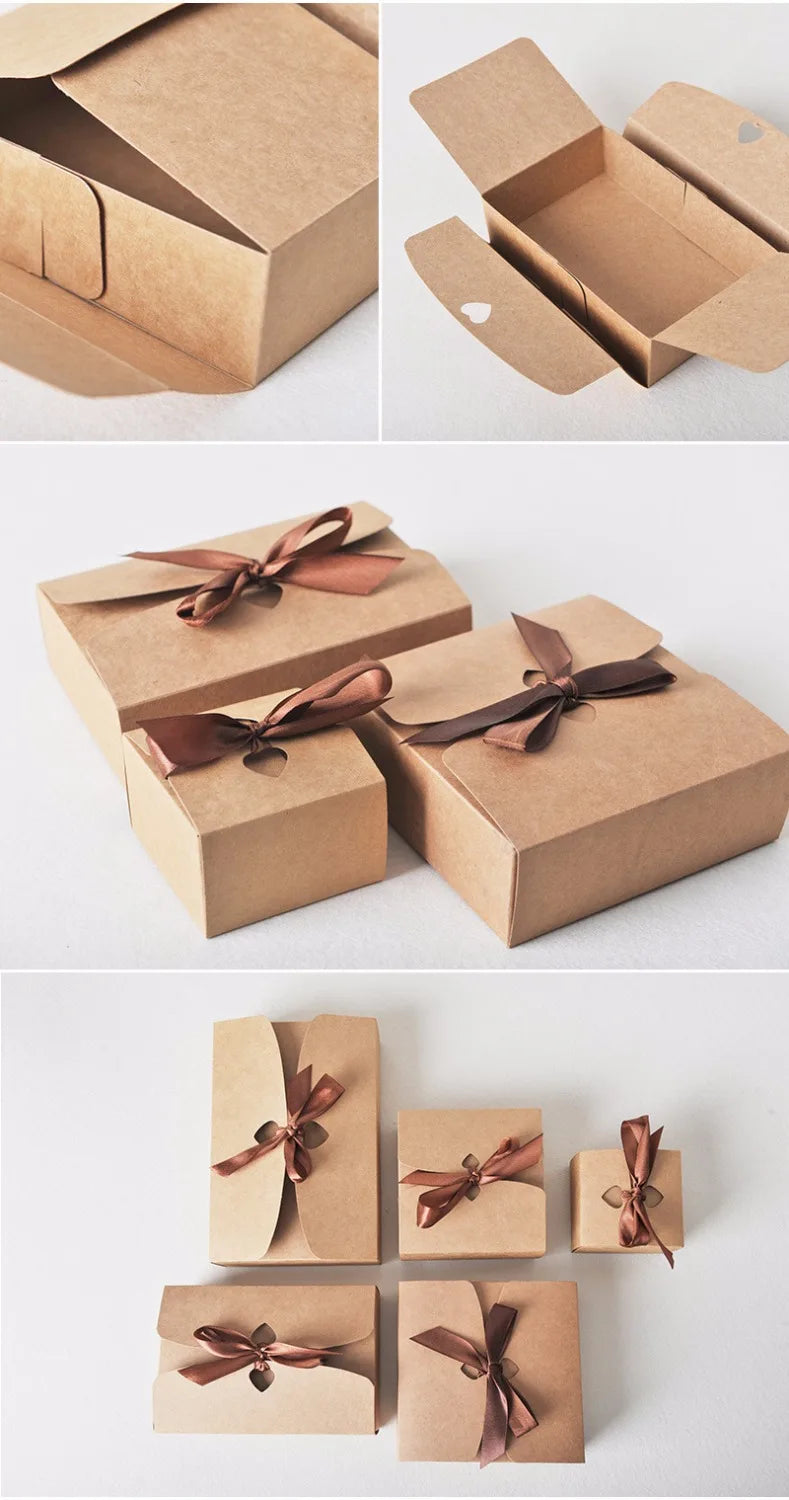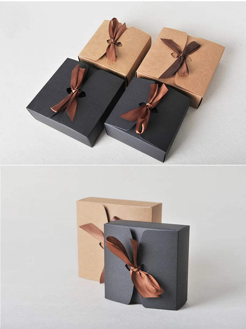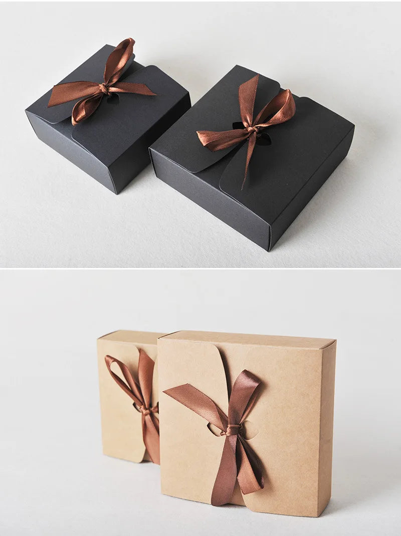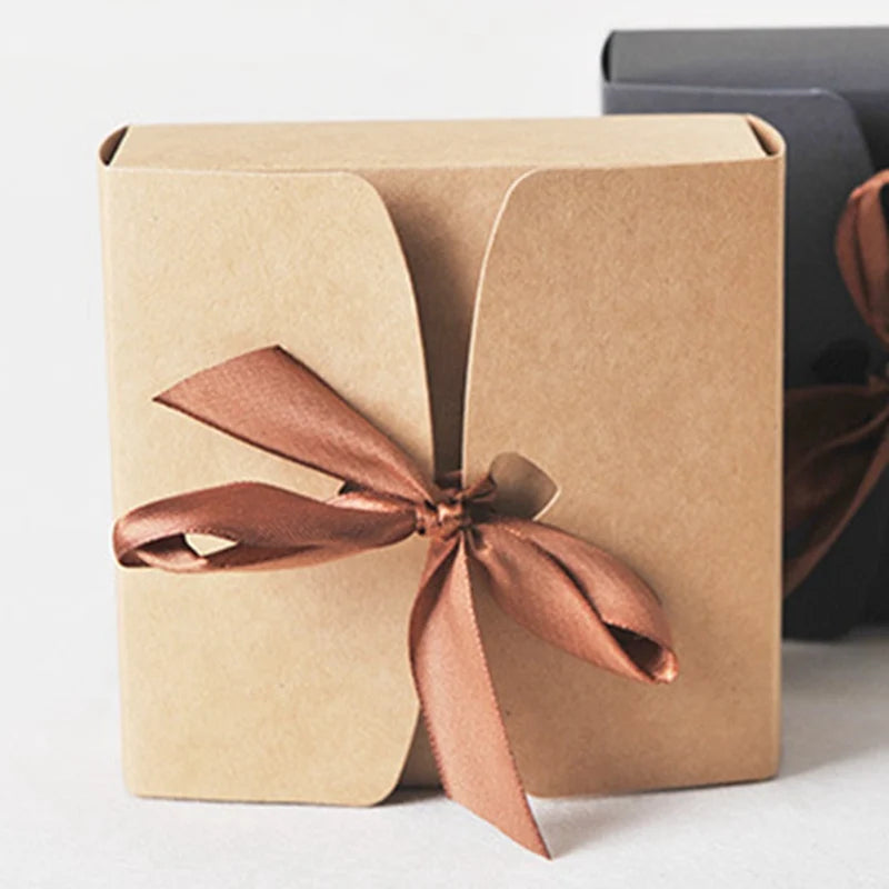 Square Kraft Paper Box Cardboard Packaging Valentine's Day Wedding Birthday Party Gift Box With Ribbons Candy Storage 30Pcs