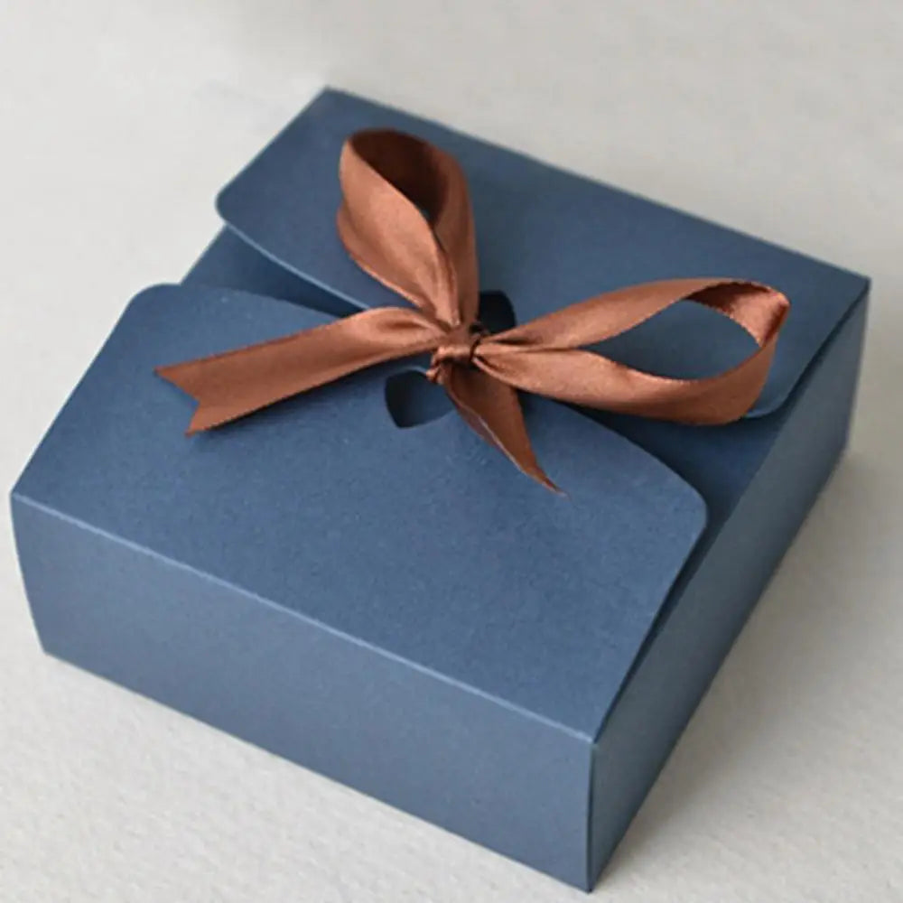 Square Kraft Paper Box Cardboard Packaging Valentine's Day Wedding Birthday Party Gift Box With Ribbons Candy Storage 30Pcs - DEEP BLUE / 8x8x5cm is backordered and will ship as soon as it is back in stock.