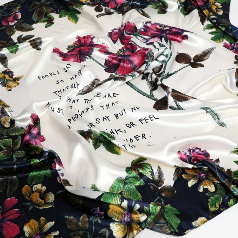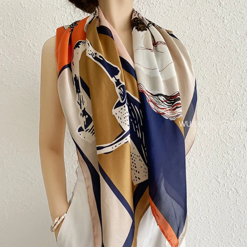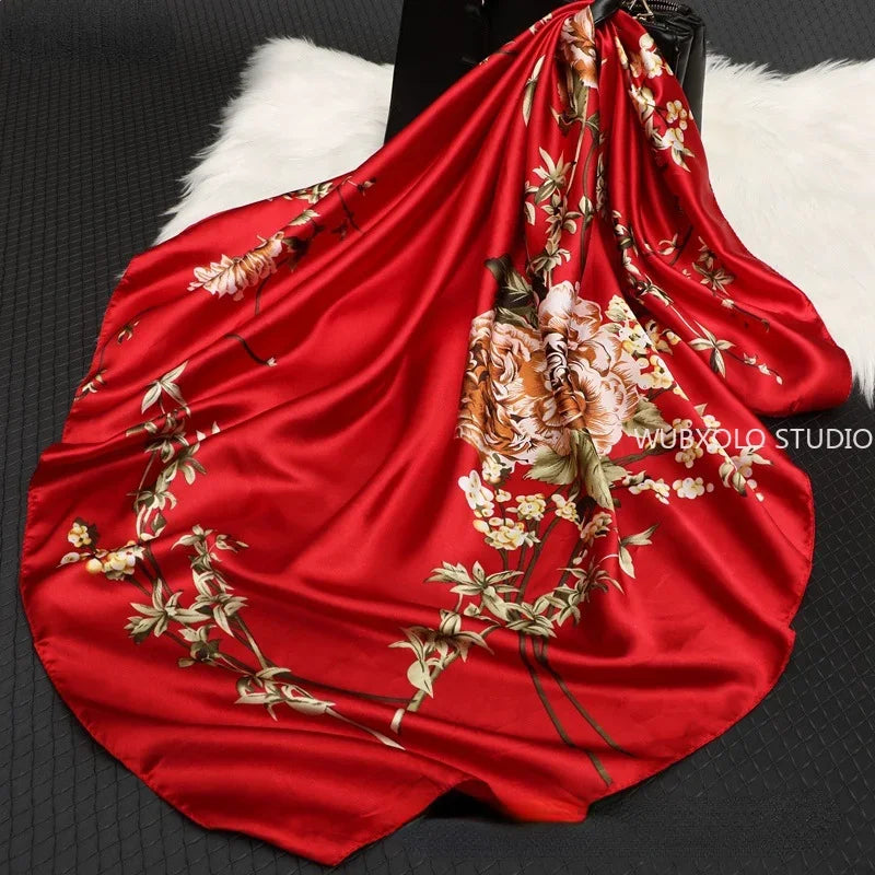 90*90cm Square Shawls and Wraps Floral Print Neck Scarf For Women Silk Satin Neck Scarfs For Ladies Bandana Head Scarves Female