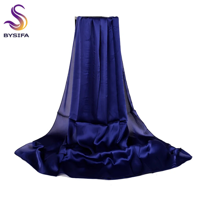 [BYSIFA] Ladies Plain Silk Scarf Shawl Navy Blue New Spring Autumn Elegant Solid Satin Long Scarves Women Summer Beach Cover-ups