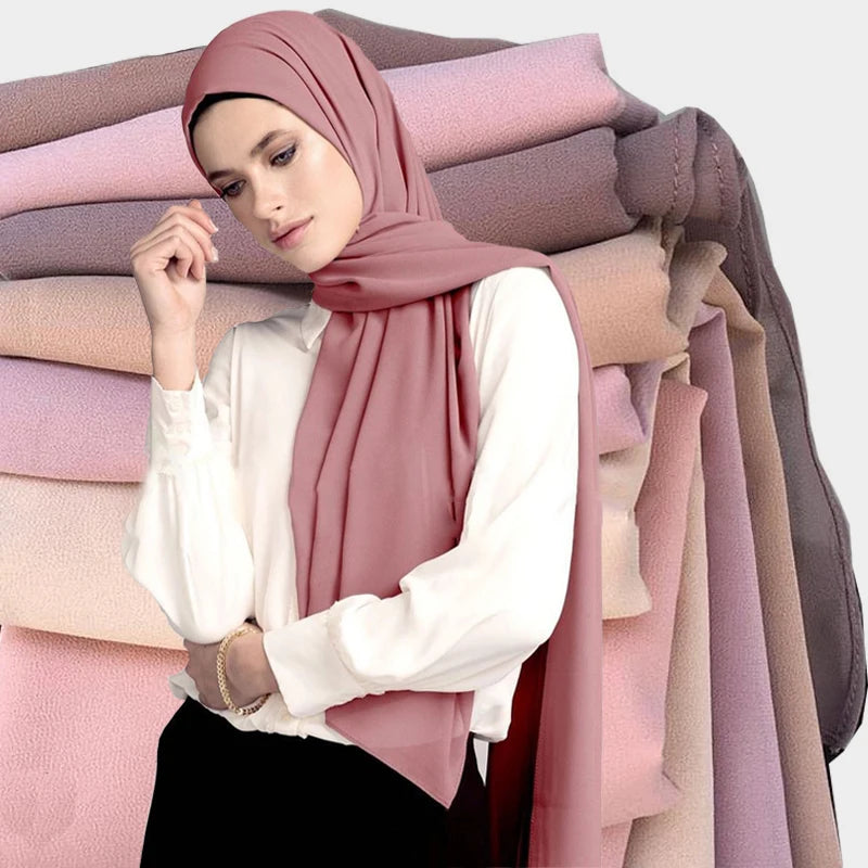 Multicolor soft women plain bubble chiffon scarf hijab wrap femme foulard shawls headband muslim hijabs scarves