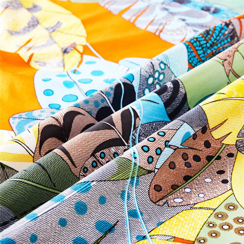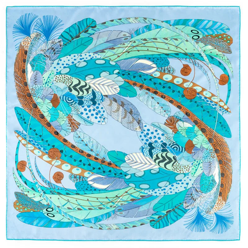 POBING Manual Hand Rolled Twill Silk Scarf Women Indian Feather Print Square Scarves Echarpes Foulards Femme Wrap Bandana Lady Hijab