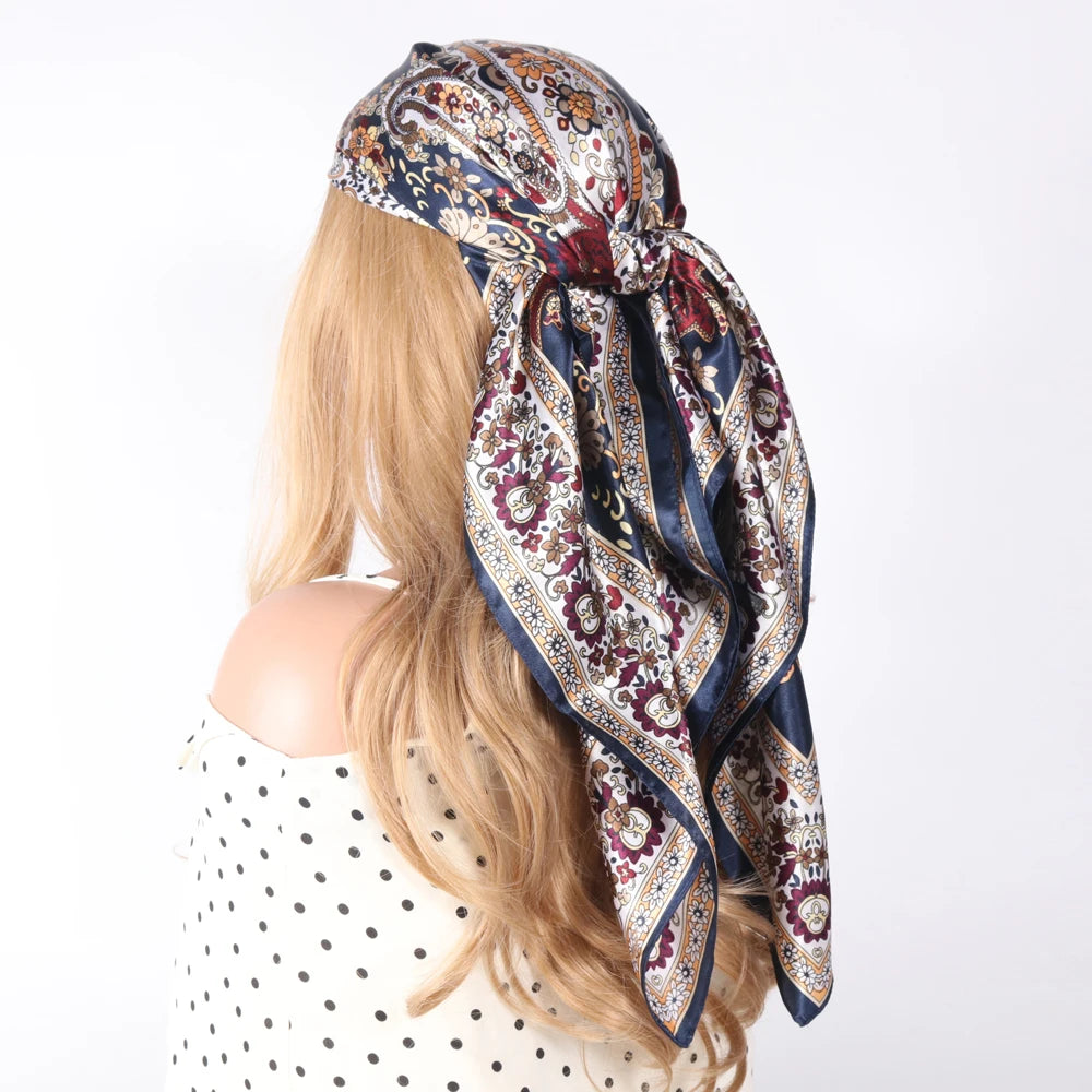 Silk Scarves Women Luxury Brand Summer Fashion Designer Head/Hair Scarf 90*90cm Hijab Bandana Cheveux Foulard Femme 90X90CM - NT021 / 90X90CM is backordered and will ship as soon as it is back in stock.