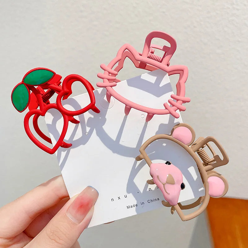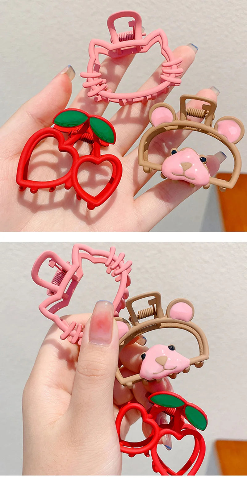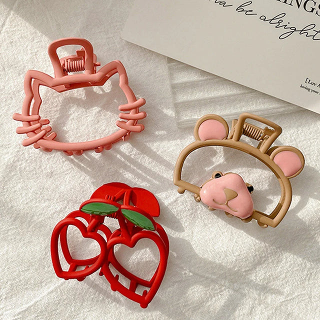 2023 Kawaii Hair Clip Bear Cherry Cat Alloy Girls Hair Claws Clips for Women Hair Accessories Korean Trendy Hairpins Head Wear