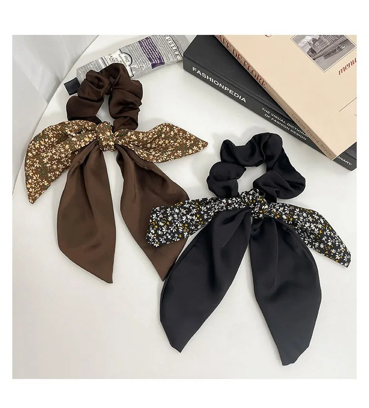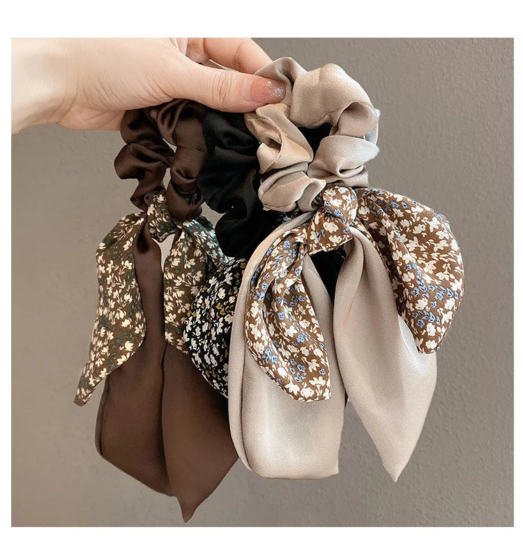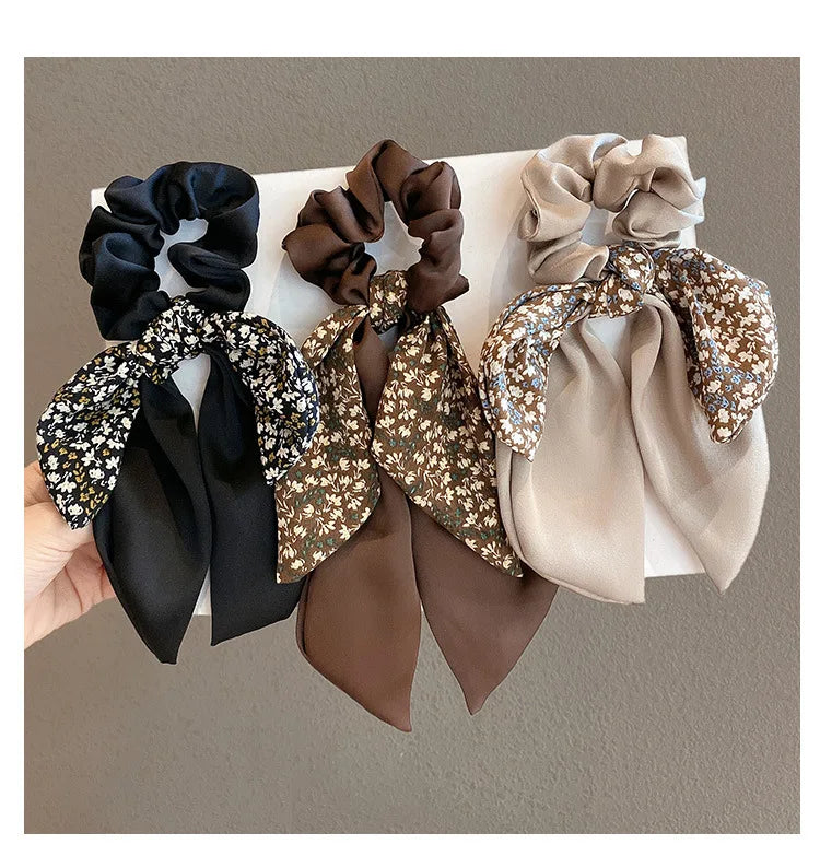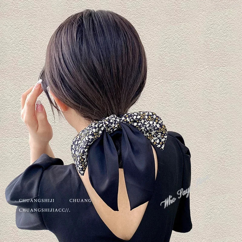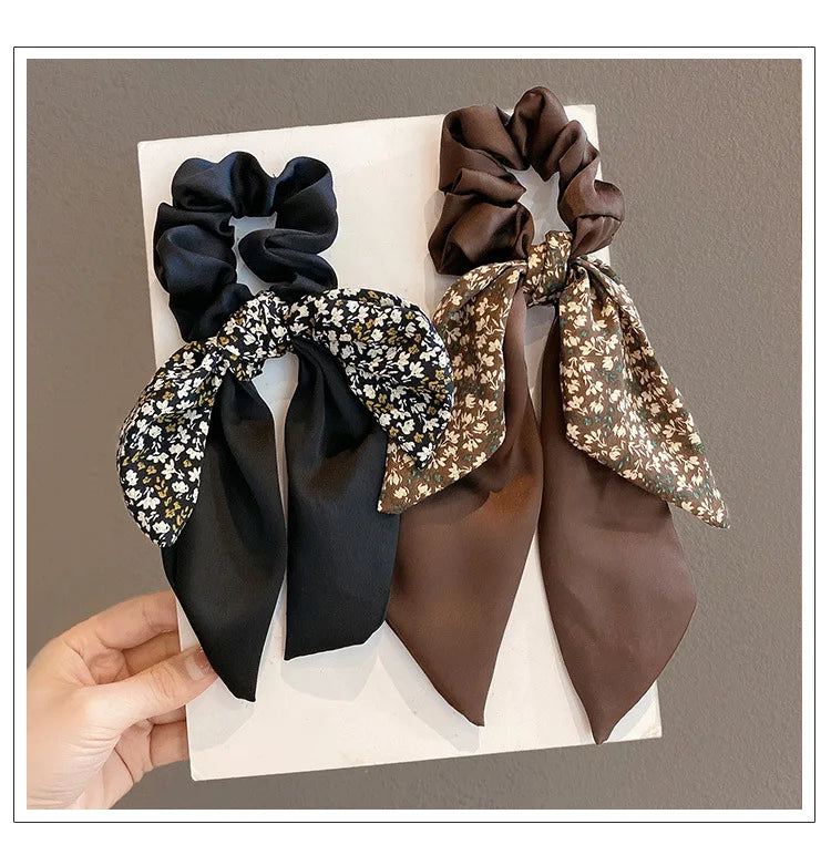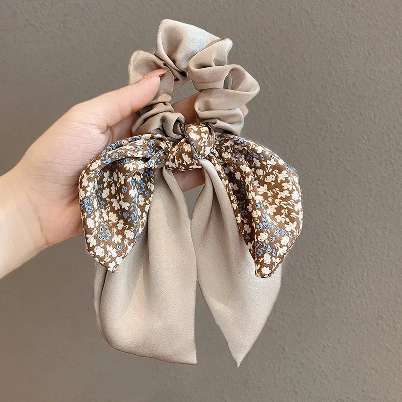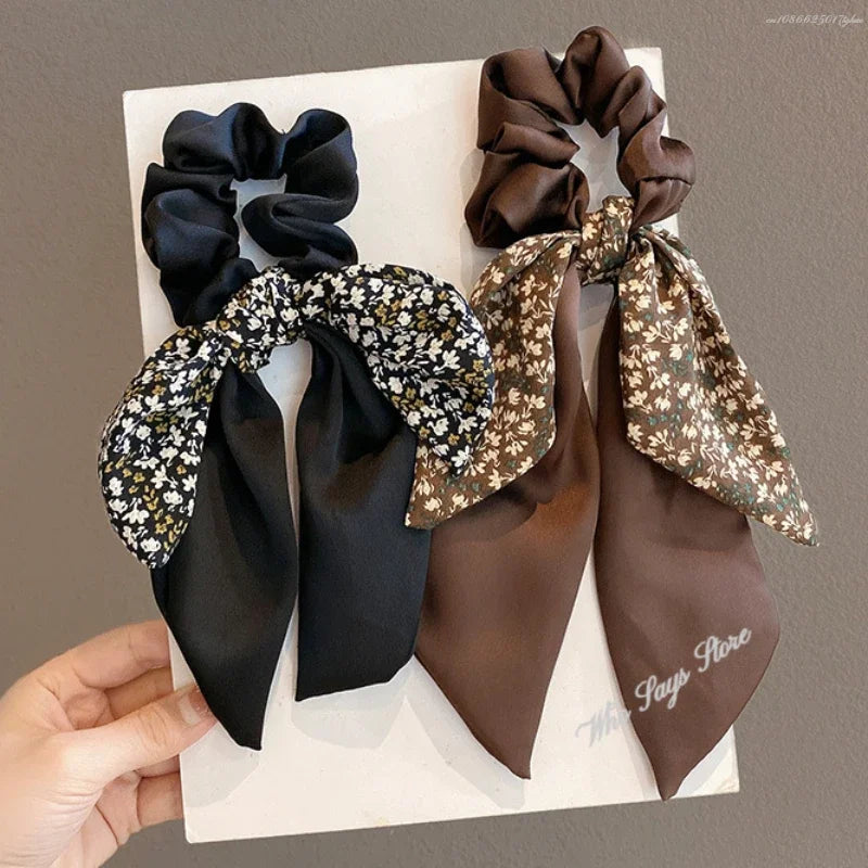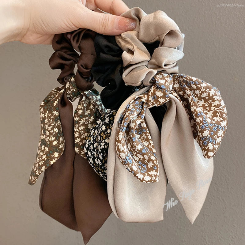 2024 New Korean Floral Bowknot Hair Ties for Women Girls Sweet Elastics Long Ribbon Ponytail Scarf Hair Tie Hair Accessories