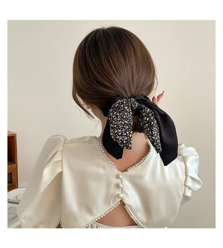 2024 New Korean Floral Bowknot Hair Ties for Women Girls Sweet Elastics Long Ribbon Ponytail Scarf Hair Tie Hair Accessories - Black is backordered and will ship as soon as it is back in stock.