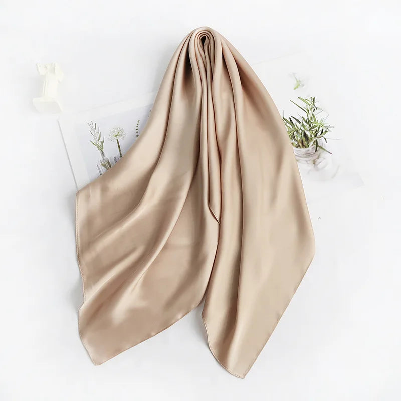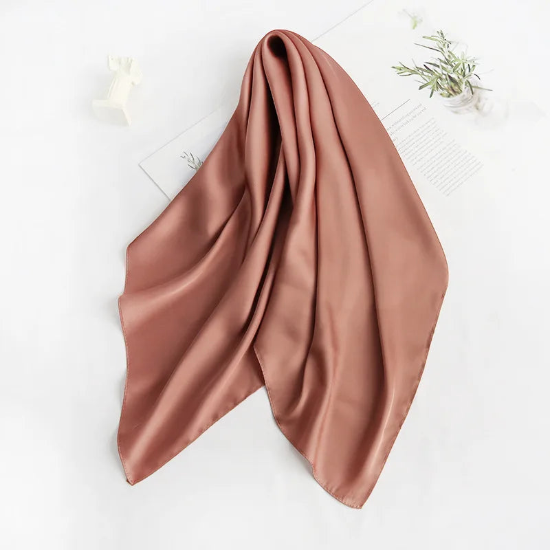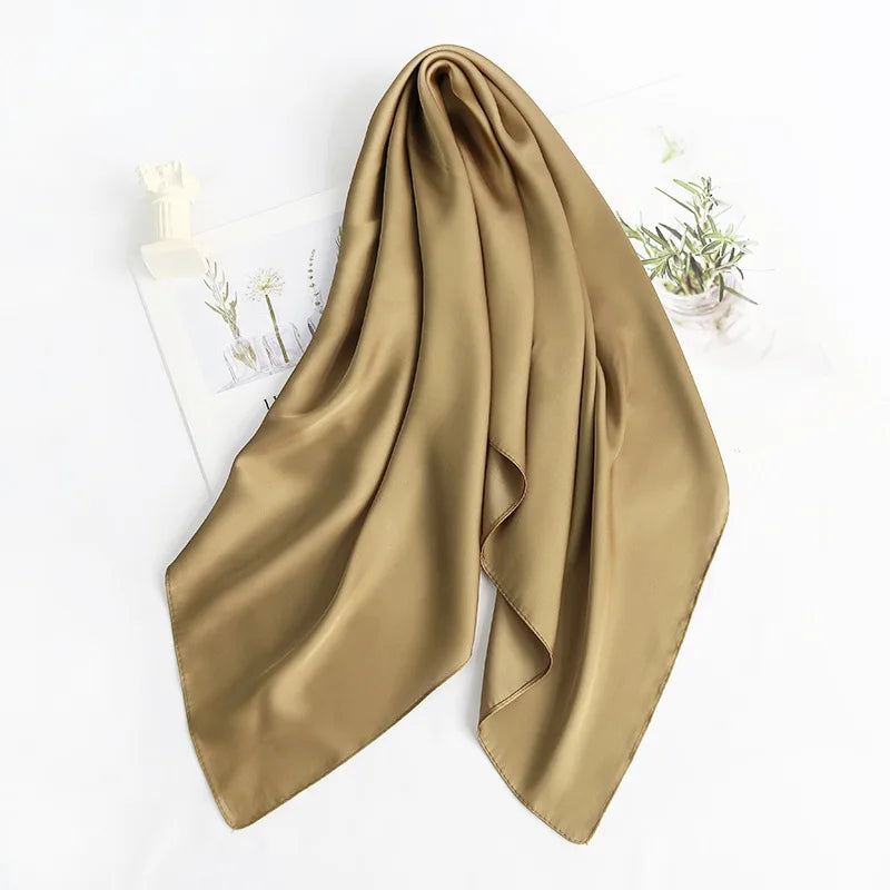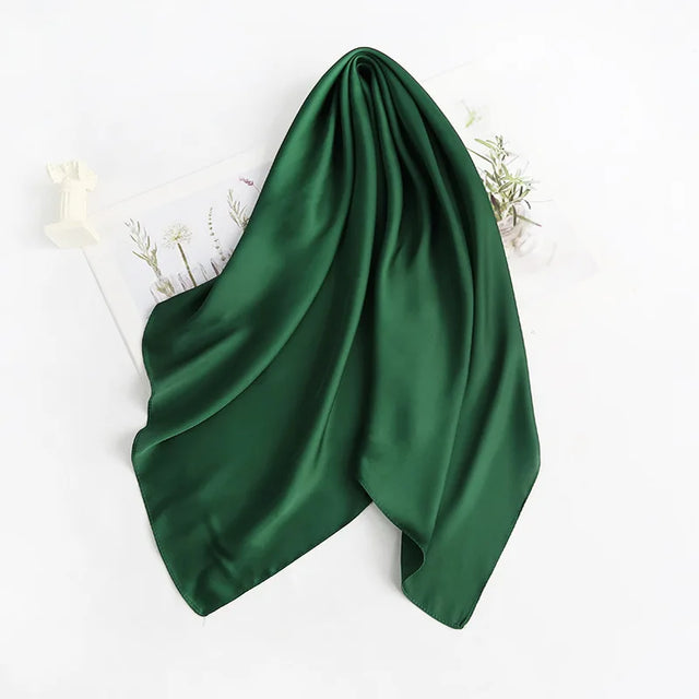 70cm*70cm Headband Neck Scarf For Women Small Shawls Cute Handkerchief Bandana Head Scarfs Female Black White Green Solid Colors - Coffee Green / 70x70cm is backordered and will ship as soon as it is back in stock.