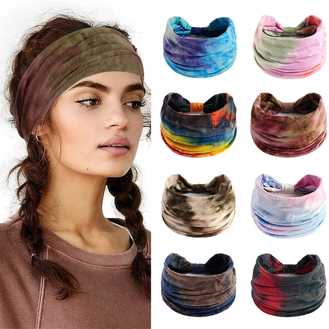 Bohemian Wide Stretch Headbands Multi-color Tie-dyed Yoga Sweatband Turban Head Wrap Bandana Women Hair Accessories Wholesale