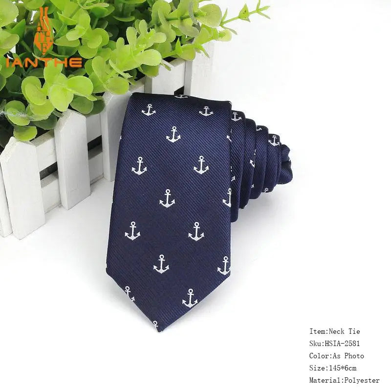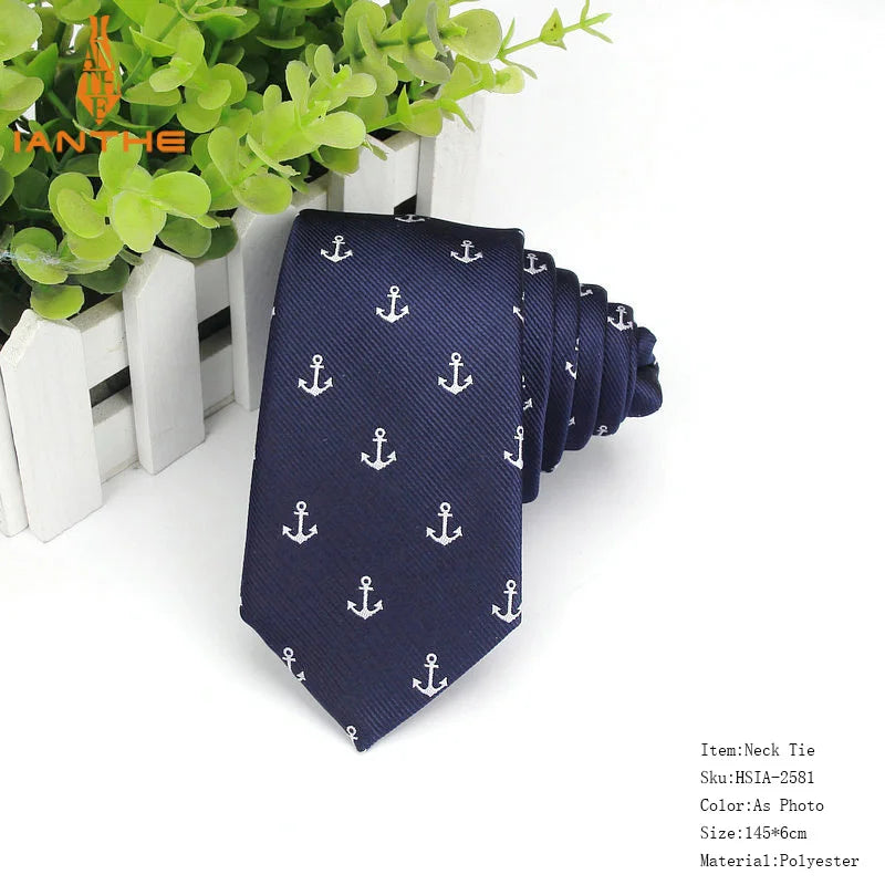Luxury Men's Anchor Woven Pattern Ties for Men's Slim Neckties Polyester Jacquard Skinny Neck Tie Wedding Corbata Gravata Ties