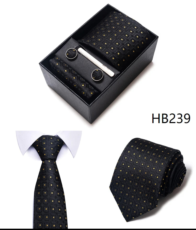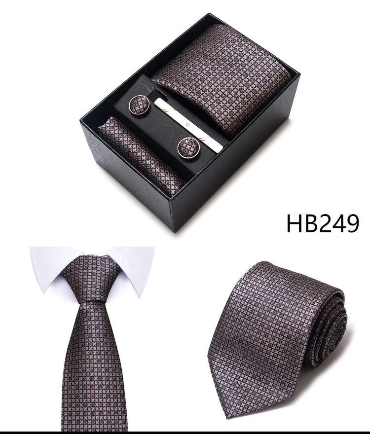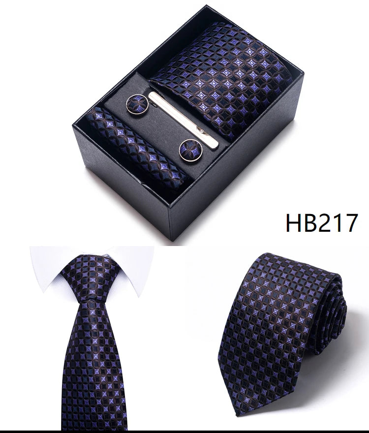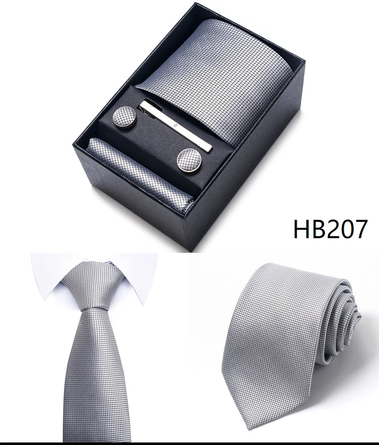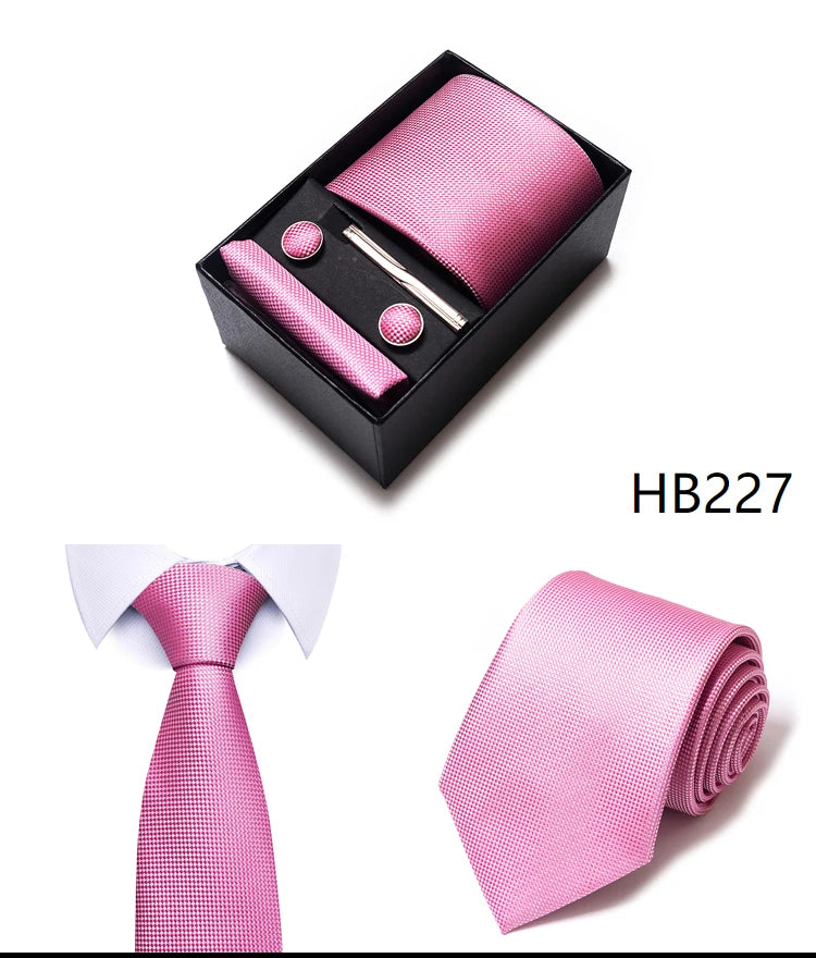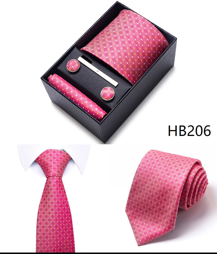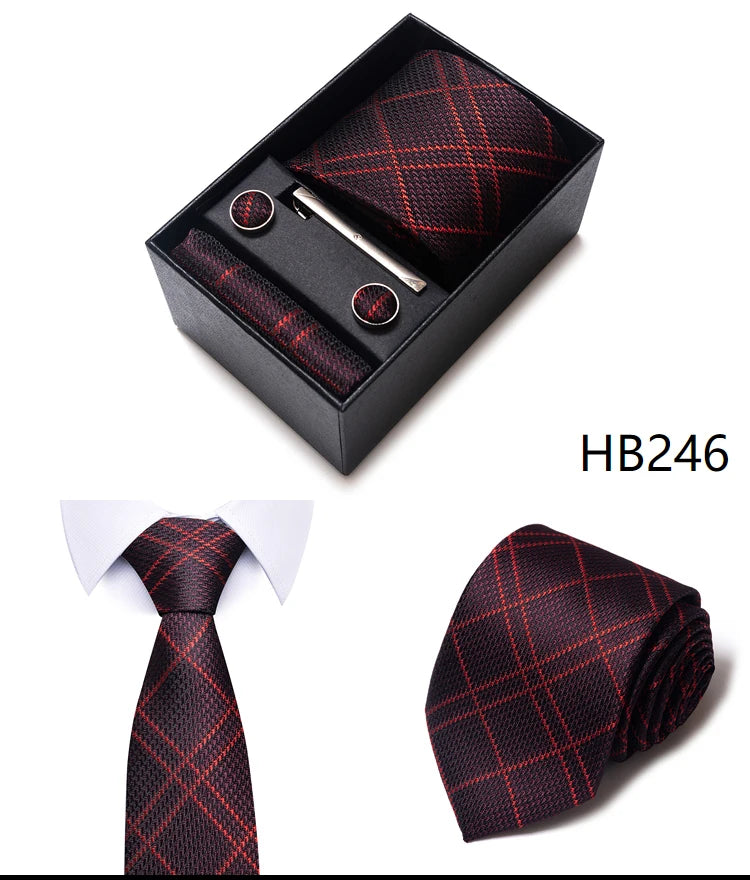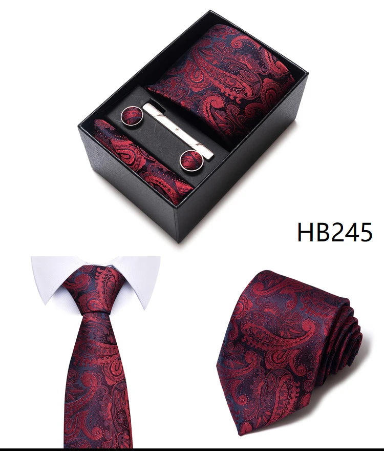 65 Colors Fashion Tie Handkerchief Set Tie Clip Necktie Box Man's Shirt Dark Red Accessories Men Wedding Holiday Gift - HB251 is backordered and will ship as soon as it is back in stock.