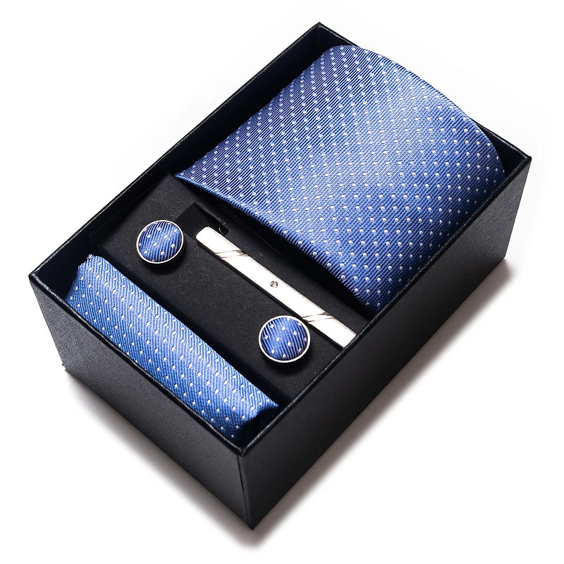 65 Colors Fashion Tie Handkerchief Set Tie Clip Necktie Box Man's Shirt Dark Red Accessories Men Wedding Holiday Gift