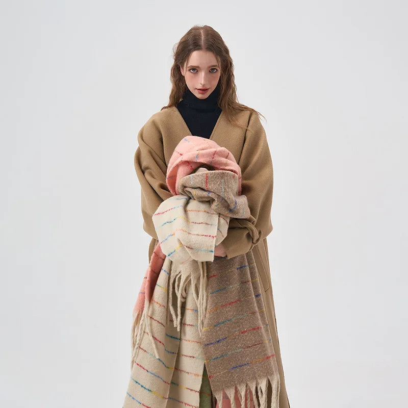 2023 Woman Gradient Colourful Soft Touch Stripe Scarf Winter Variety of Warm Shawl Couple Retro Scarfs