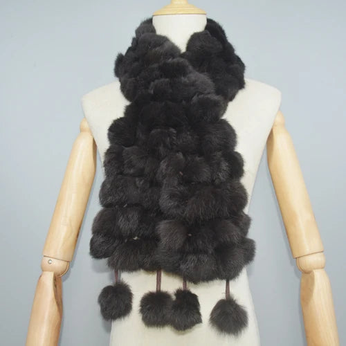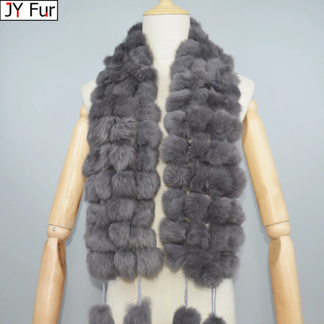 2024 Winter Women Genuine Fur Scarf Real Rex Rabbit fur Balls Scarves Russian Cute Female Fashion Warm Fur Scarf Colourful
