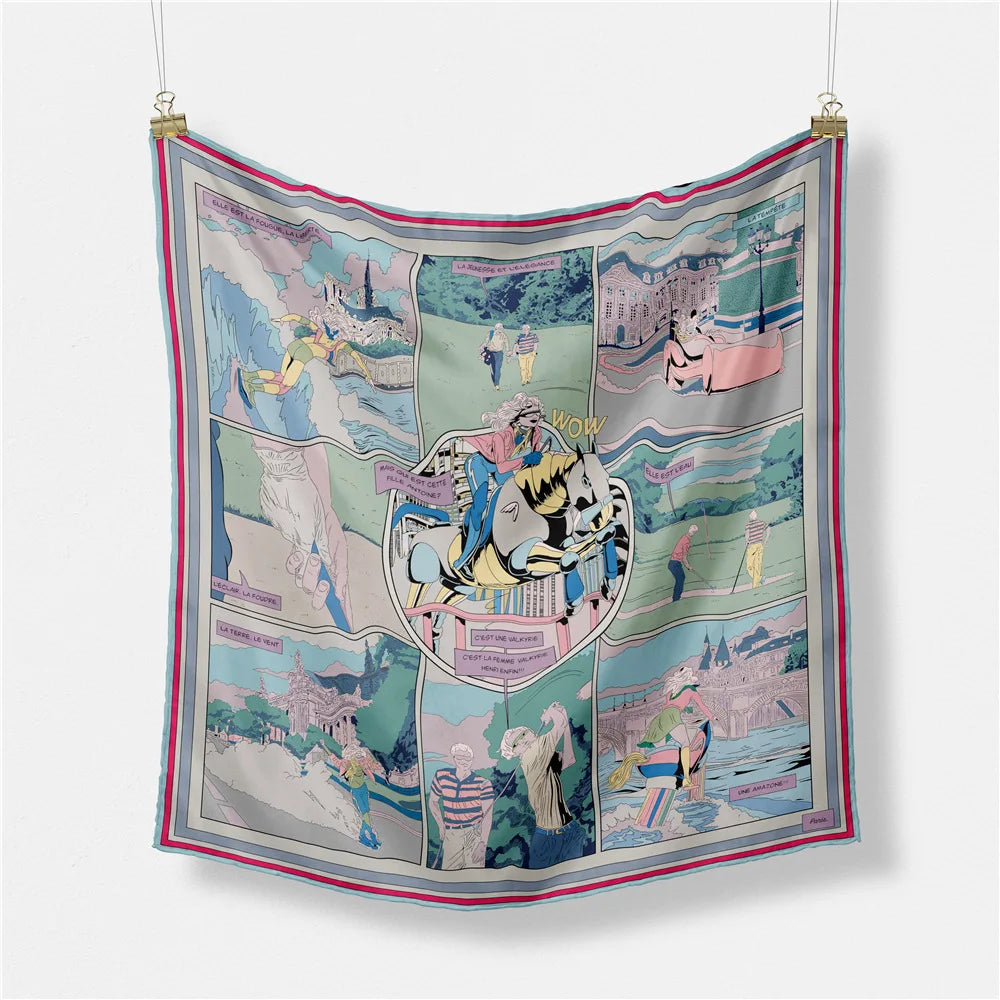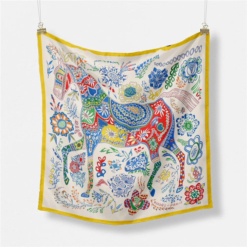 Brand Silk Scarves Colour Horse 100% Twill Silk Scarf Women Shawls Luxury Design Hijab Scarf Fashion Square Scarves Neckerchief