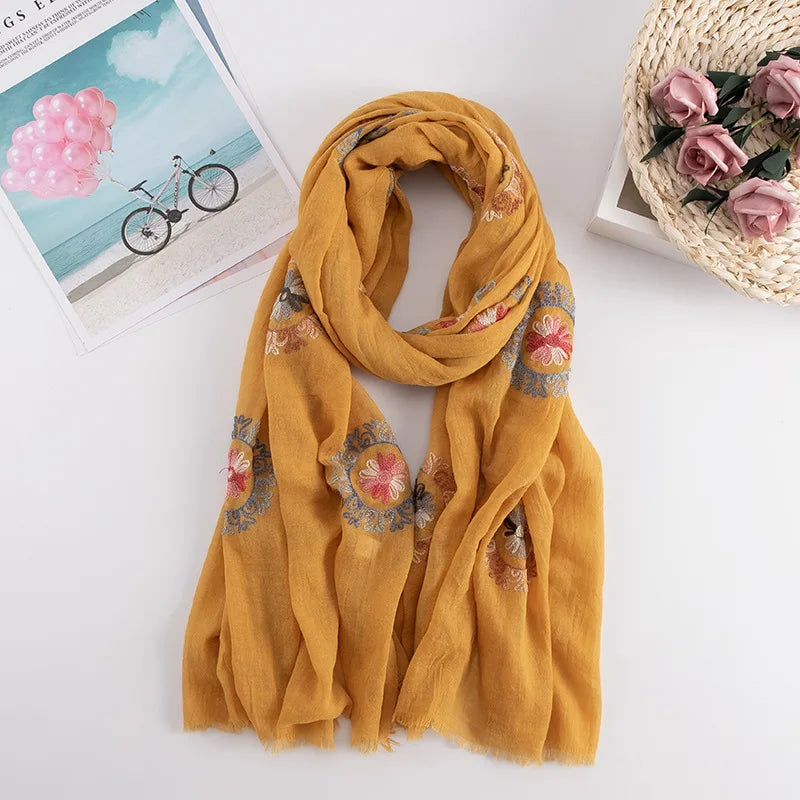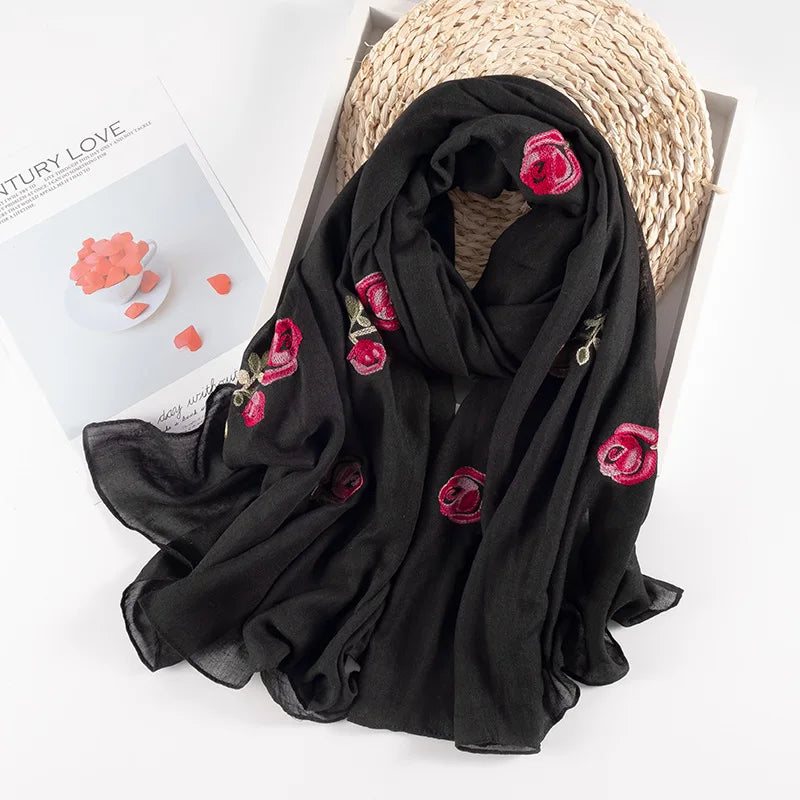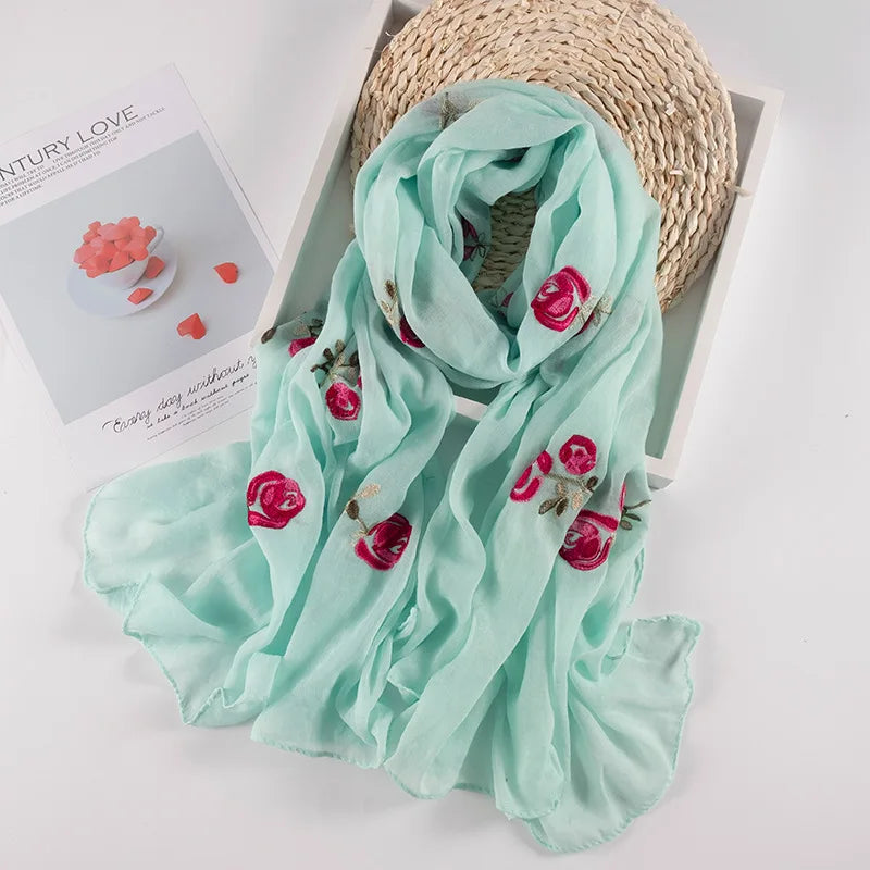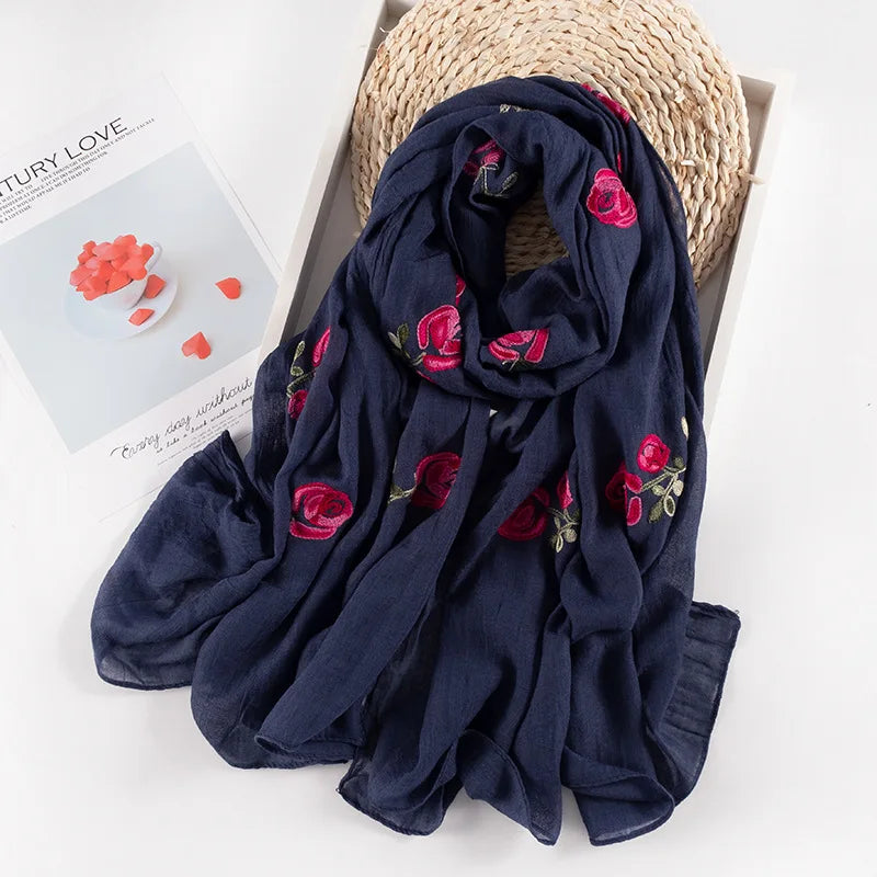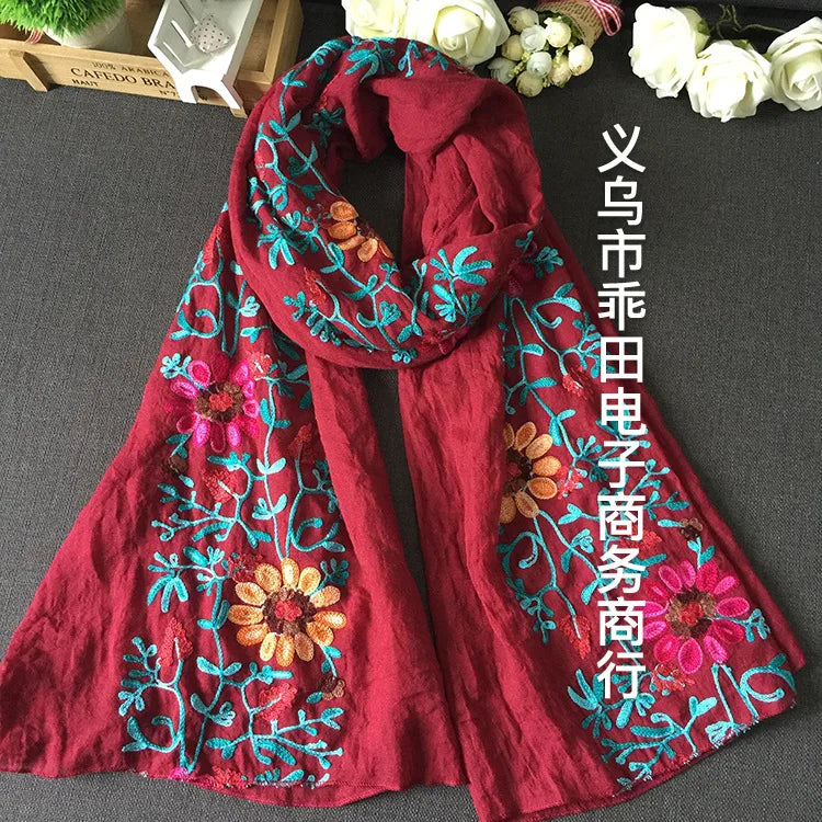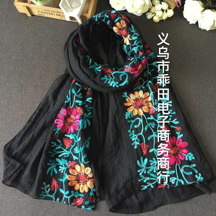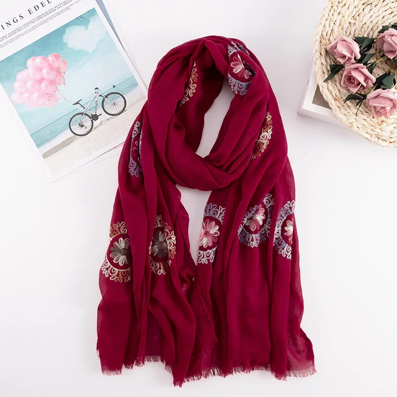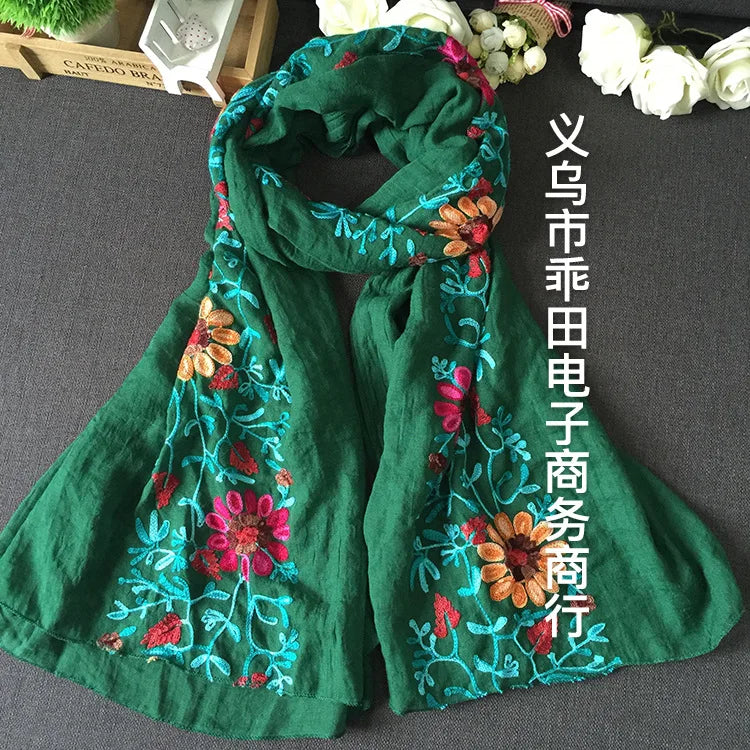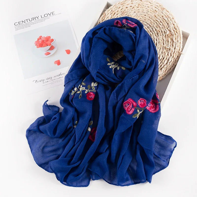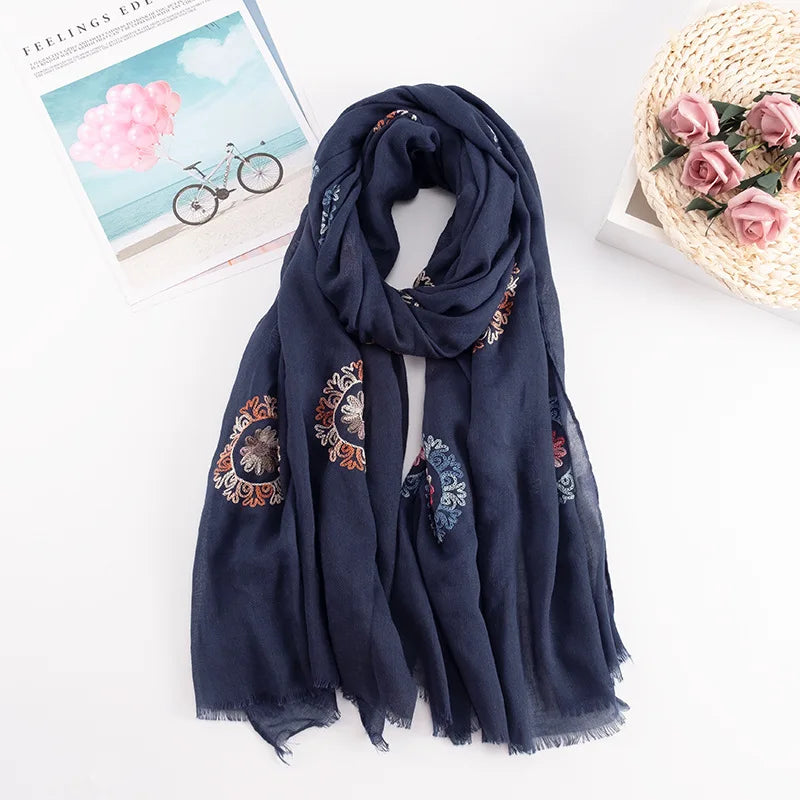 Many Colours Ethnic Embroidery Women Winter Foulard Elegant Flower Long Scarf Bandana Muslim Hijab Shawl Travel