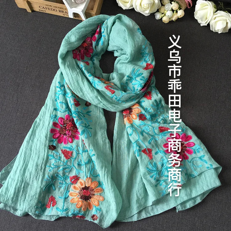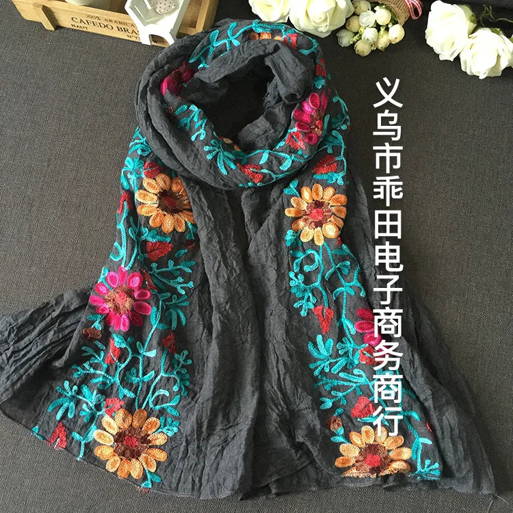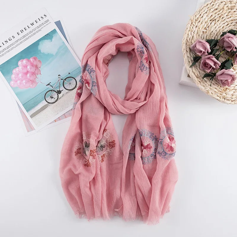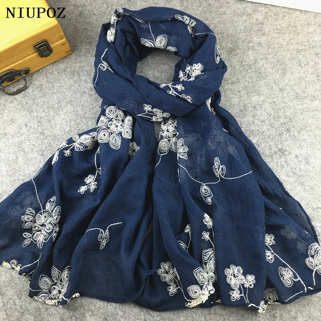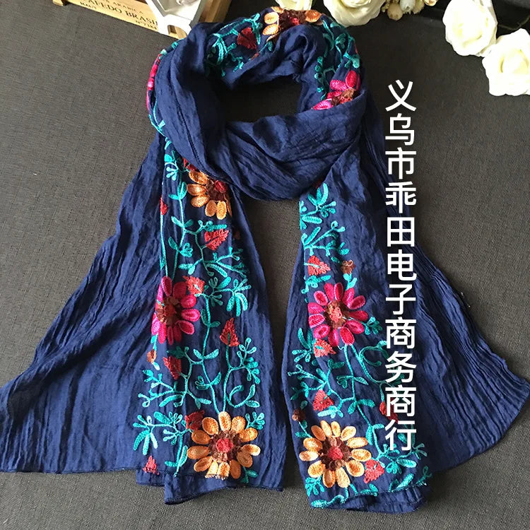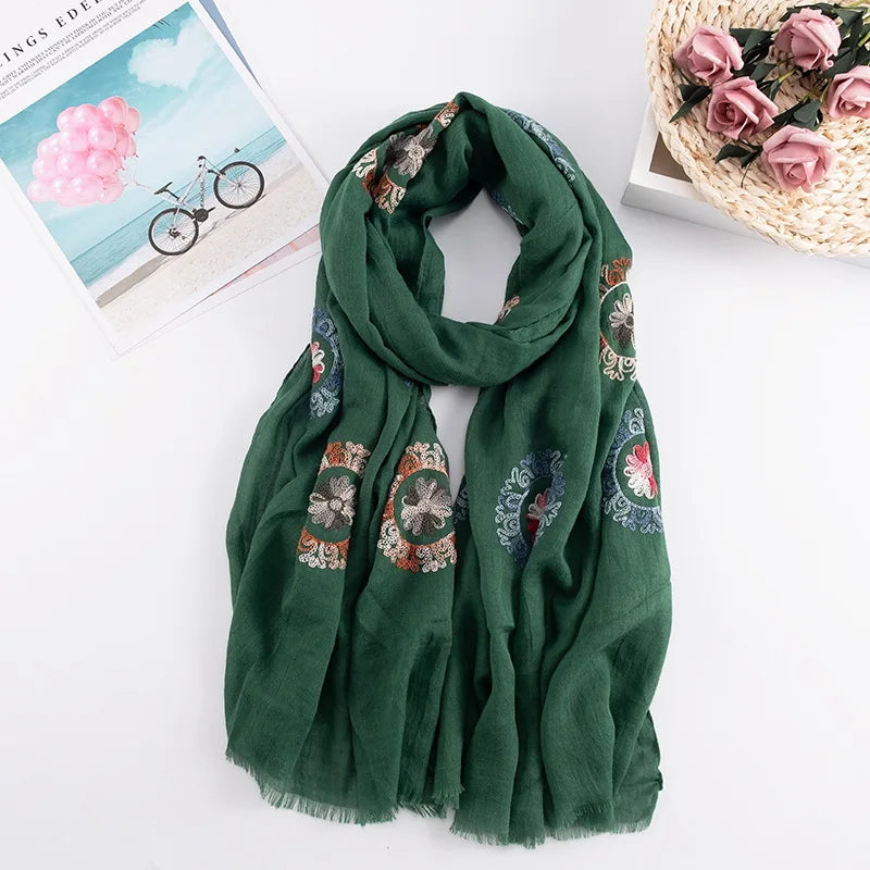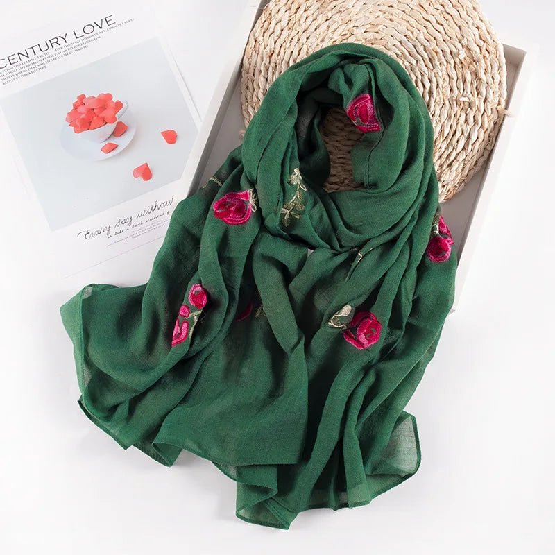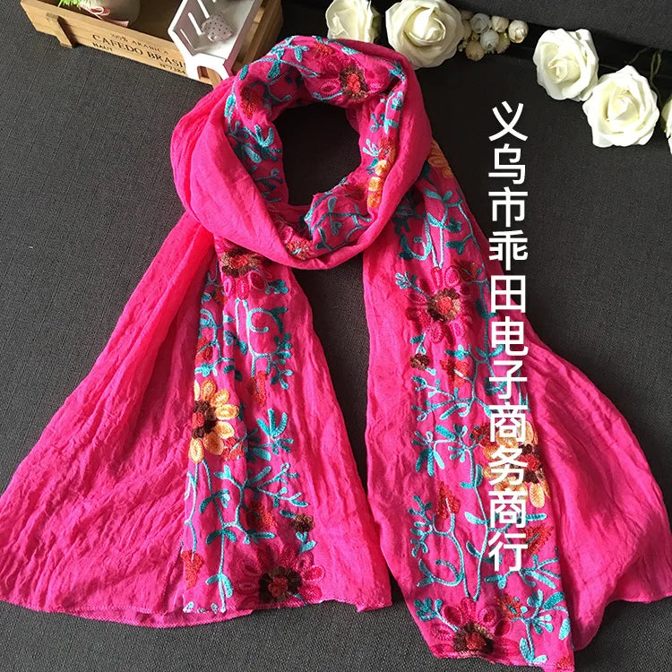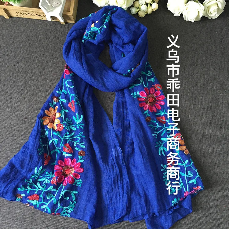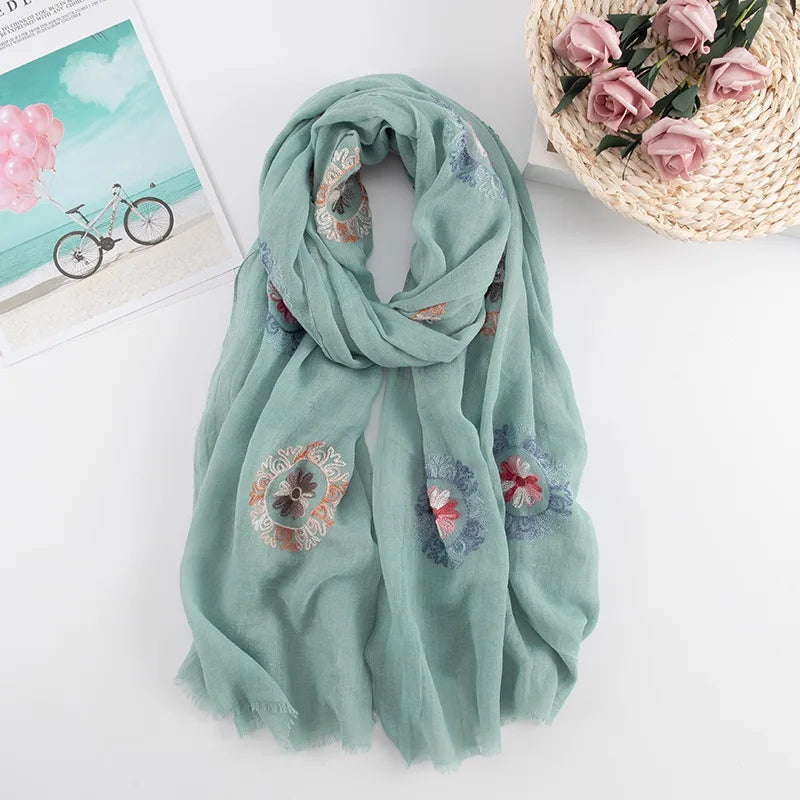 Many Colours Ethnic Embroidery Women Winter Foulard Elegant Flower Long Scarf Bandana Muslim Hijab Shawl Travel