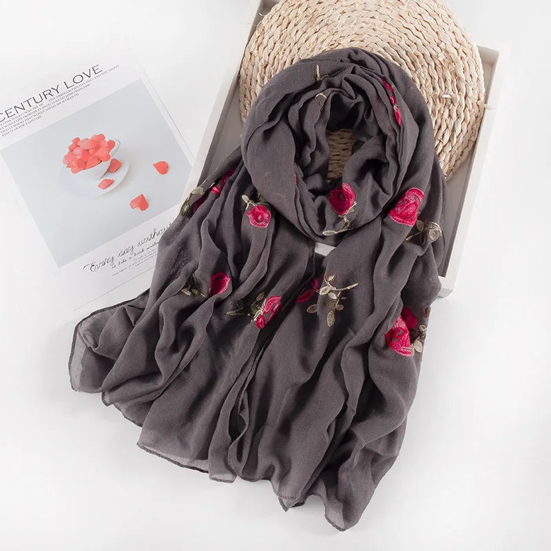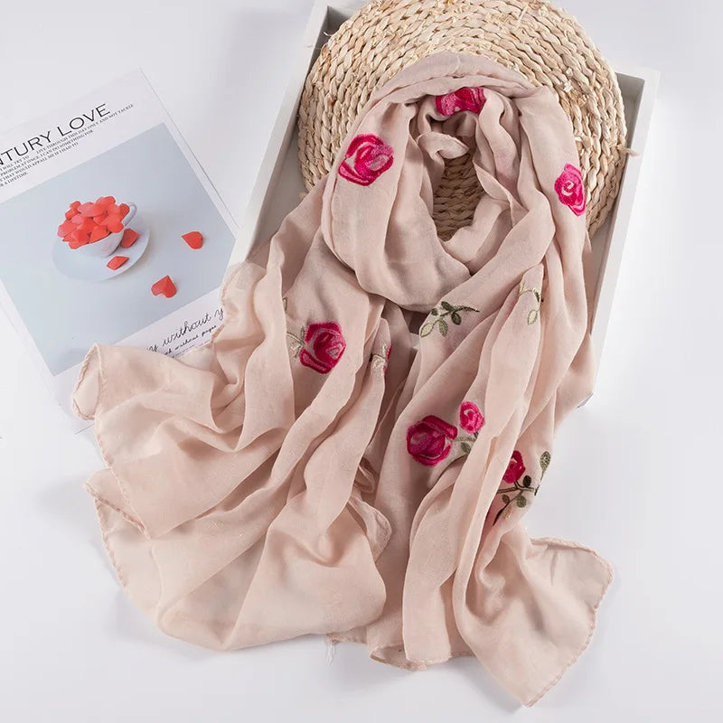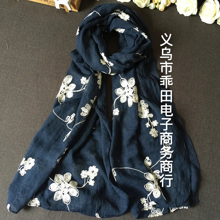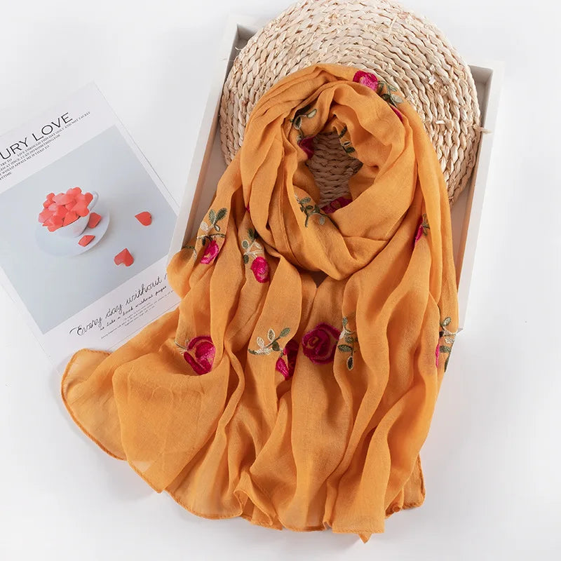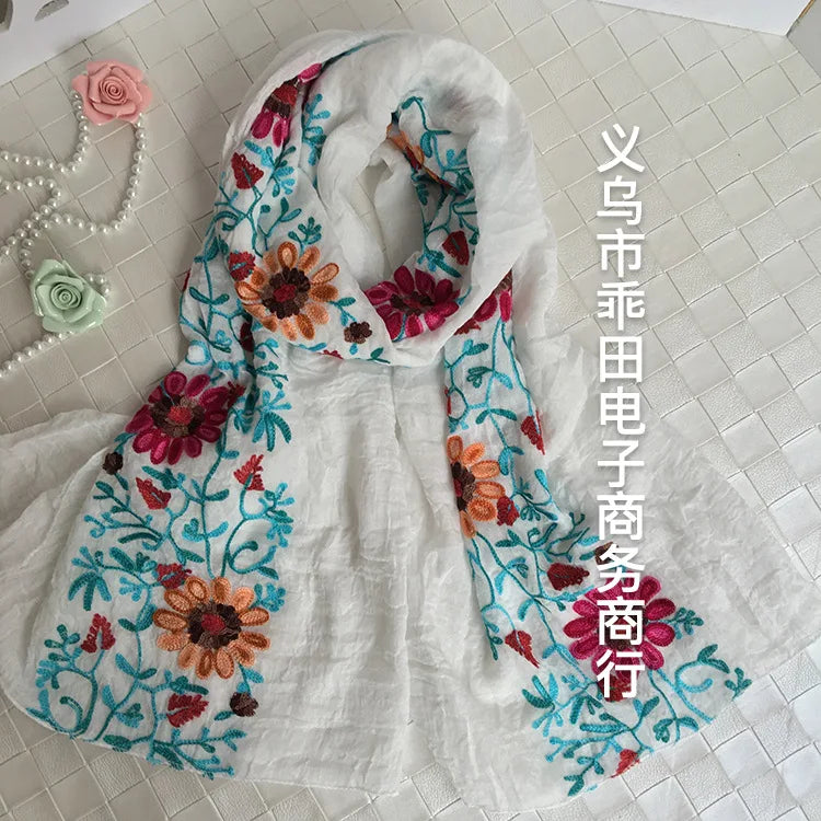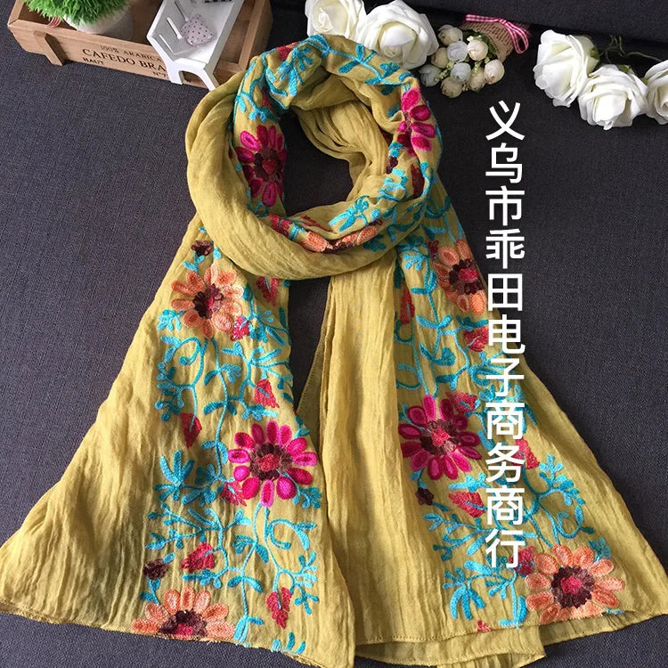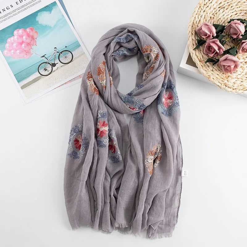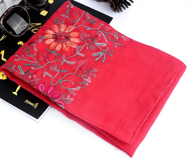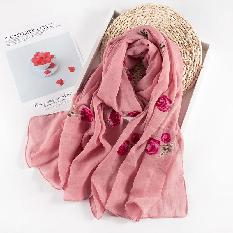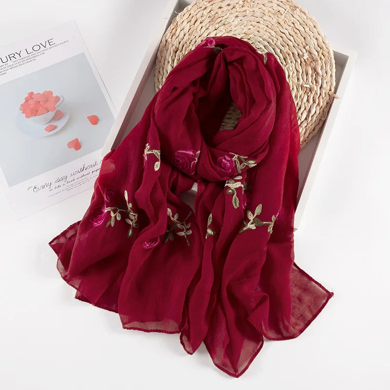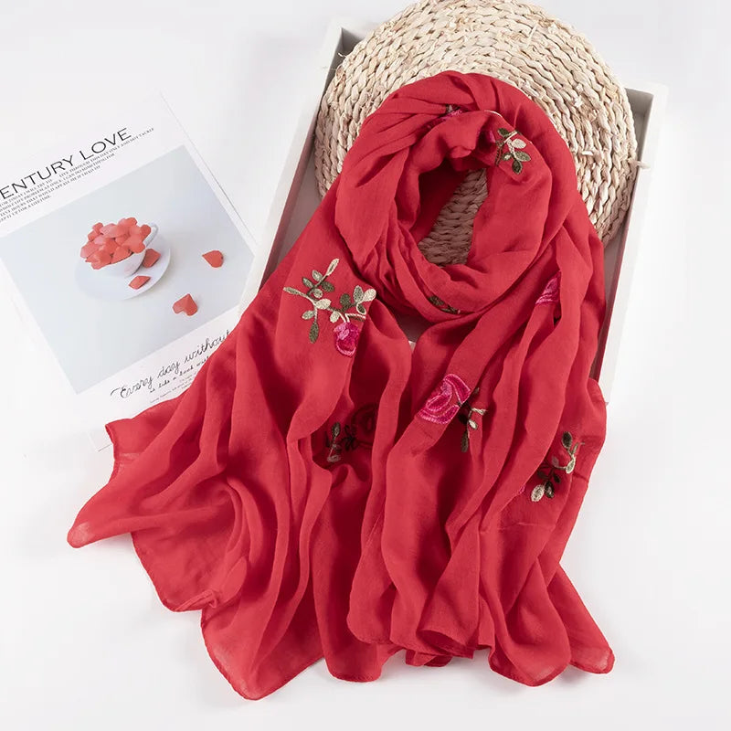 Many Colours Ethnic Embroidery Women Winter Foulard Elegant Flower Long Scarf Bandana Muslim Hijab Shawl Travel