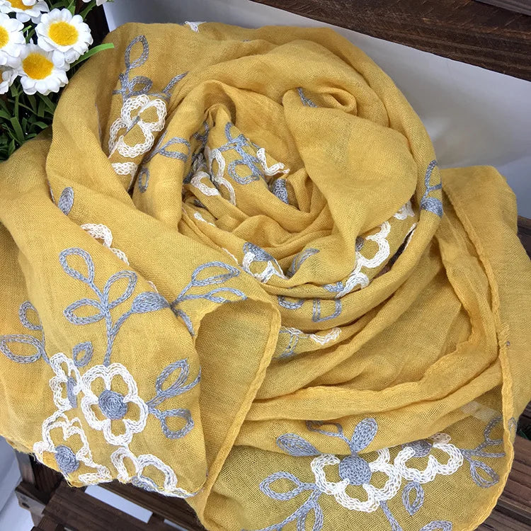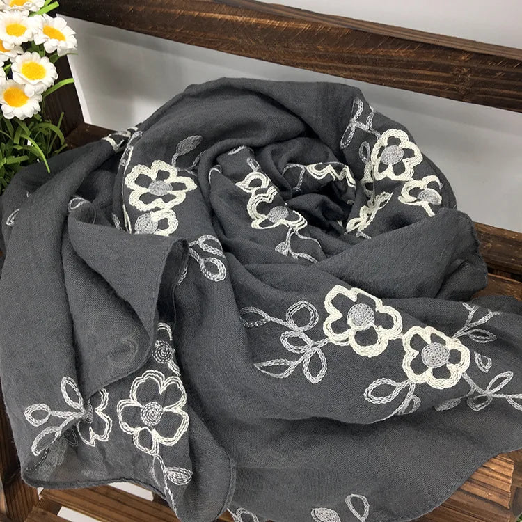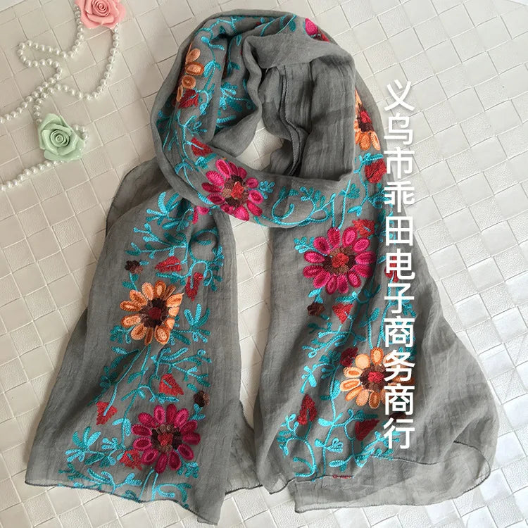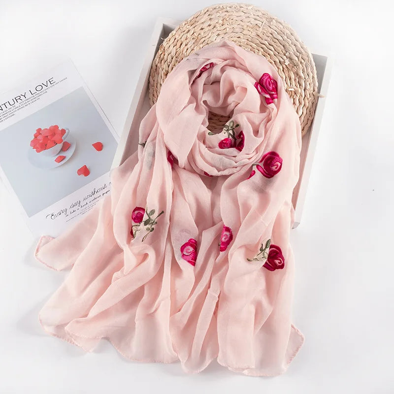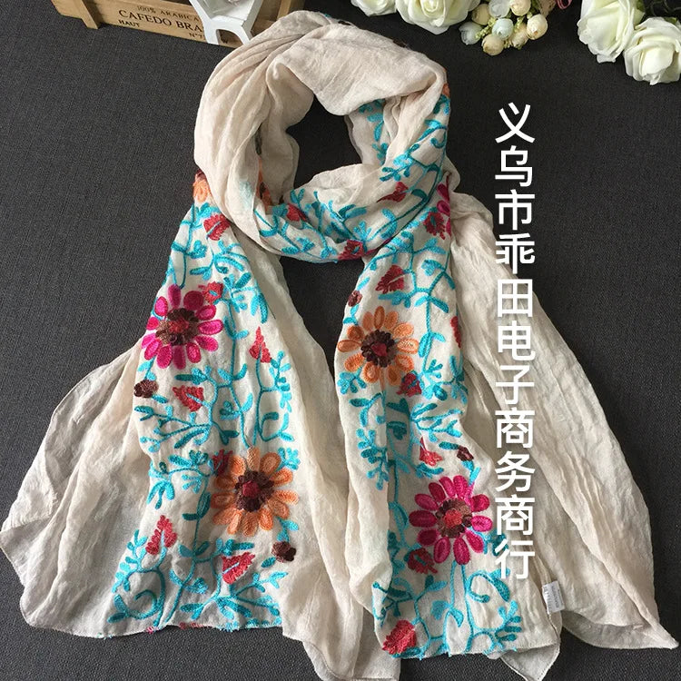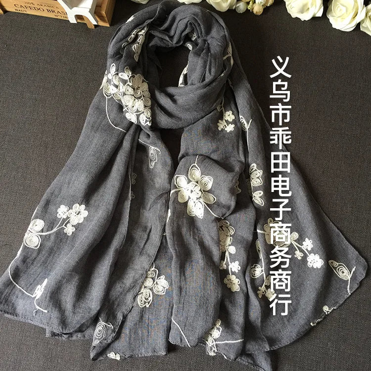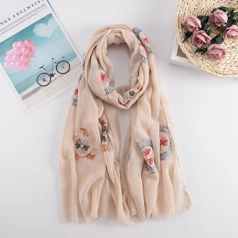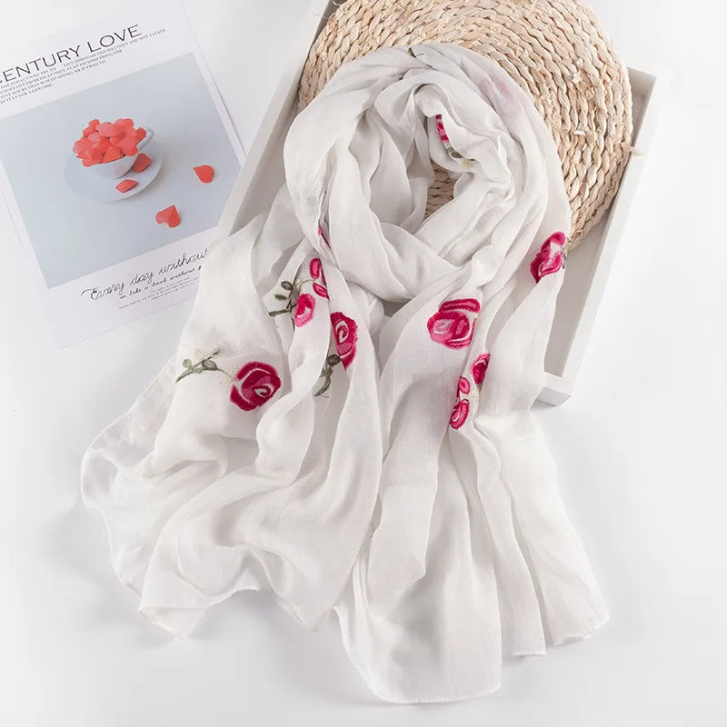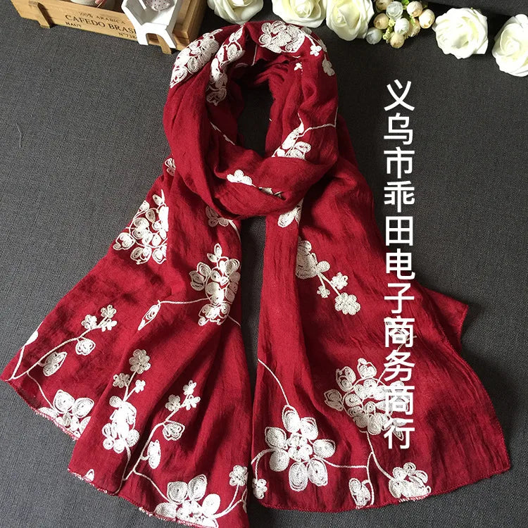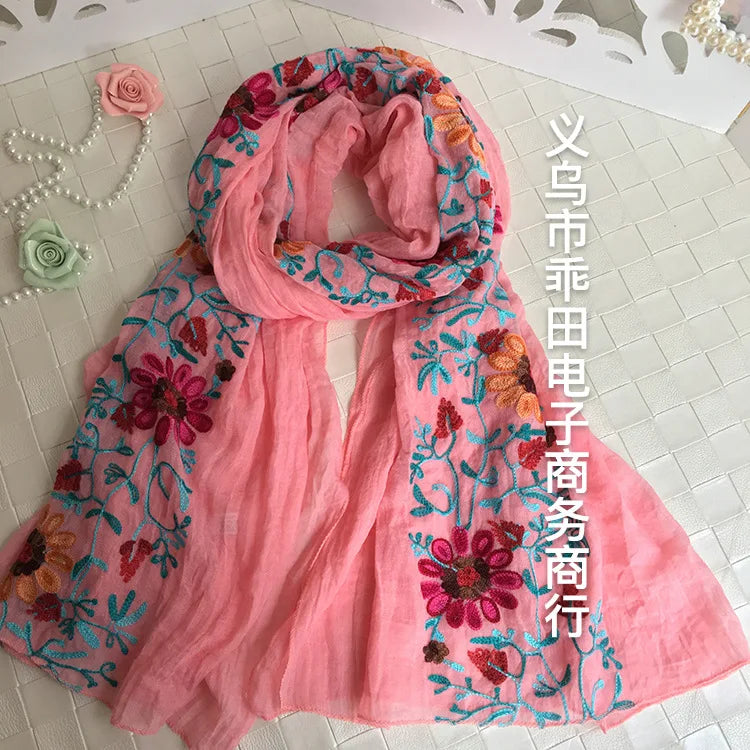 Many Colours Ethnic Embroidery Women Winter Foulard Elegant Flower Long Scarf Bandana Muslim Hijab Shawl Travel
