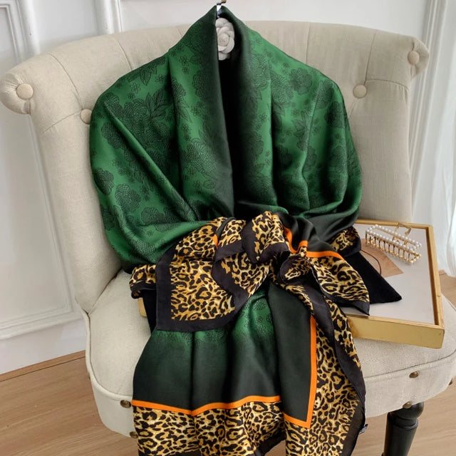 Popular Kerchief New Sunscreen Beach Towel Fashion High-Grade Shawl Female 180X90CM Satin Silk Scarf Summer Colour Print Bandana