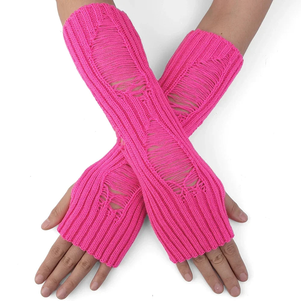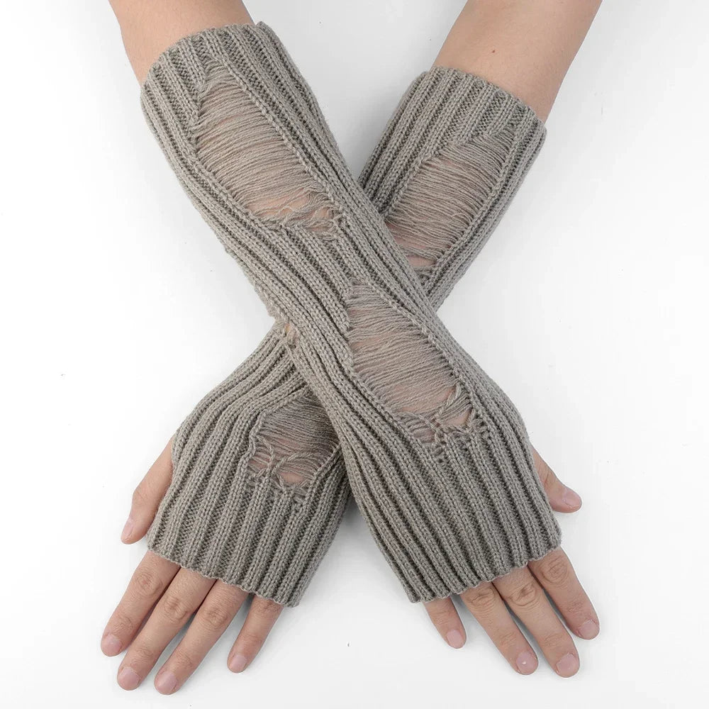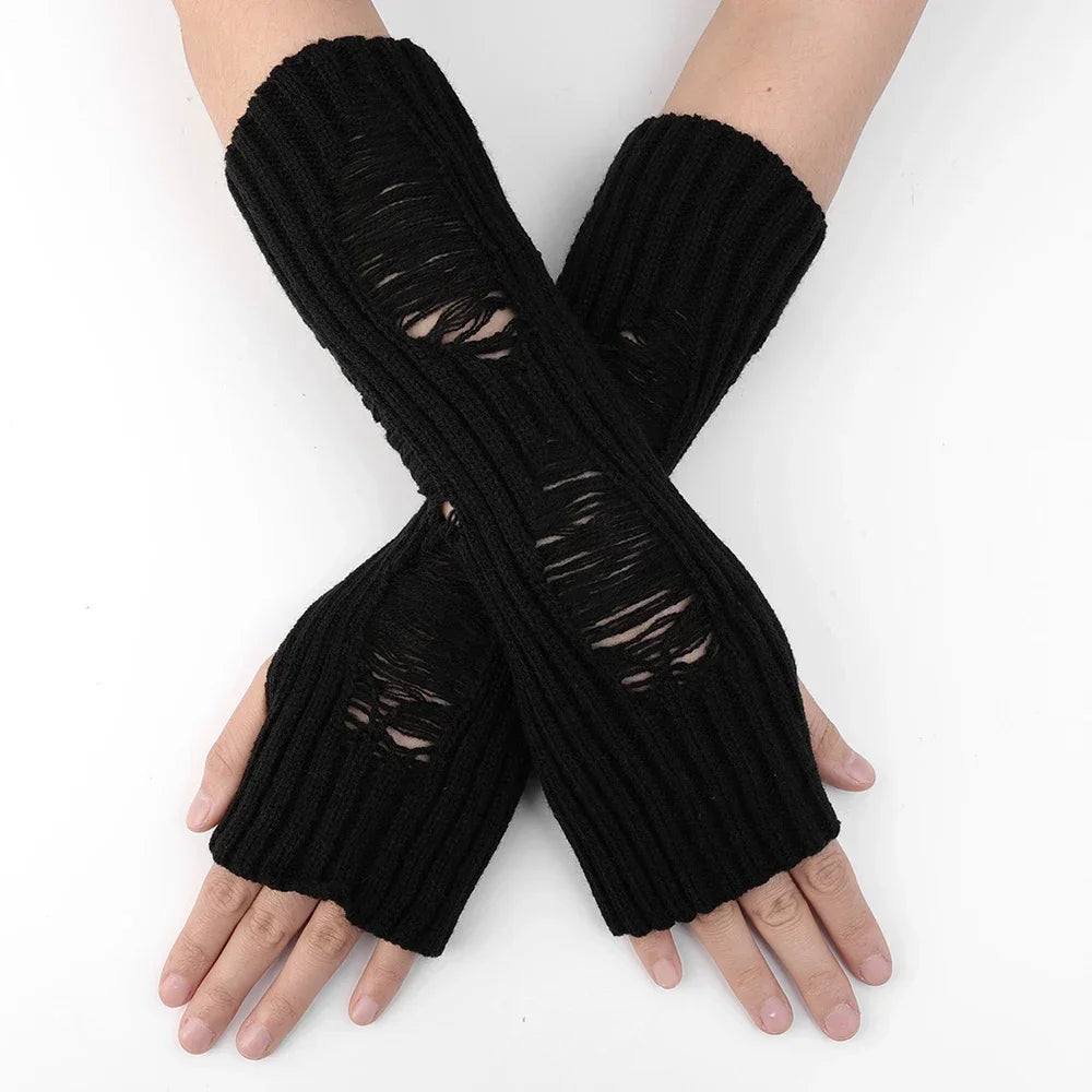 Unisex-Handschuhe, zerfetzt, Punk, Gothic, halbfingerlos, Manschette, Strickhandschuhe, Damen und Herren, weiche Fäustlinge, gebrochene Stretch-Armwärmer