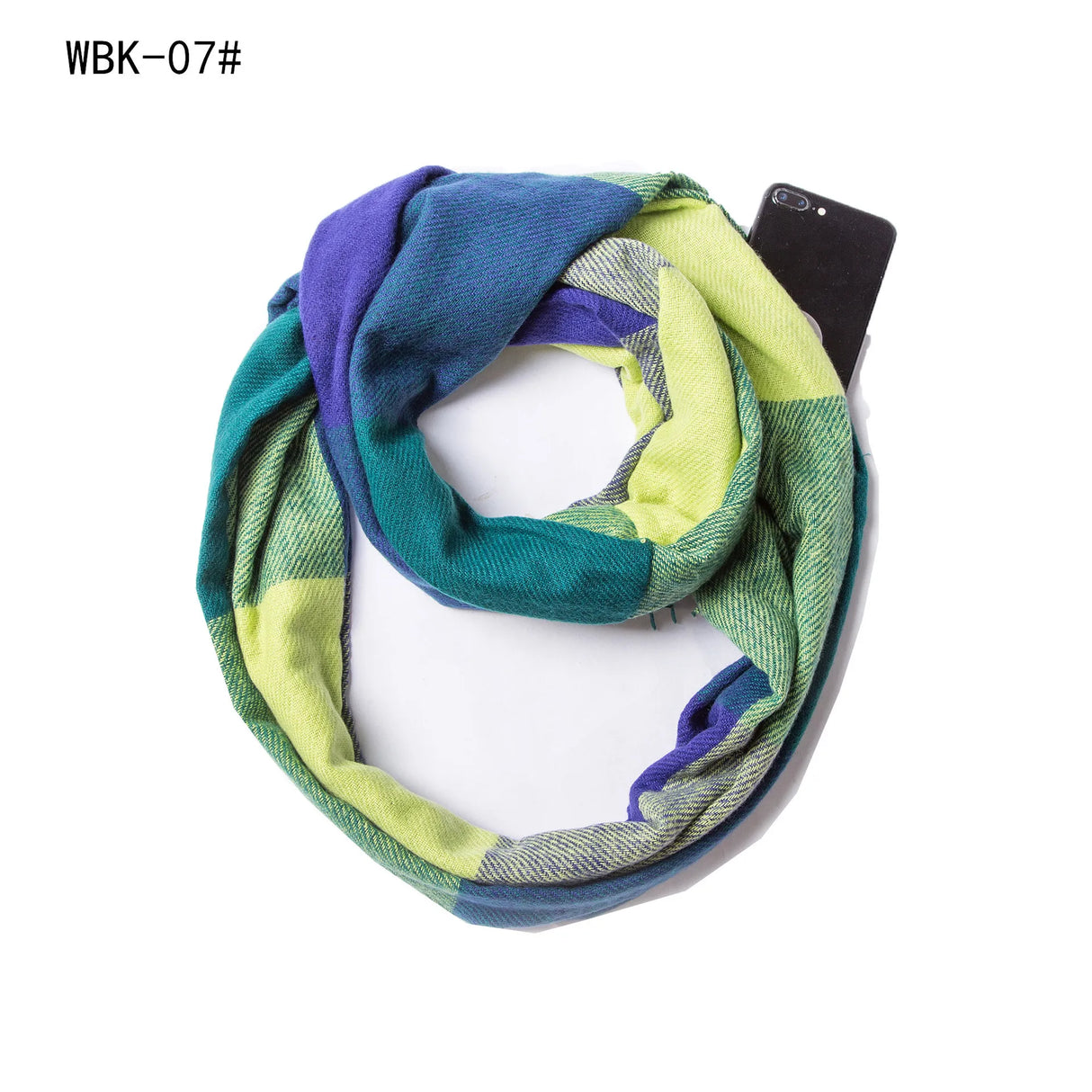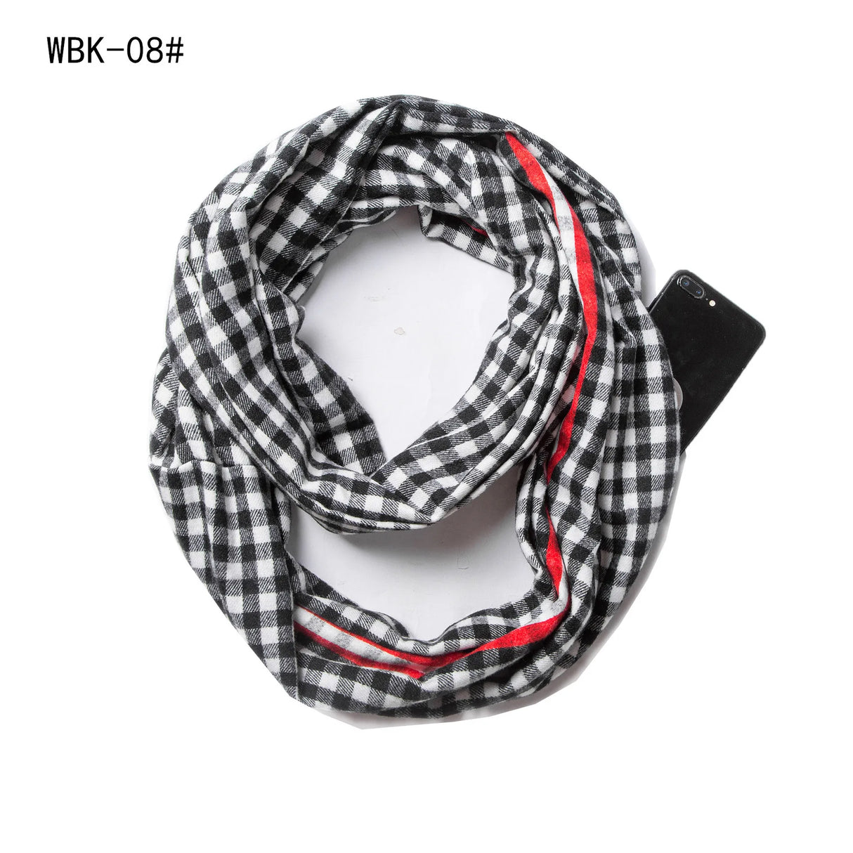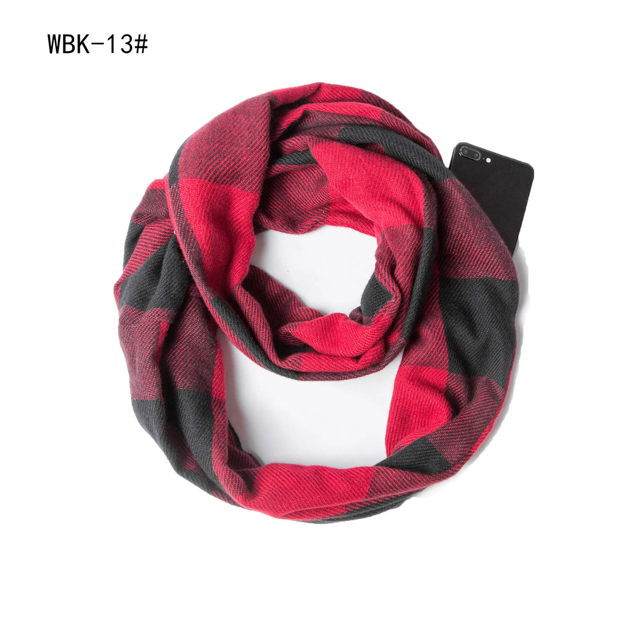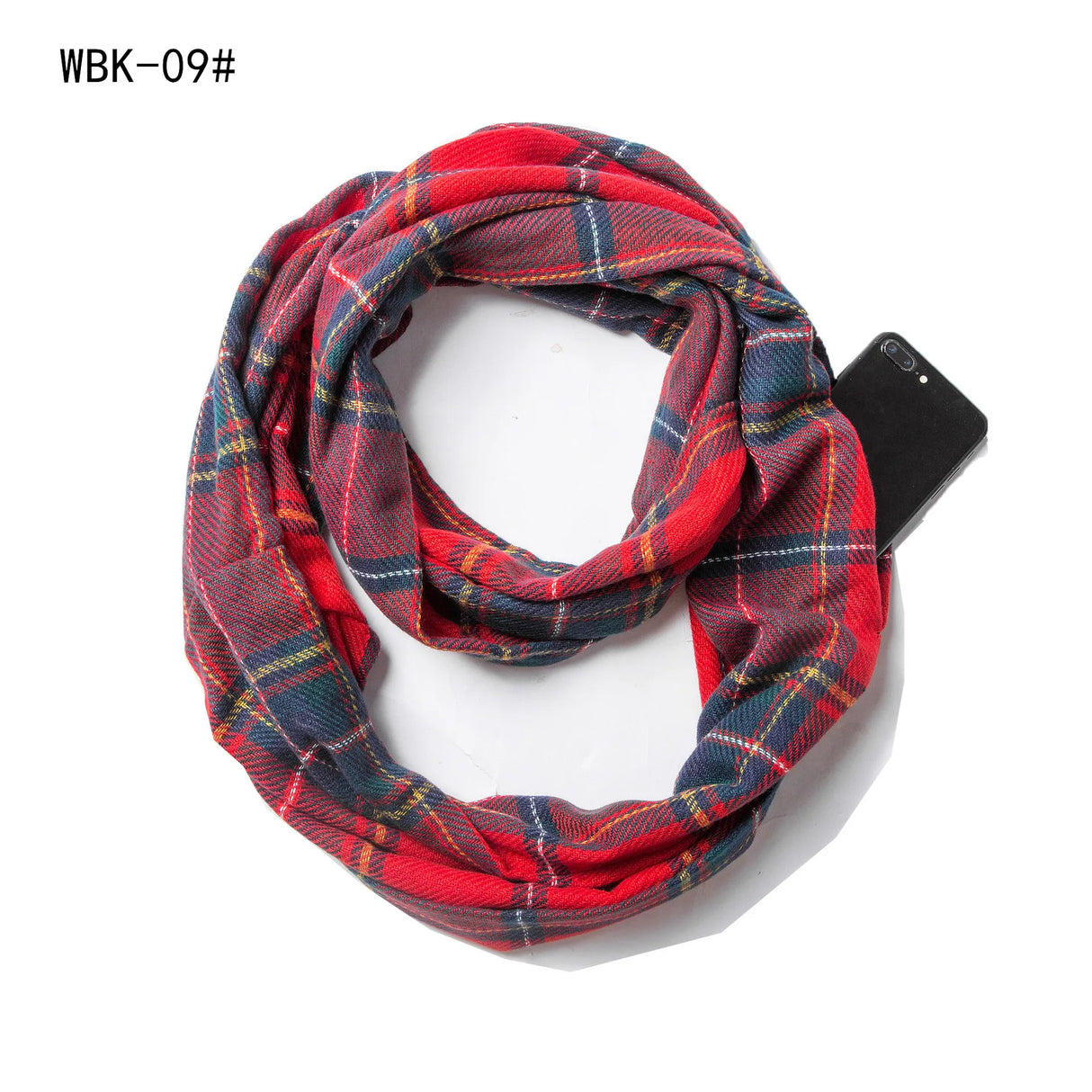 Damen Kaschmir-Schal mit Karomuster, warm, für den Winter, mit verstecktem Reißverschluss, Taschenschal, Damenhals, warm, Reise-Ringschal
