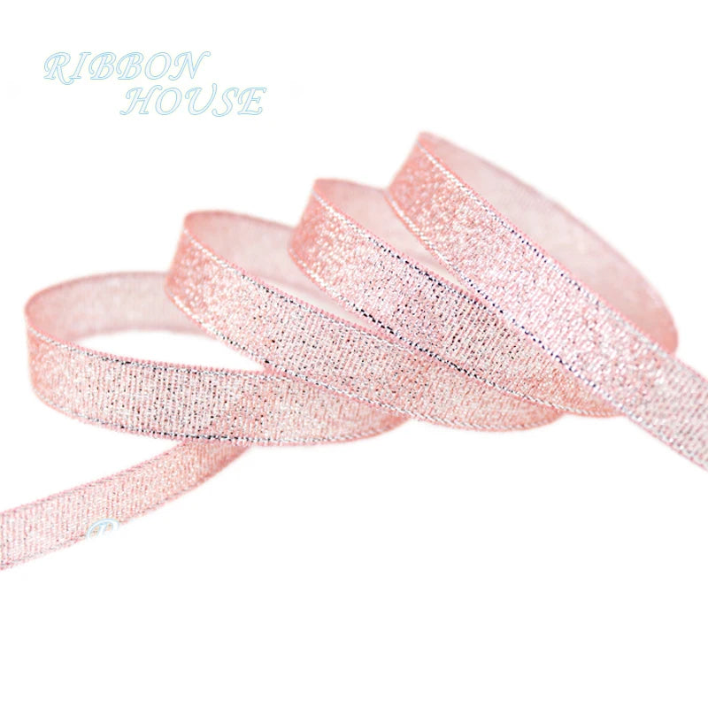 (25 yards/rolle) Flesh Rosa Metallic Glitter Band Bunte geschenk paket bänder großhandel 6/10/20/25/40mm