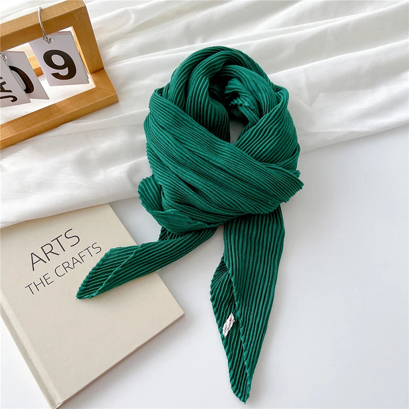Crinkle Pleated Square Scarf Solid Color Scarf Shawl Women Muslim Hijab Cotton Viscose Lace Headscarf Thin Big Headscarf 90*90cm
