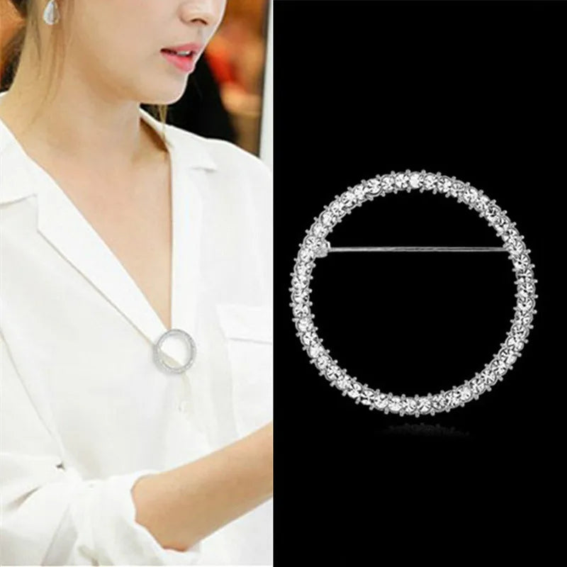 Mode Hohl Kreis Strass Brosche Schal Clip Schals Broche Kreis Kristall Broschen Für Frauen Geschenk Zubehör Großhandel