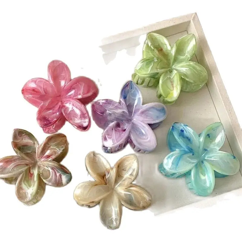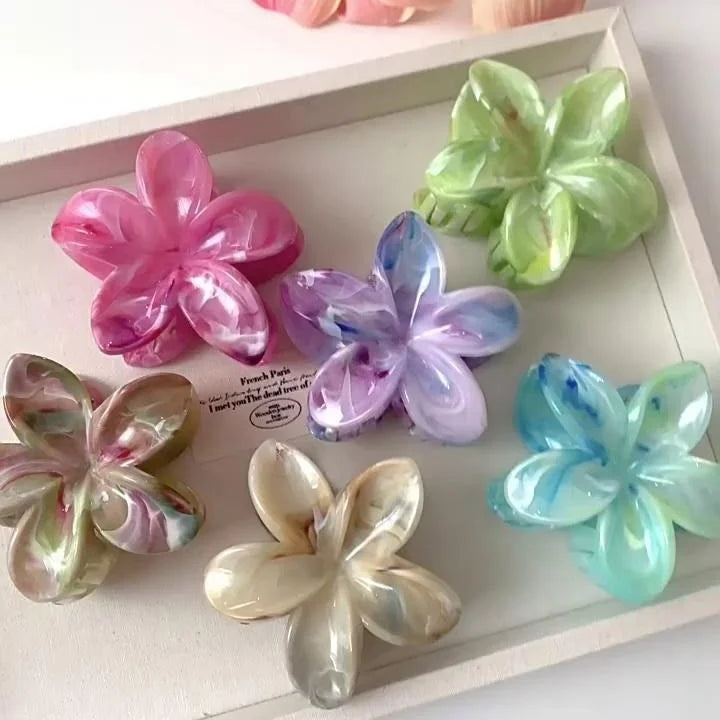 Summer Ice Transparency Pink Green Egg Flower Scratch Clip Shark Clip Sweet Fresh Marbled Plate Hair Clip Hair Scratch