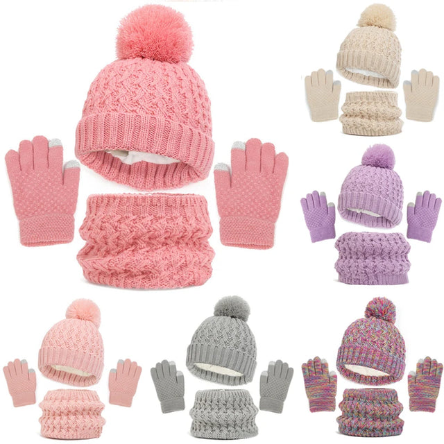 Kinder Wintermütze Schal und Handschuhe Luxus Set Gestrickte Wolle Kinder Warmer Anzug Beanie Caps Für Jungen Mädchen Mütze Halstuch Babymütze